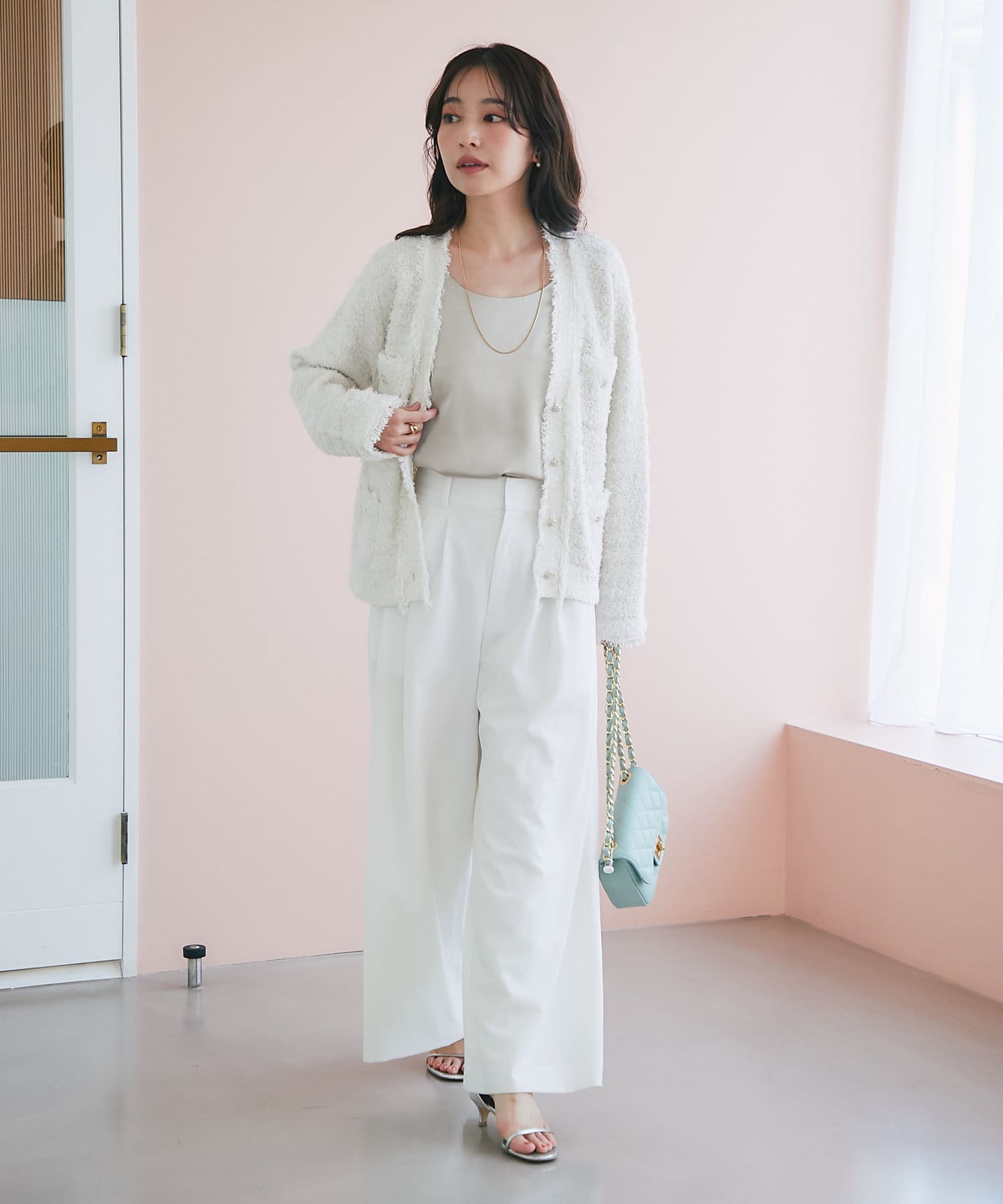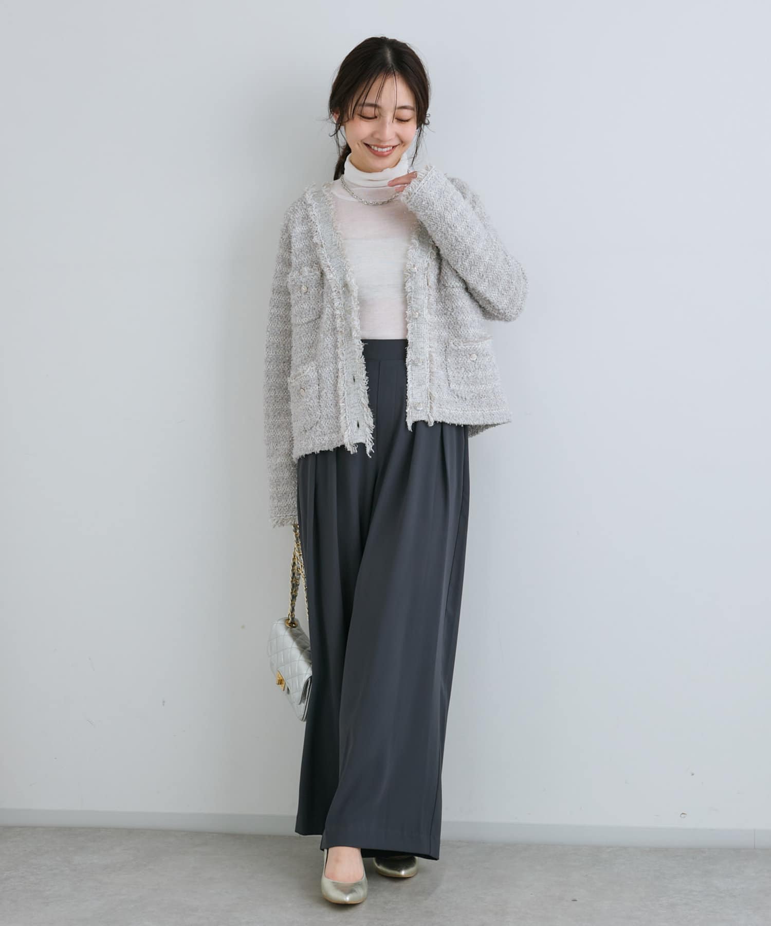 スカート合わせにキレイめもいいですし、ワイドパンツ合わせで少しカジュアルにくずした着方もお勧めです。