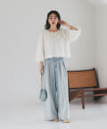 デニムやバギーパンツなどカジュアルなアイテムとも好相性です。