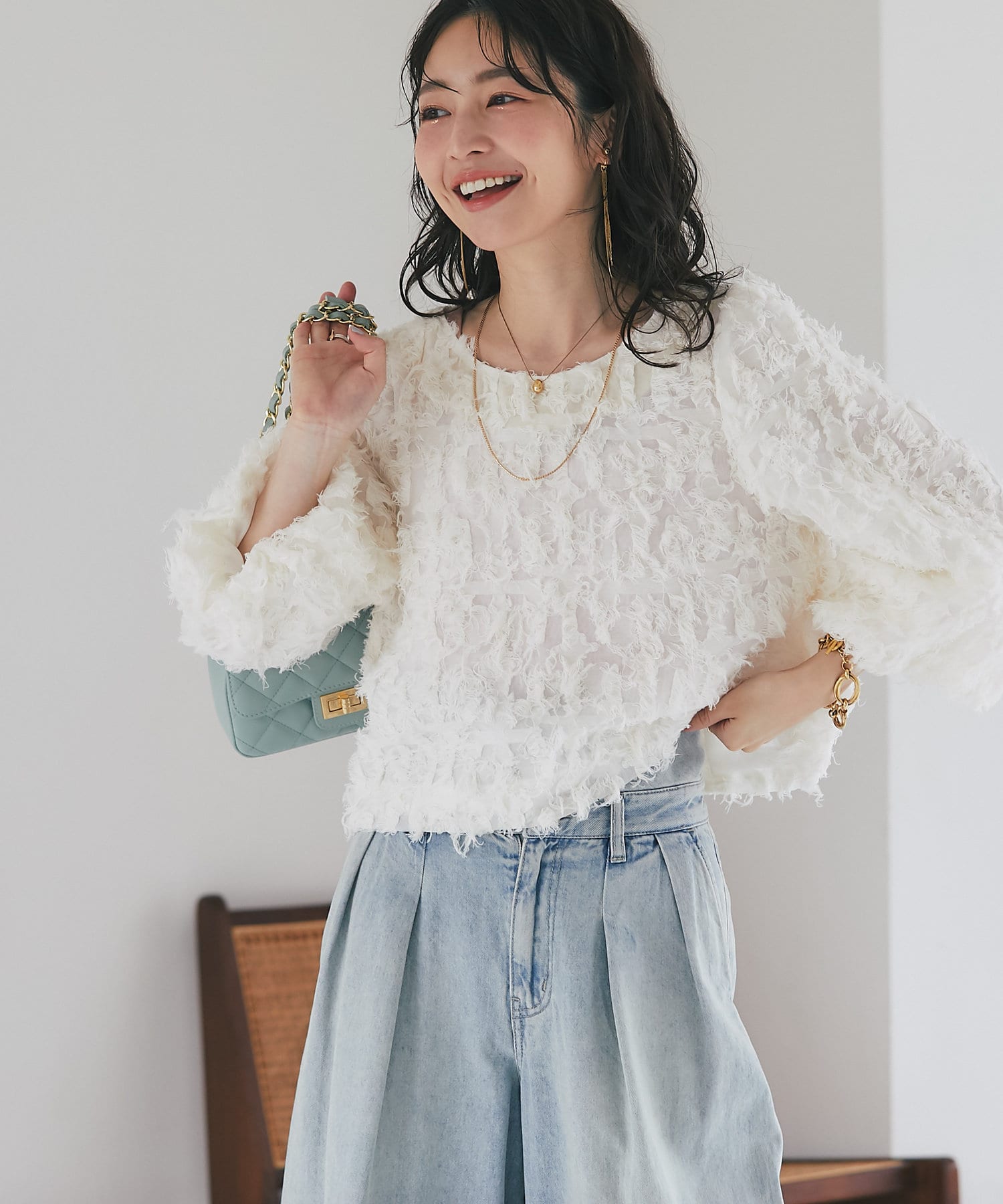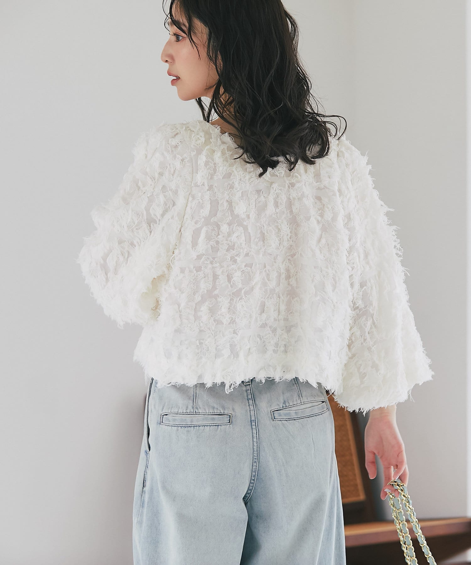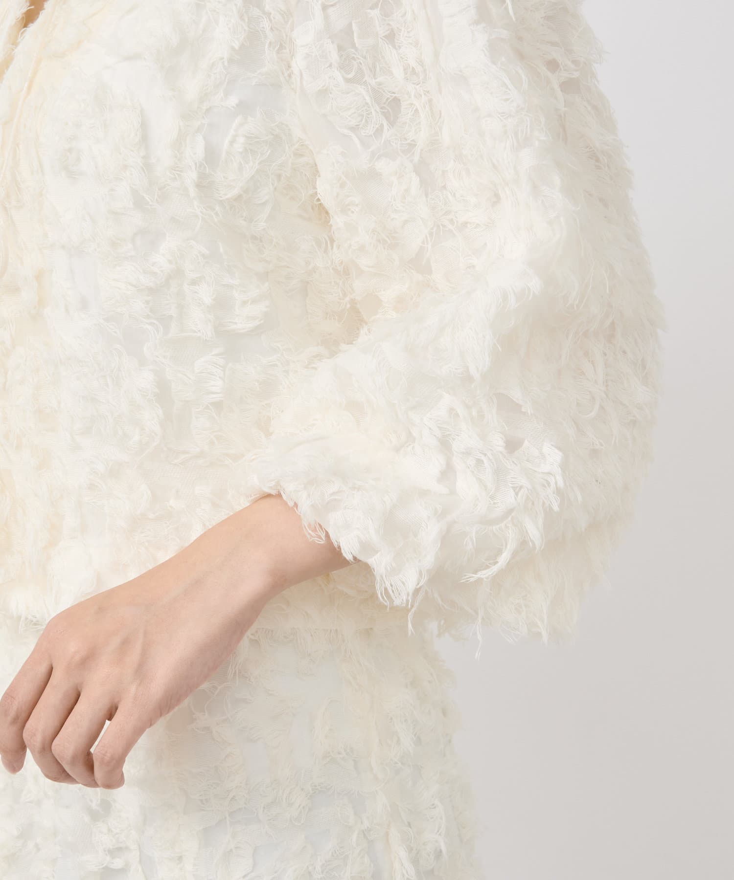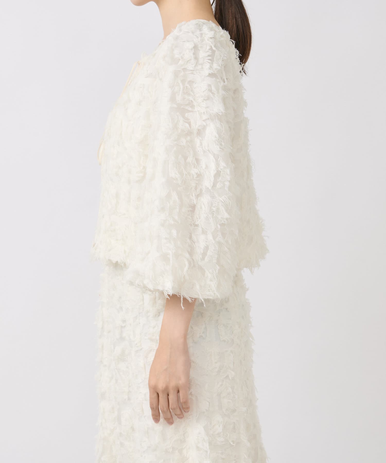 華やかなロングフェザーのジャガードを使用したブラウス。