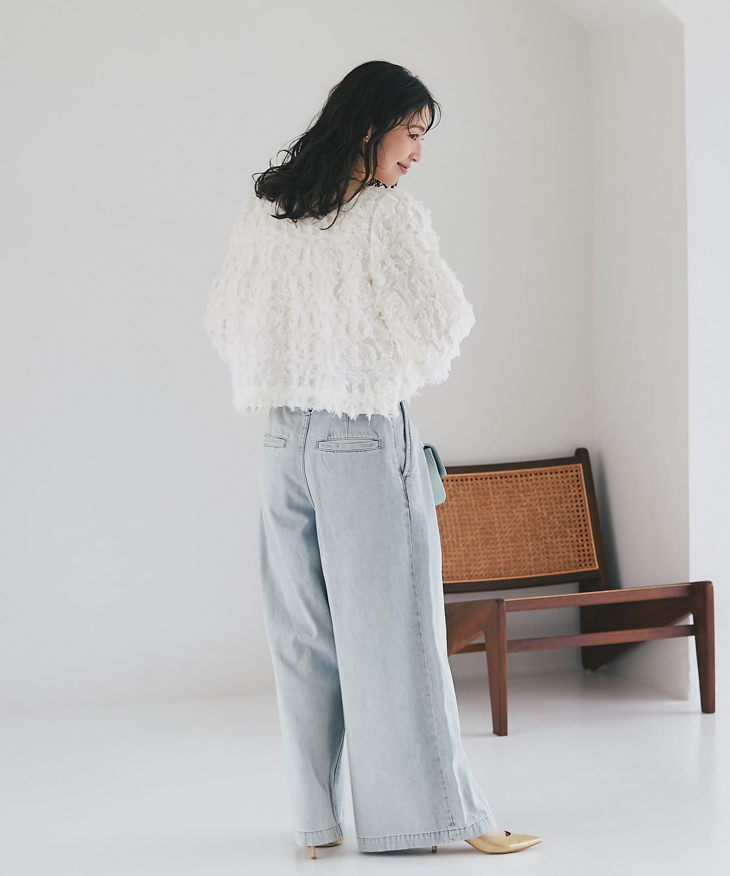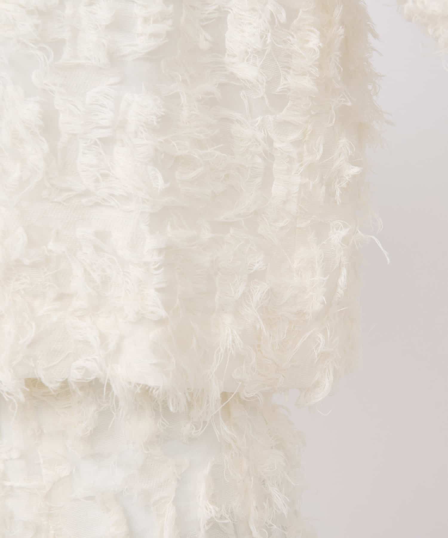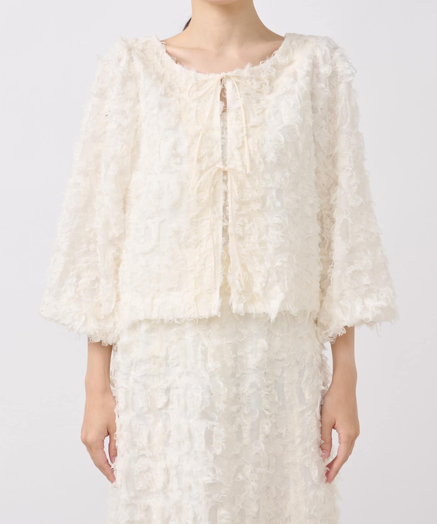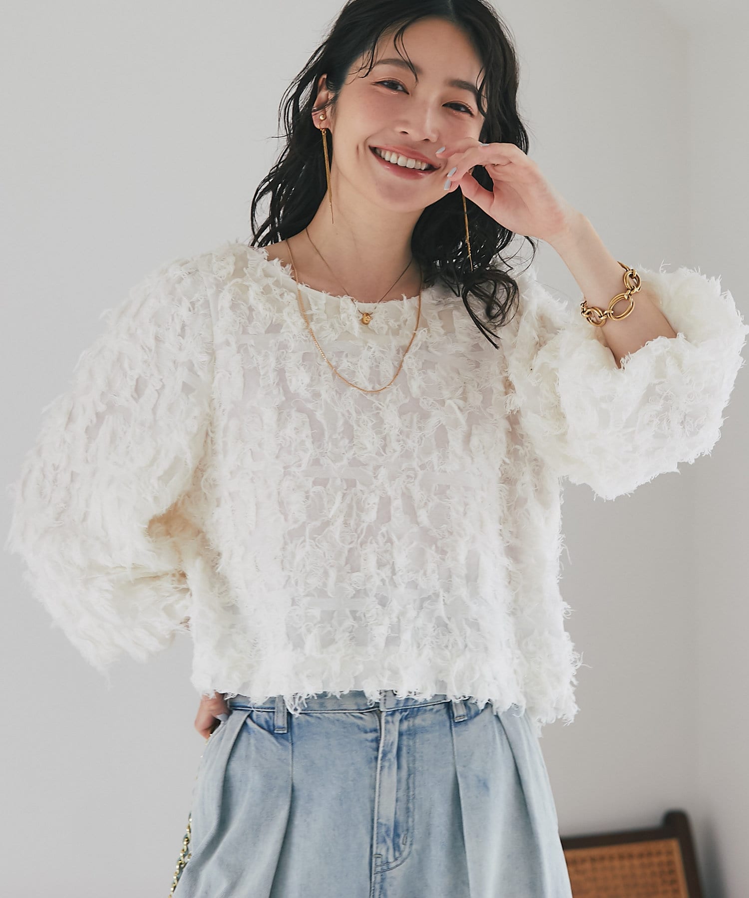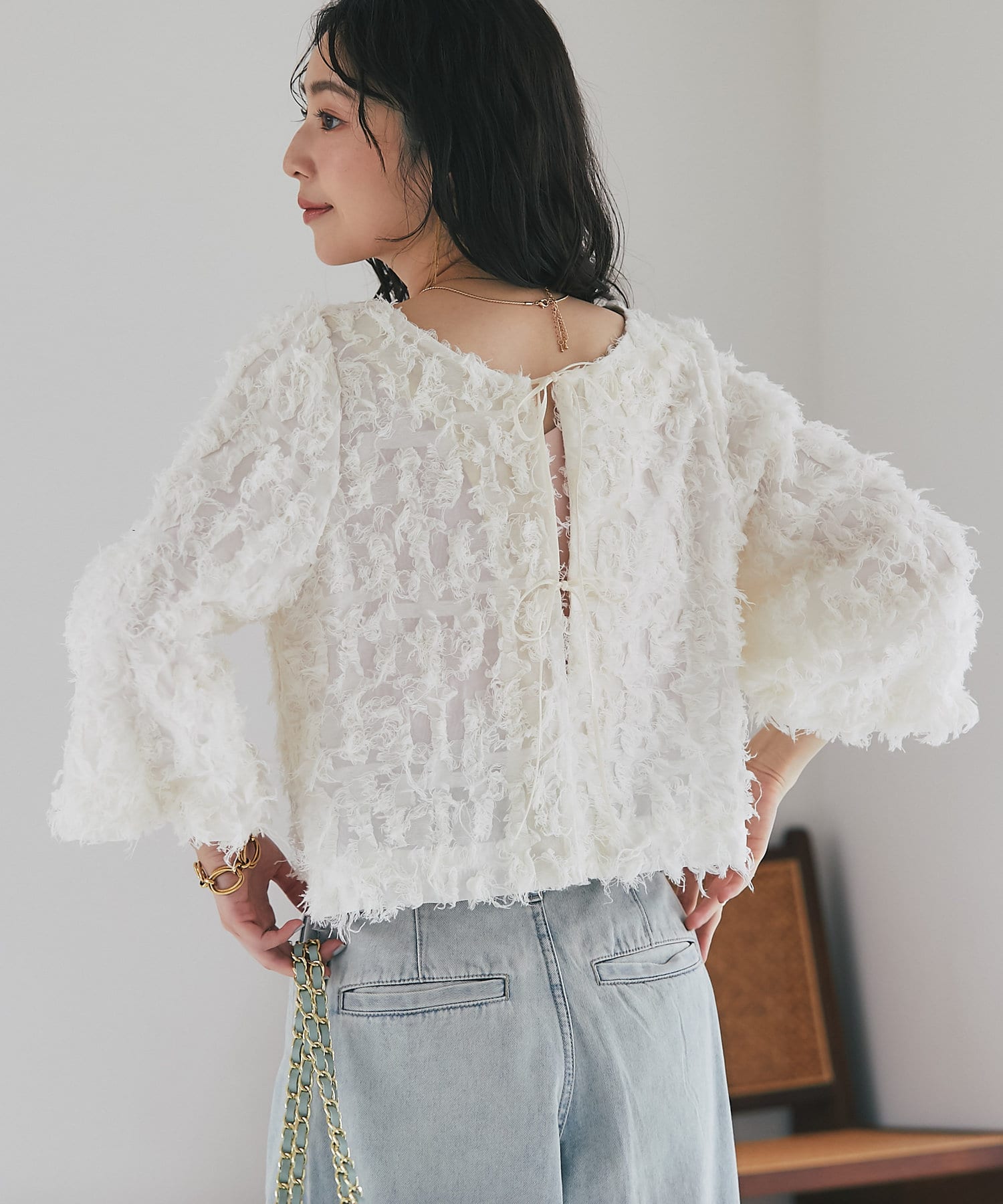 華やかなロングフェザーのジャガードを使用したブラウス。