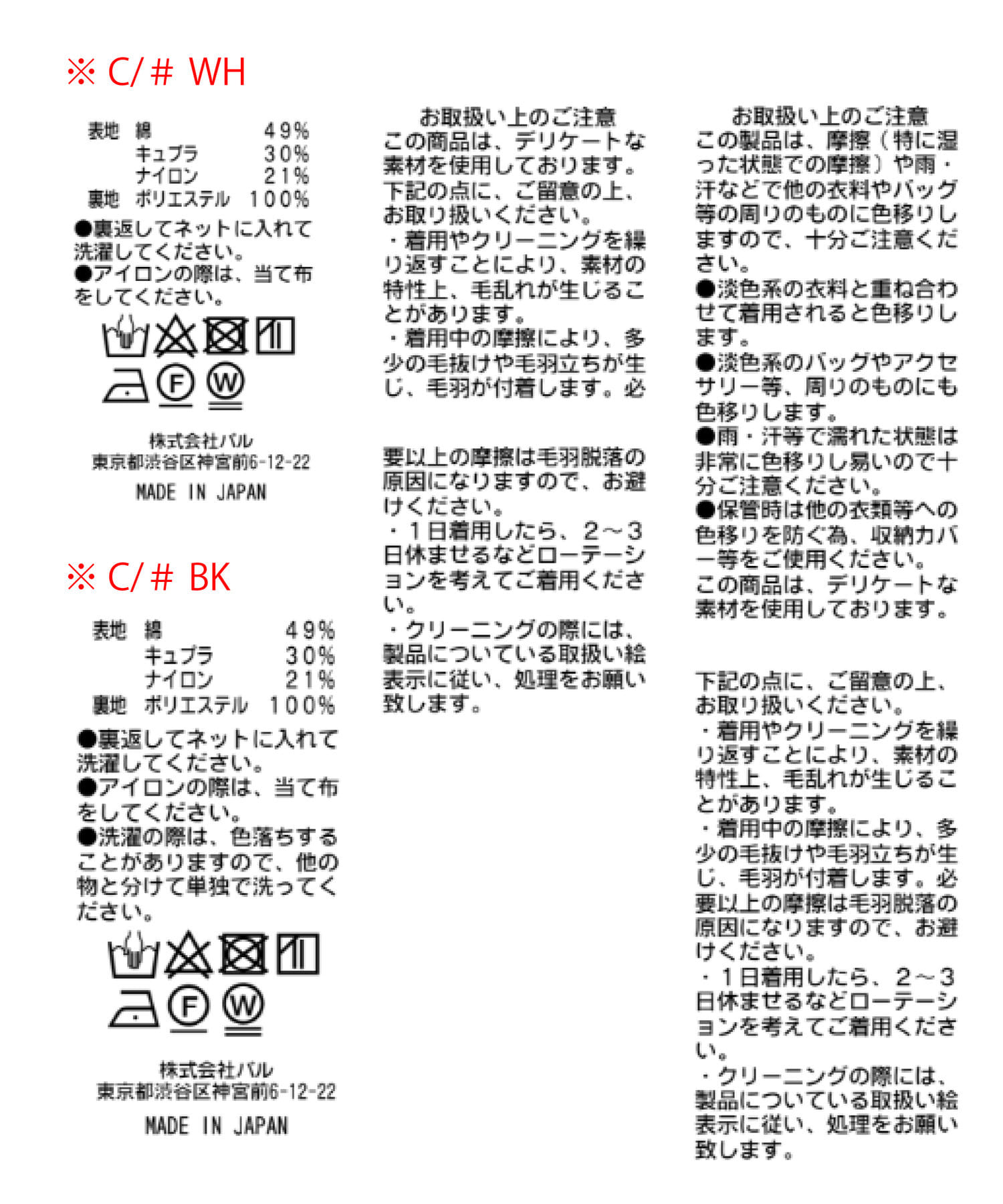 品番 LBZ1042204A0001 素材 表地:綿49% キュプラ30% ナイロン21%