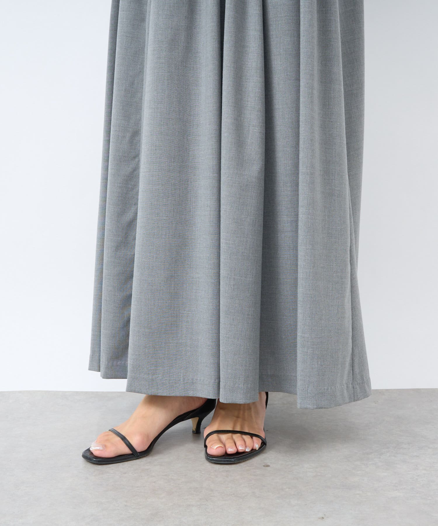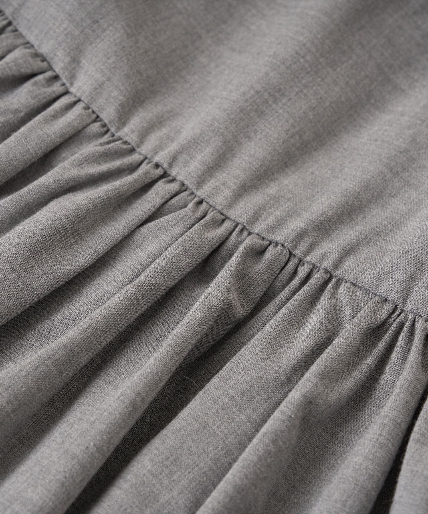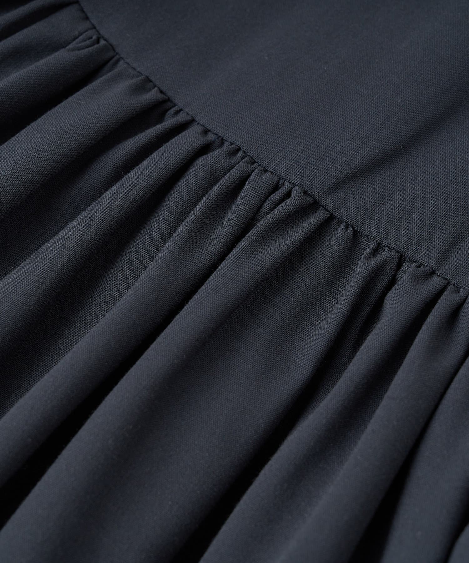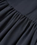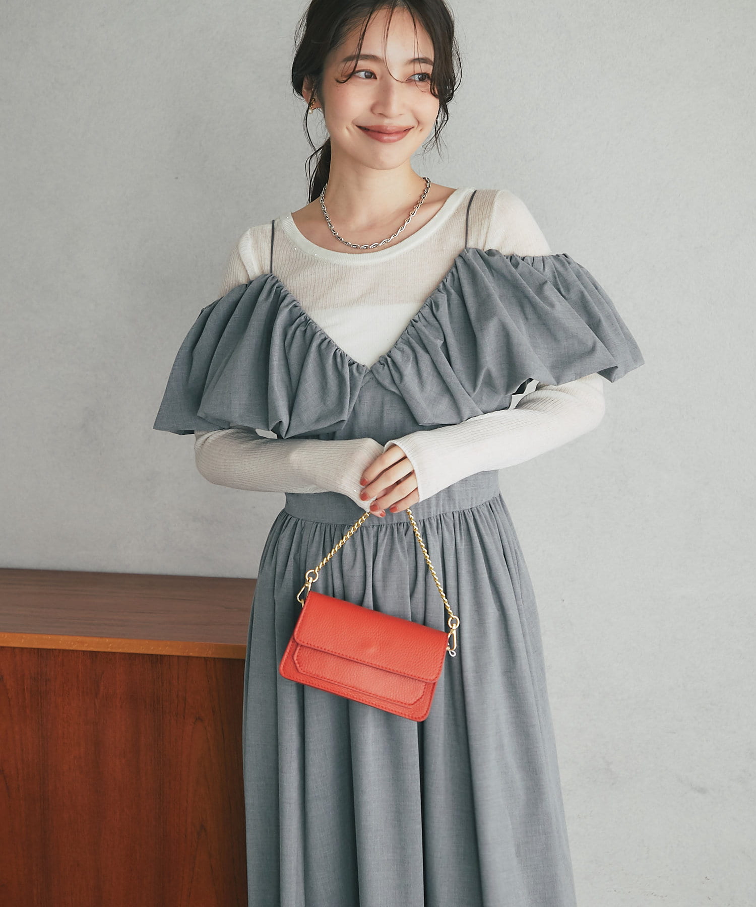 ふんわりとしたバルーンのフリルと贅沢に広がるフレアスカートのシルエットがフェミニンな雰囲気を演出します。