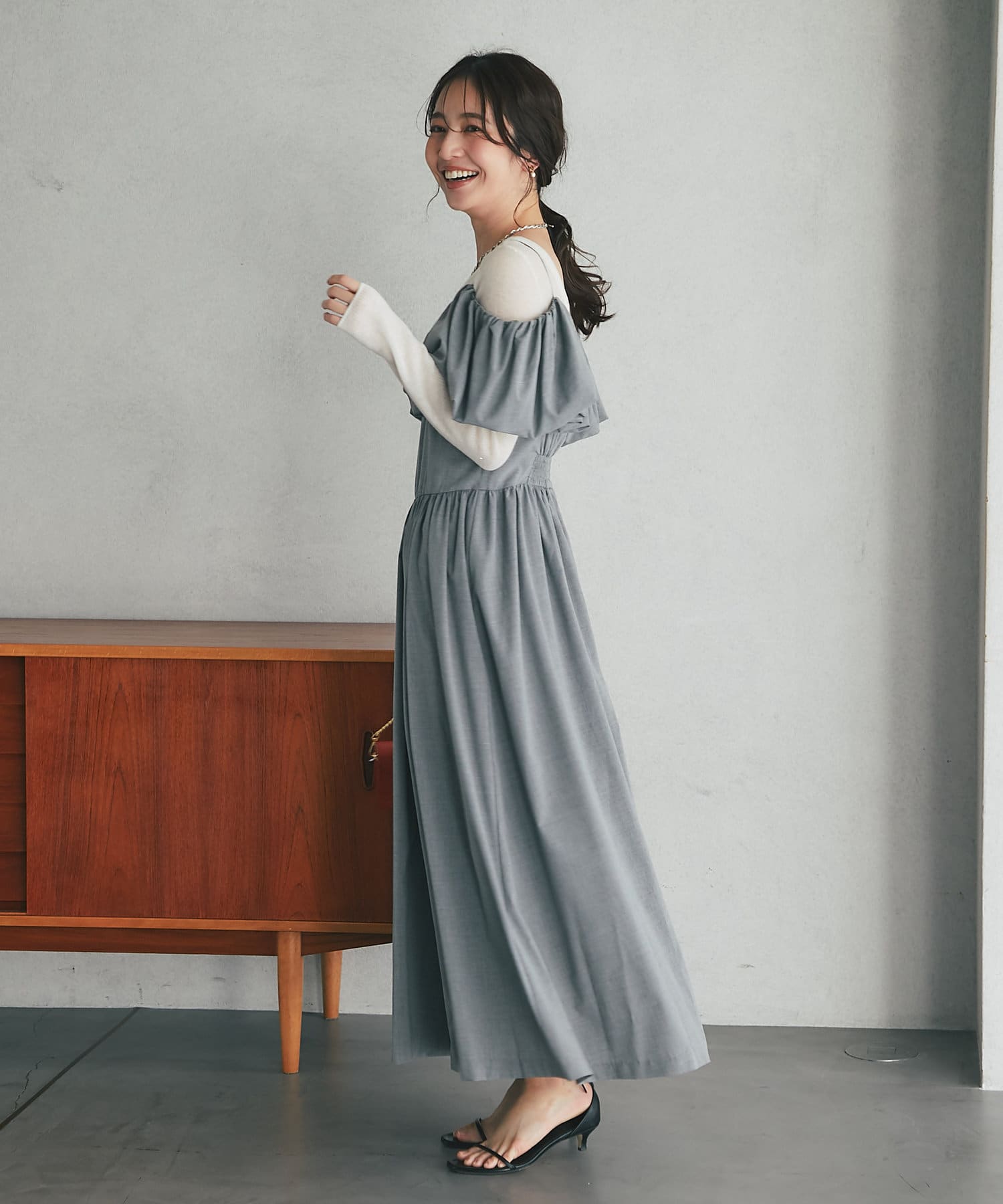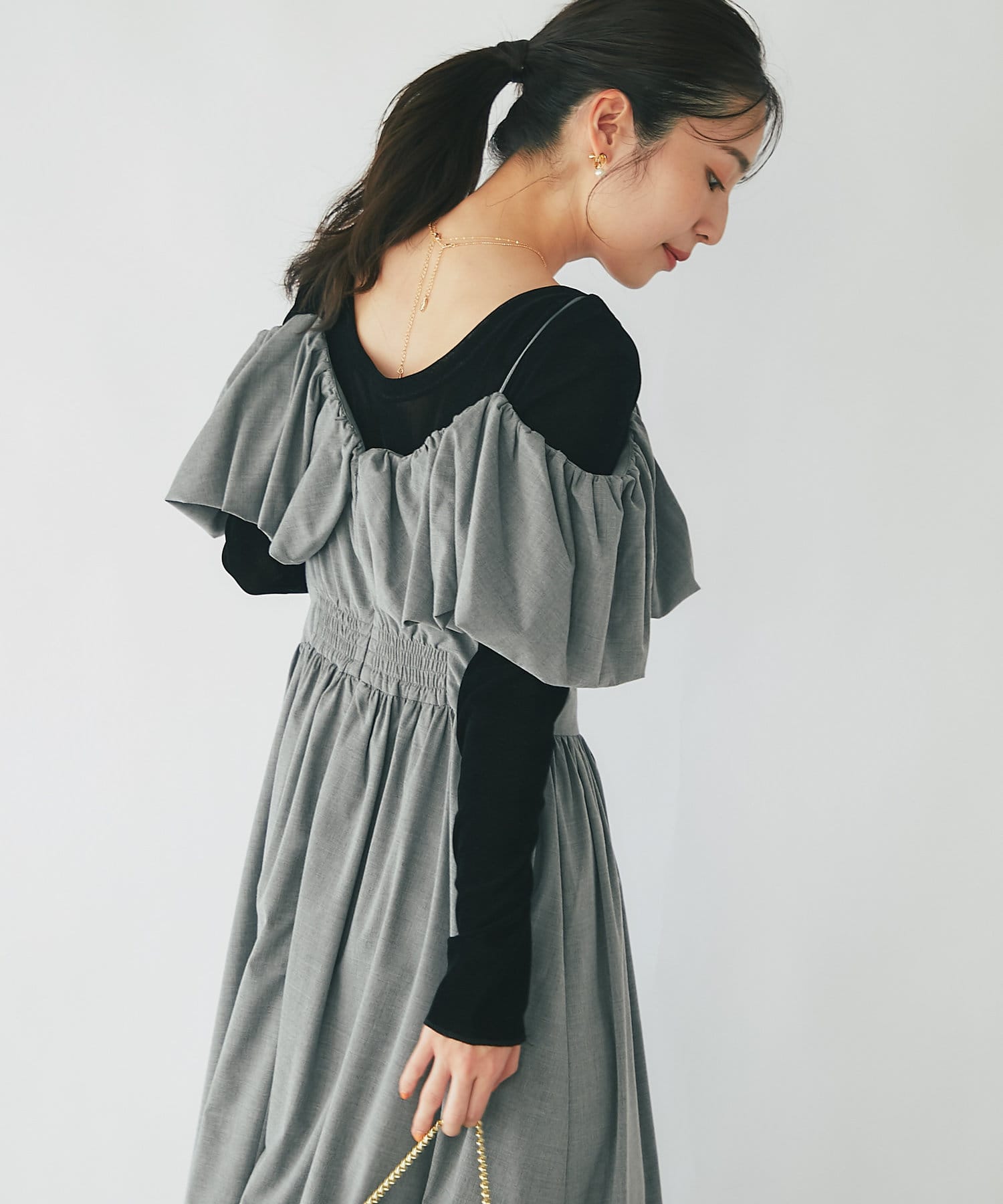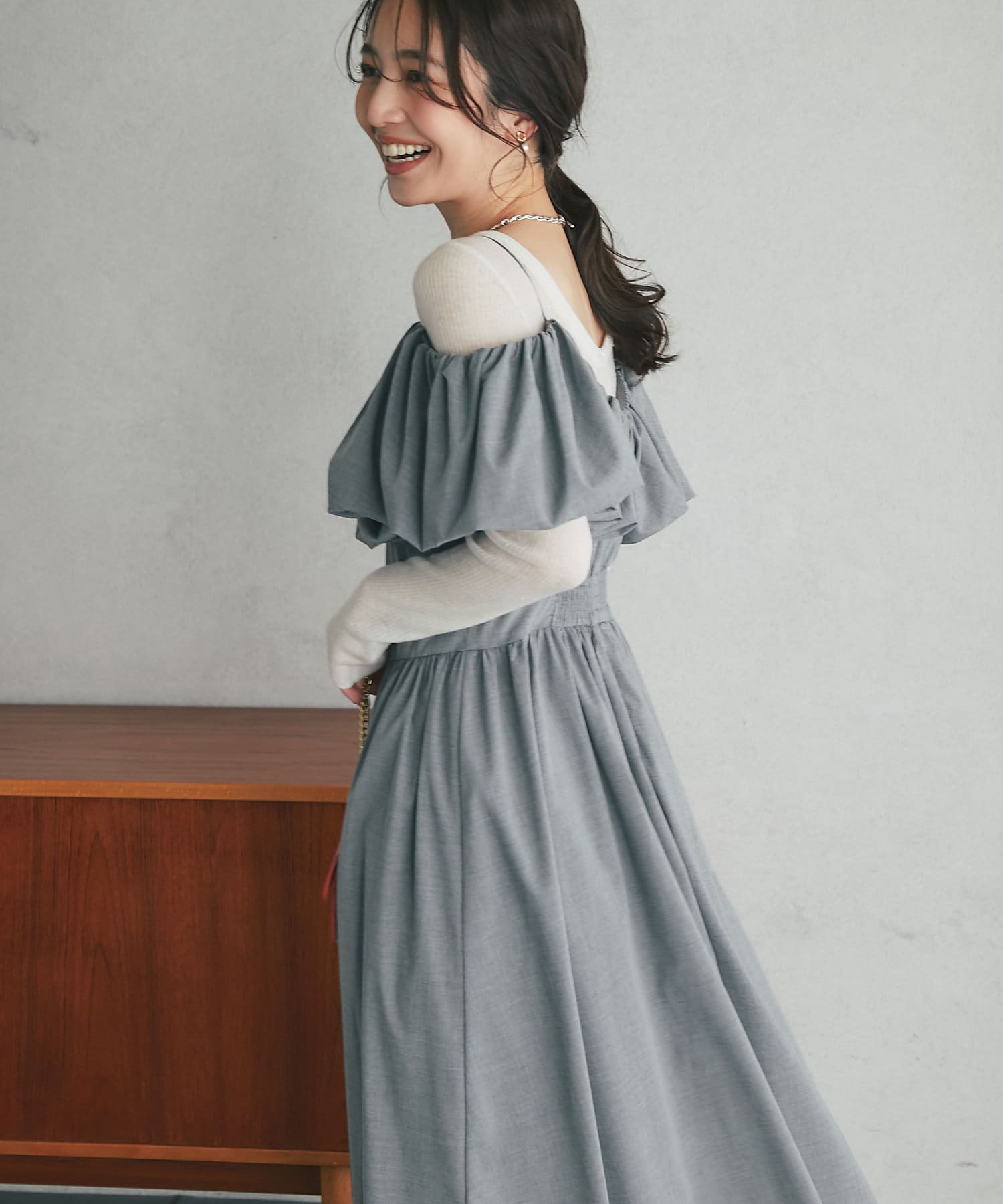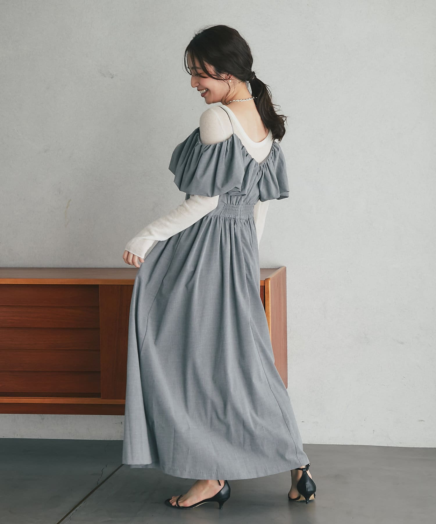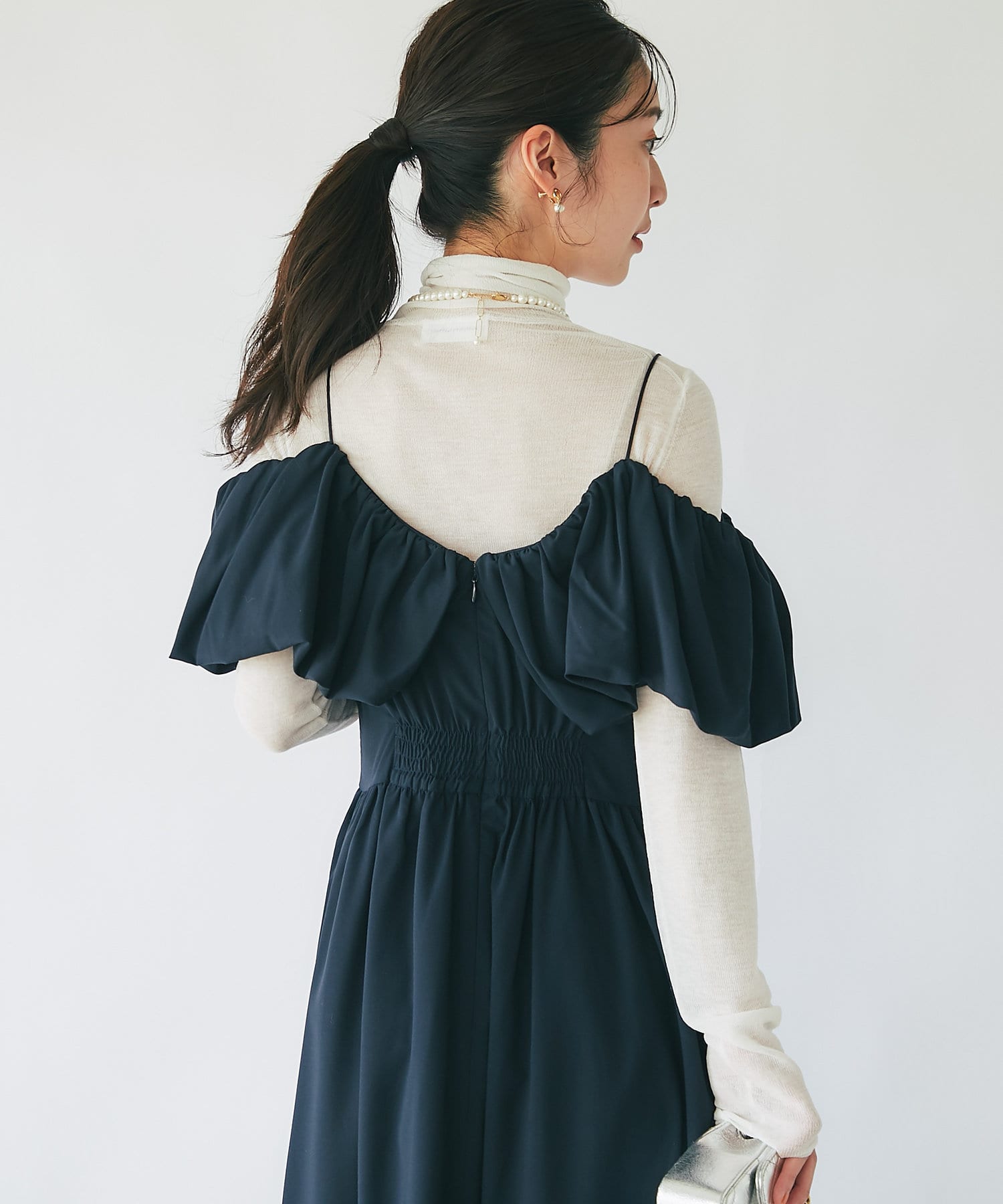 こだわりデザインのオープンショルダーワンピース