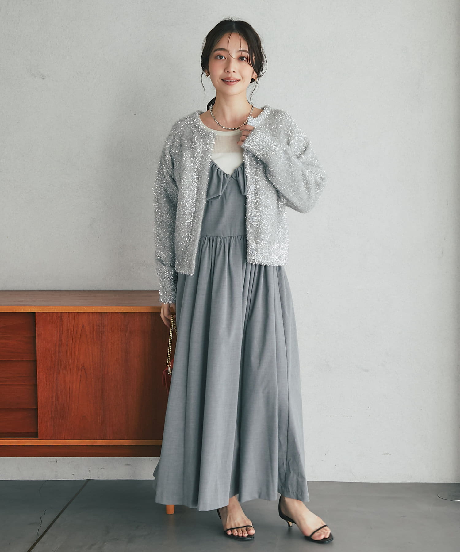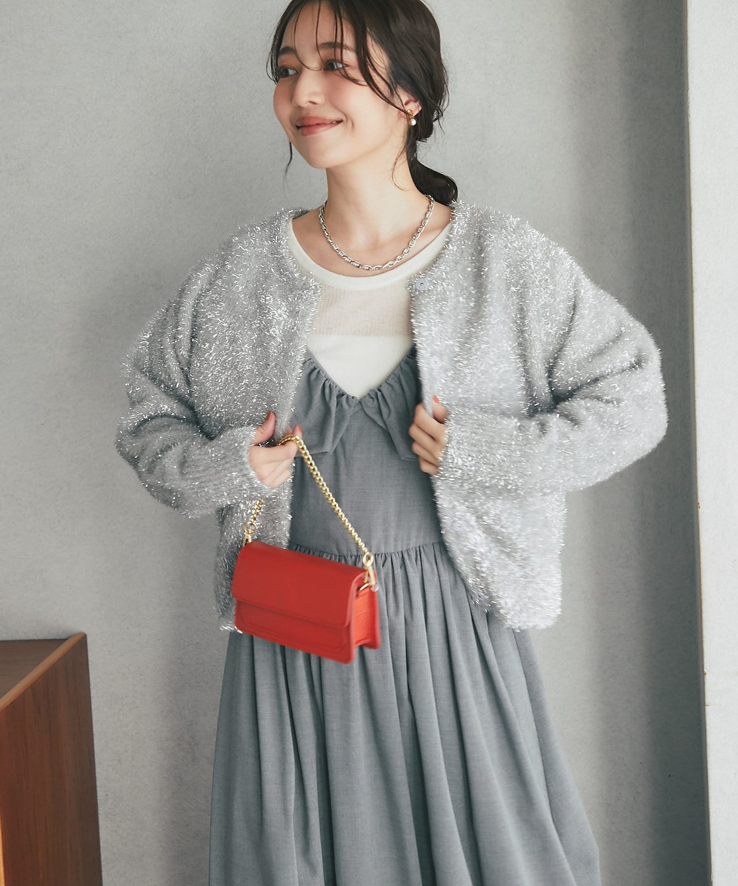 リブニットなどすっきりめなニットとも相性抜群。
