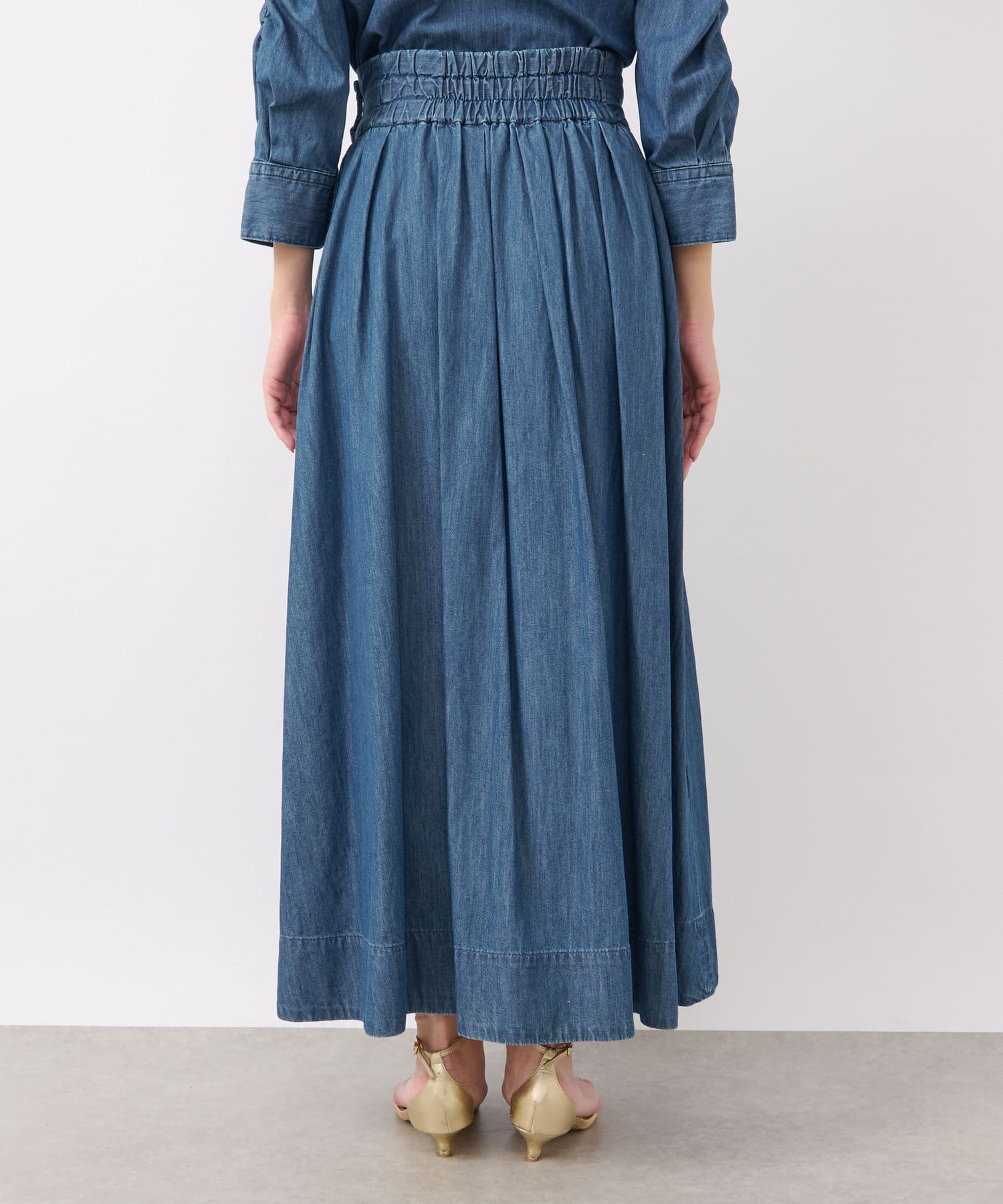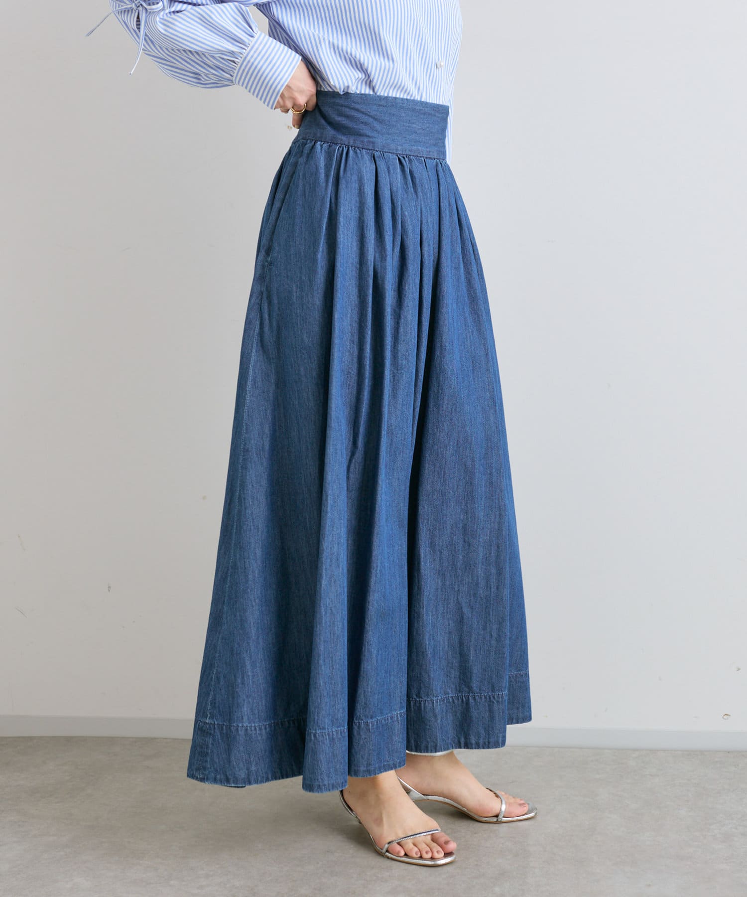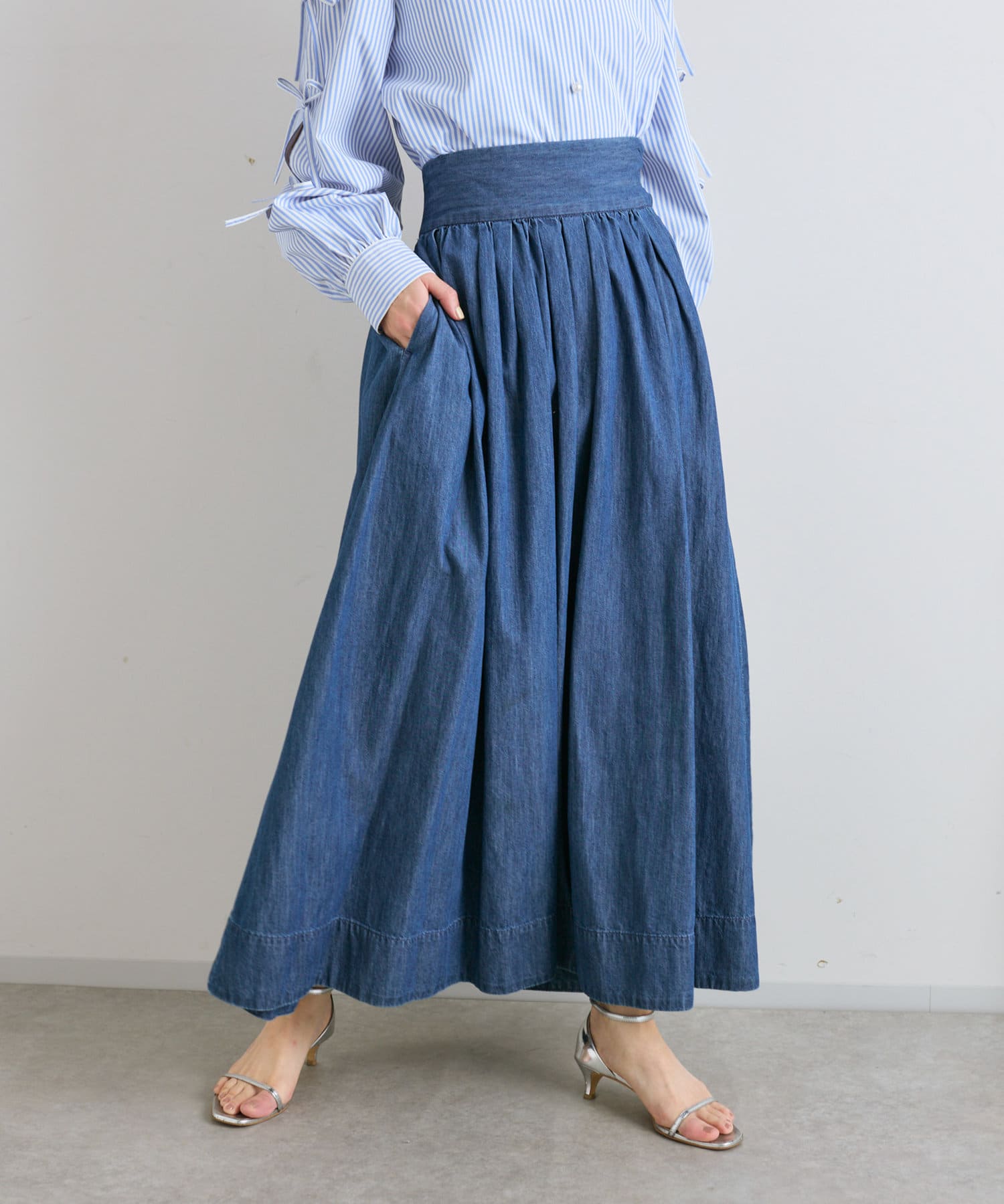 シンプルなトップスがスカートのデザインを引き立ててくれます。