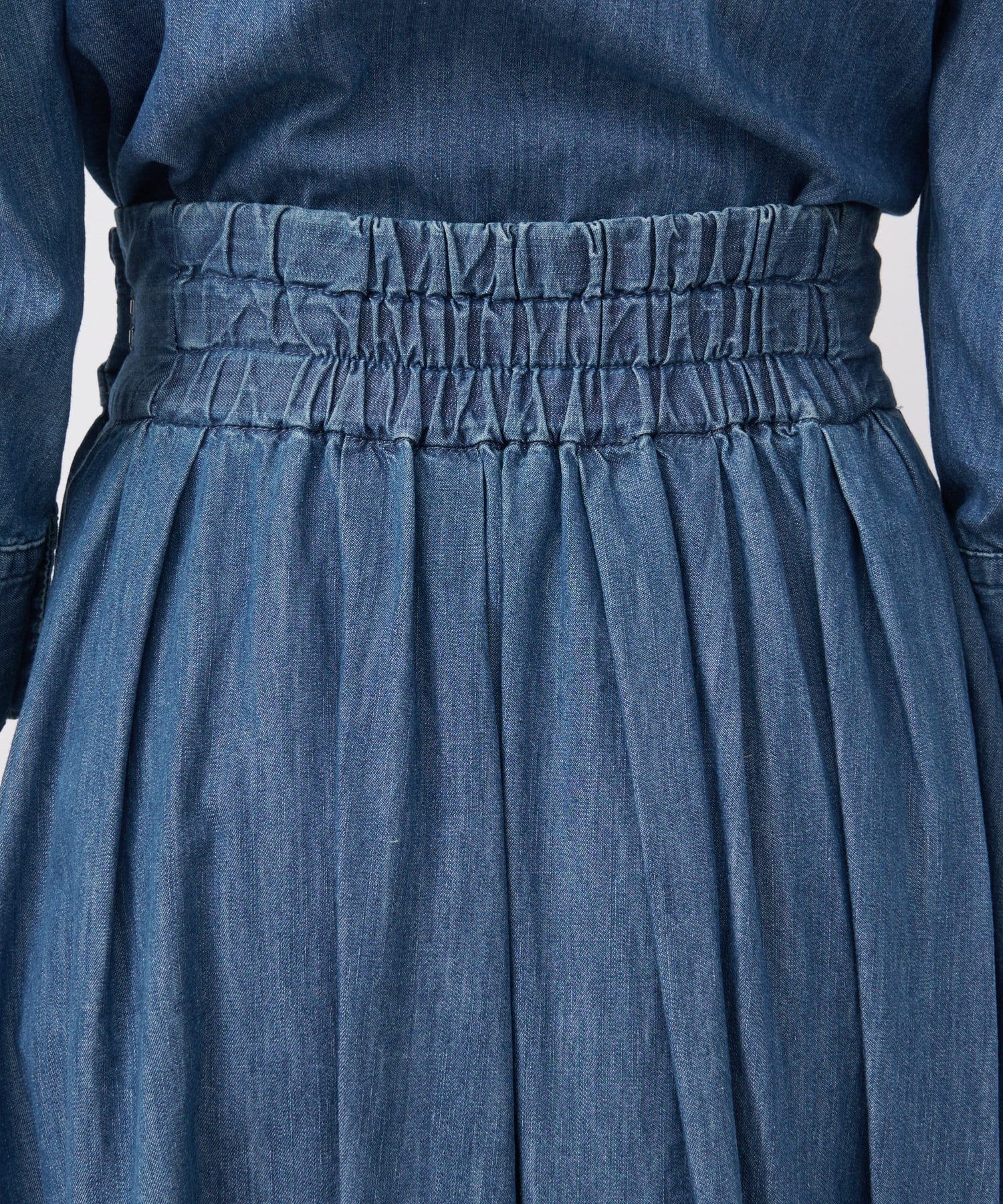 たっぷりと生地を使っているので揺れたときにさらに動きが出るドラマチックなシルエットが魅力。