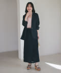 生地の存在感を生かして、シンプルなナローシルエットに仕上げました。