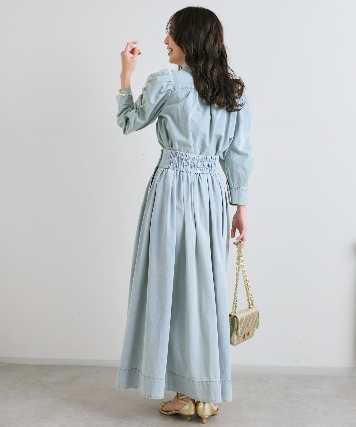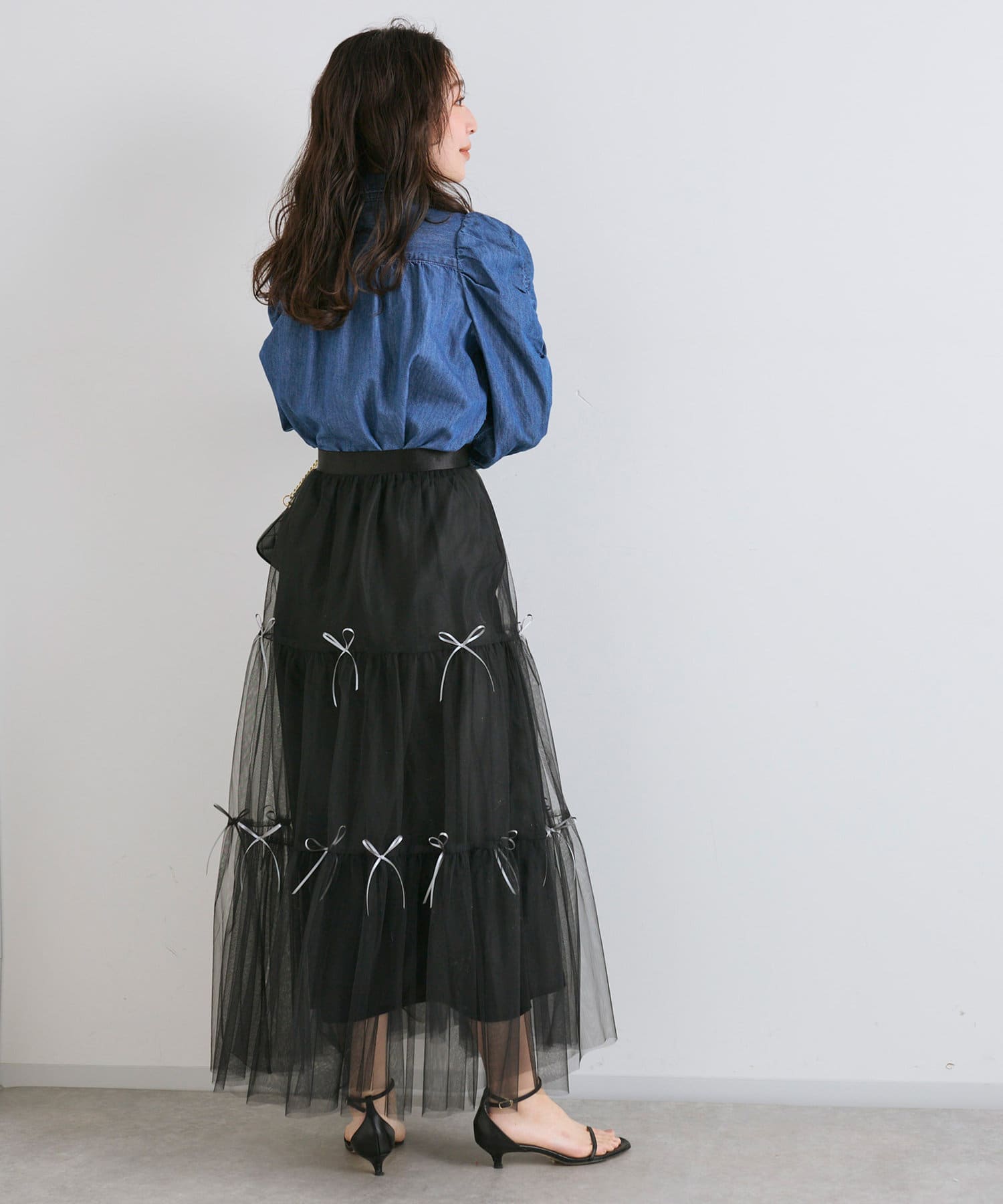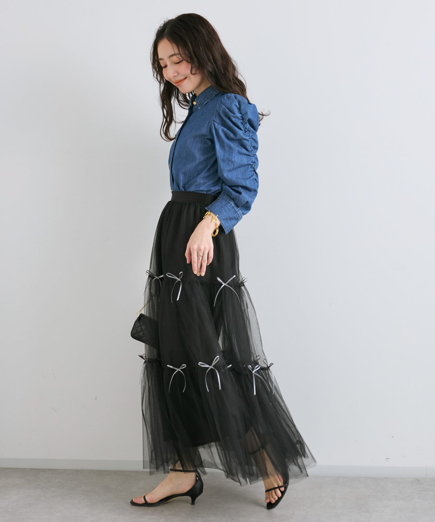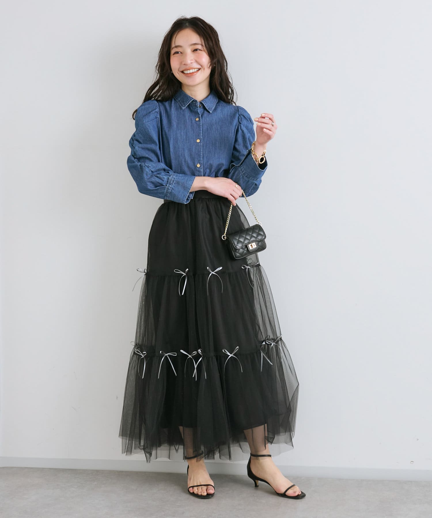 ボリューム感のあるスカートと合わせるとフェミニンな印象でも着て頂けます。