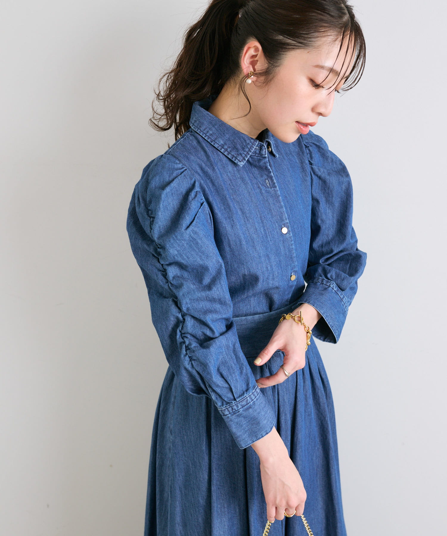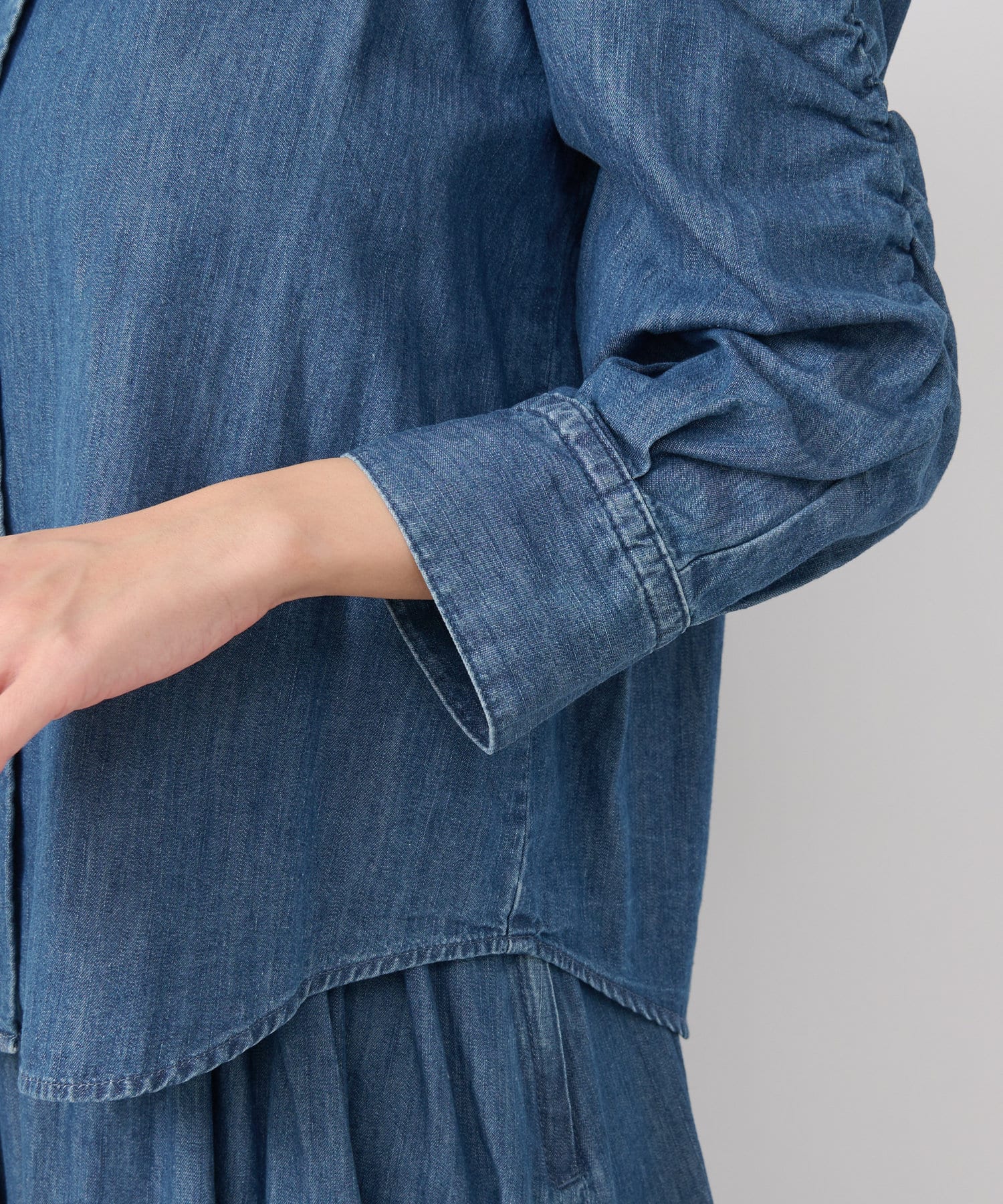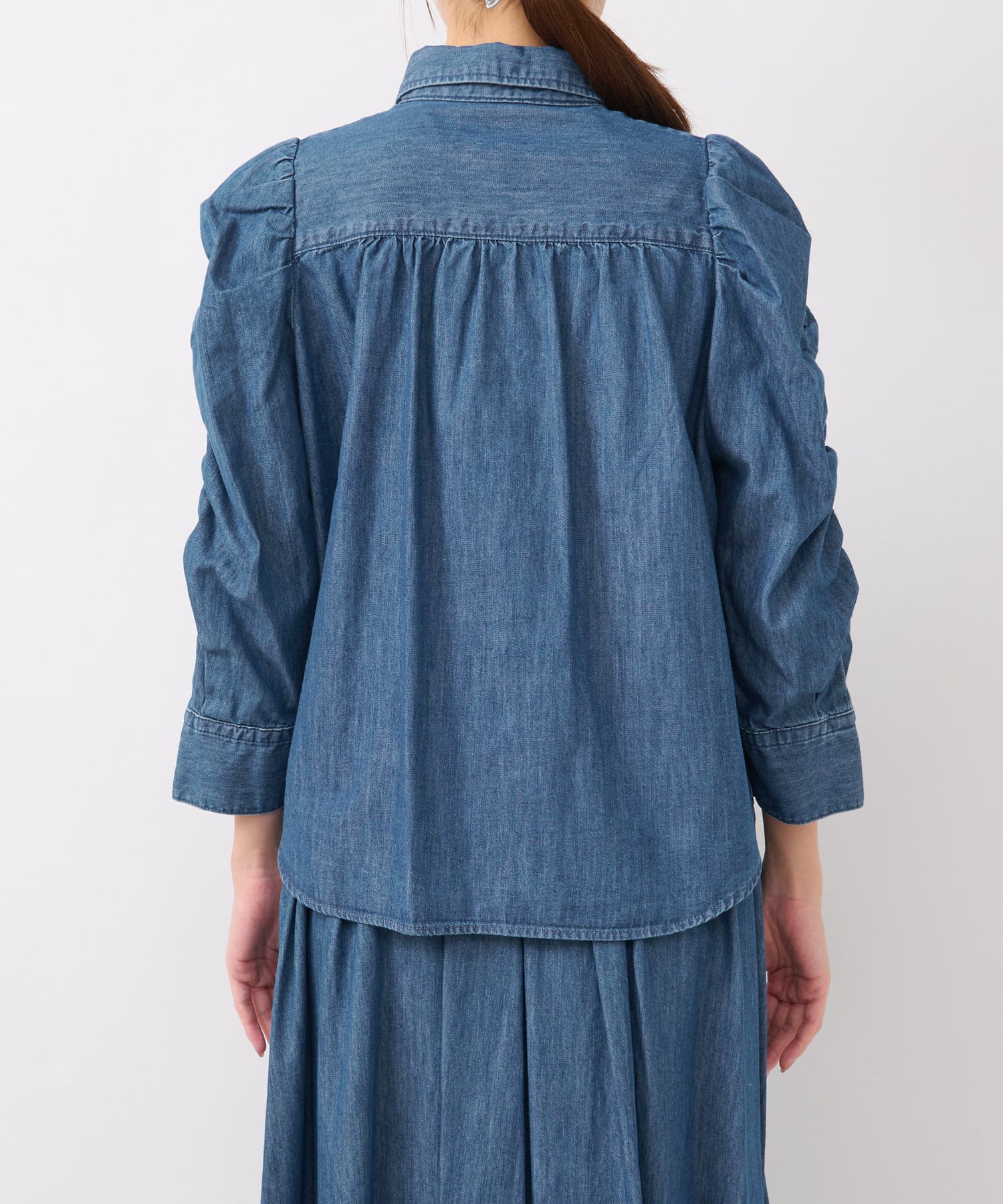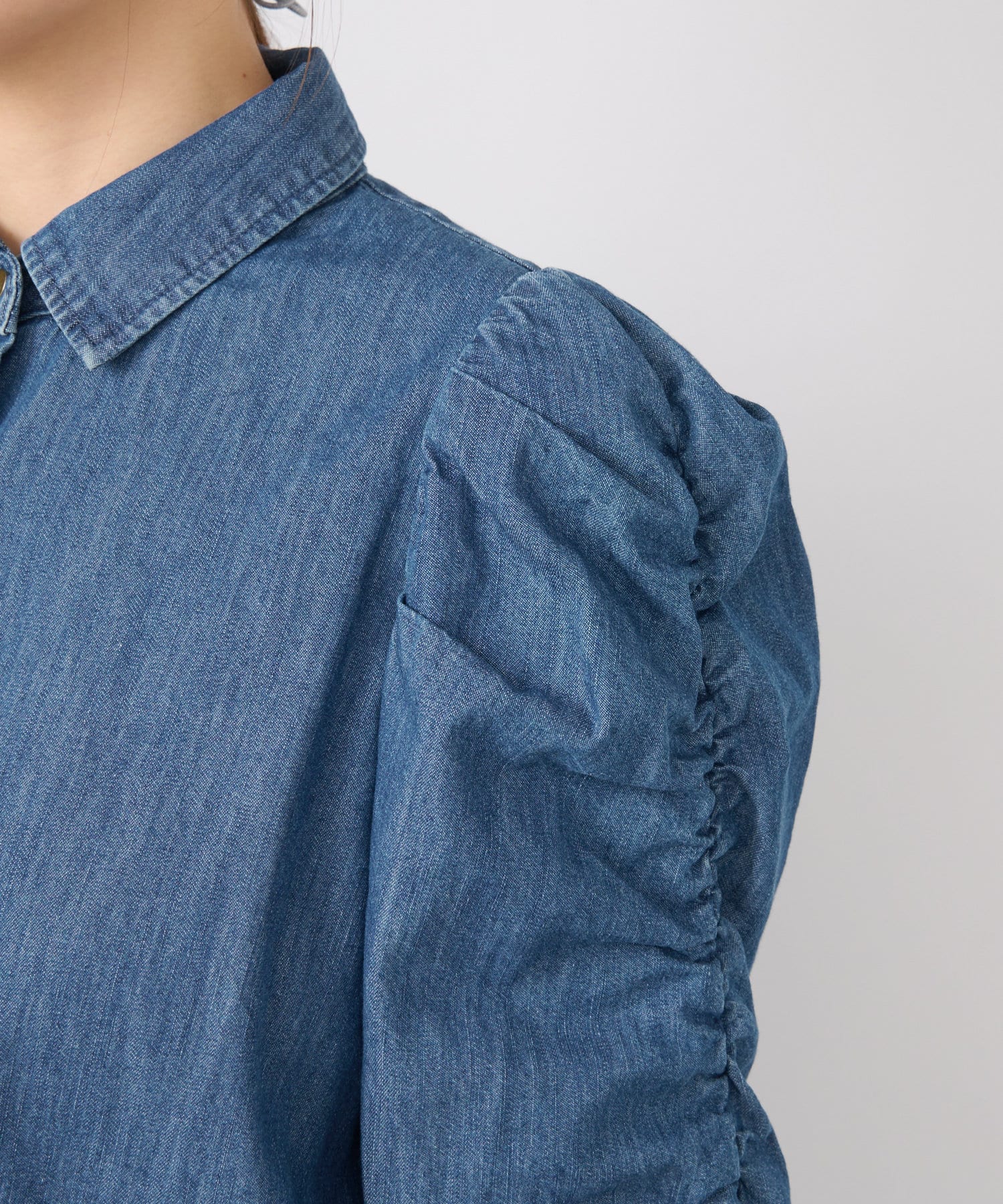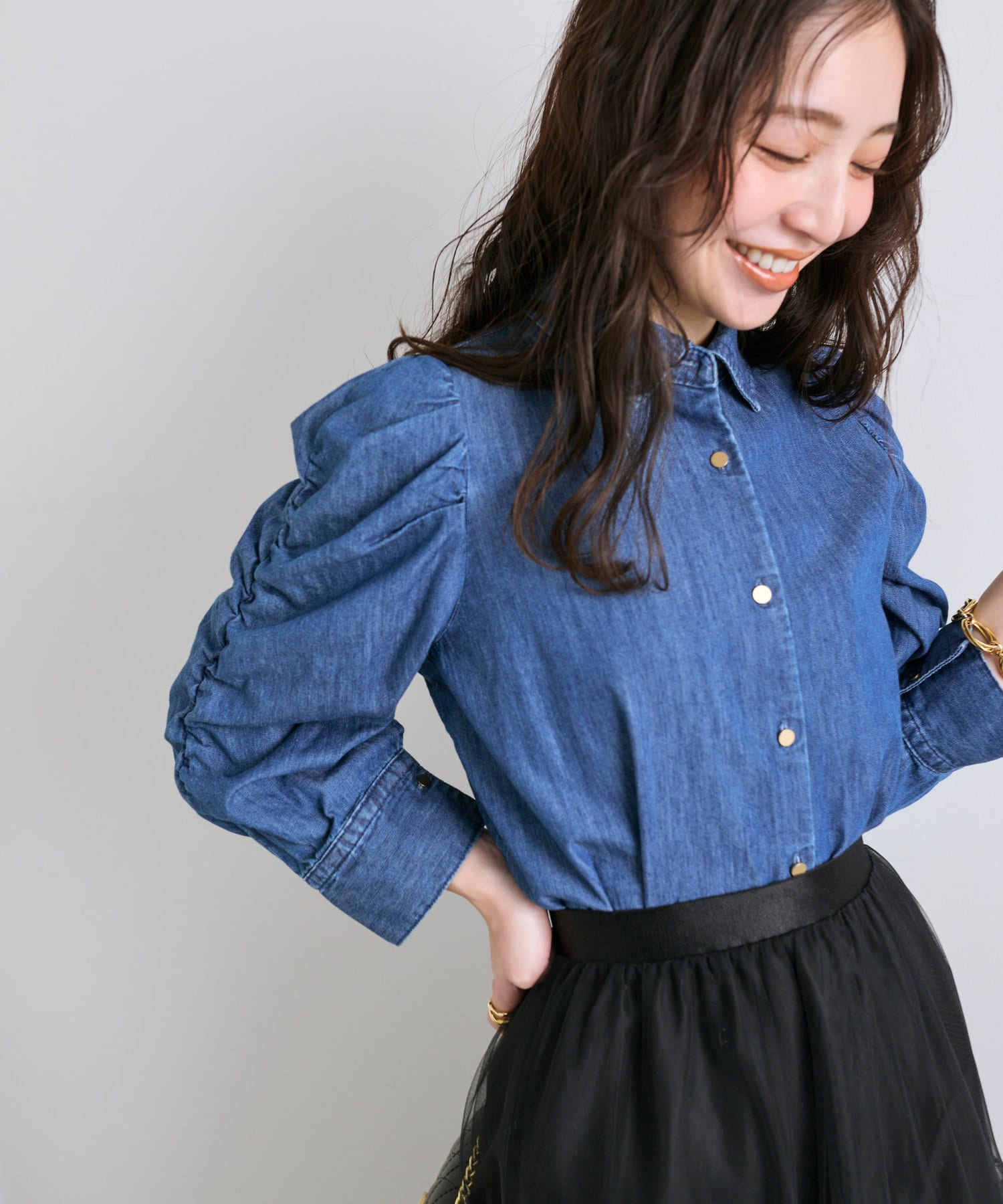 TOP > La boutique BonBon > レディース > トップス > シャツ/ブラウス(ボタン) > 【セットアップ可】デニムパワショルシャツ