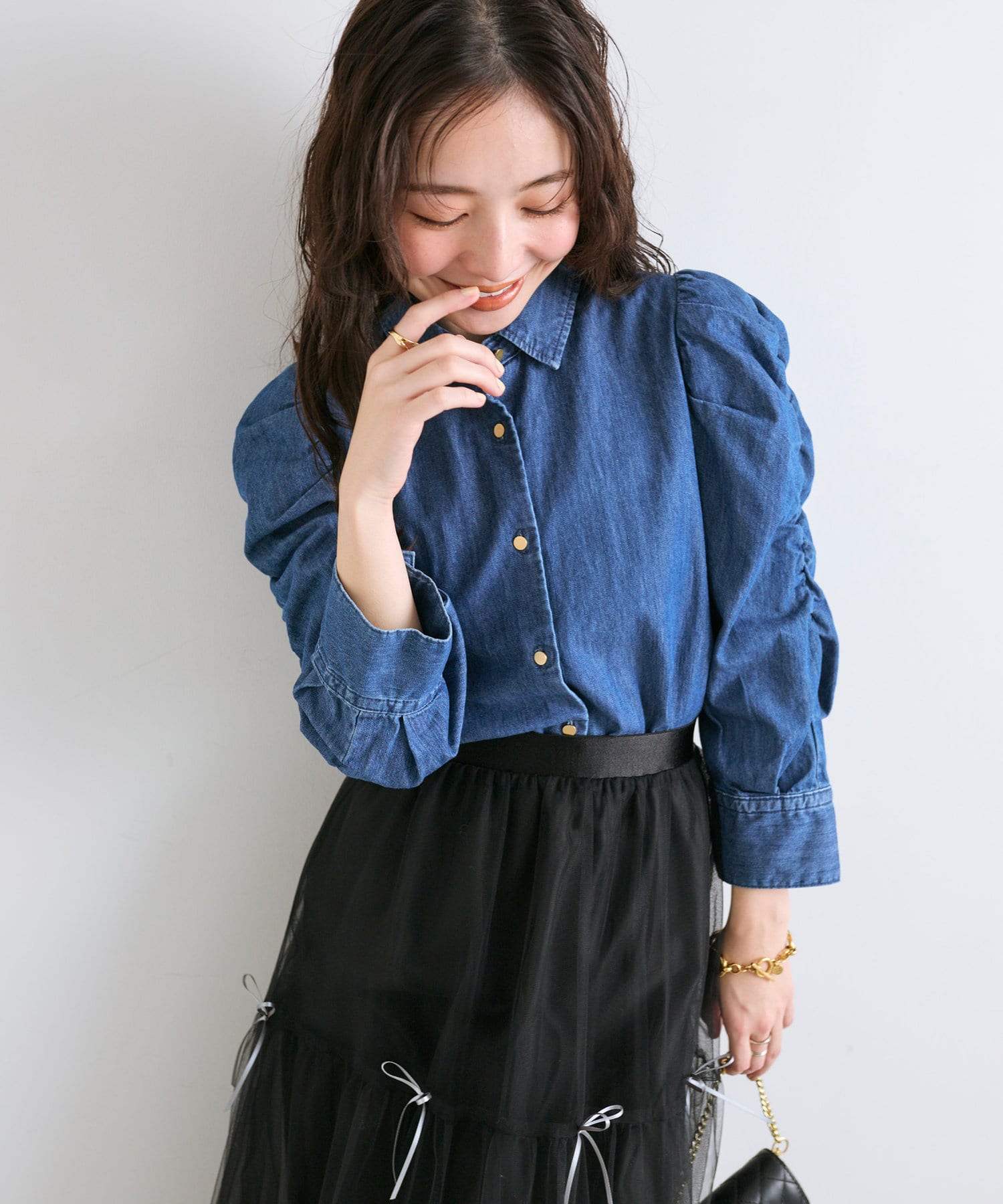 La boutique BonBon(ラブティックボンボン) 【セットアップ可】デニムパワショルシャツ