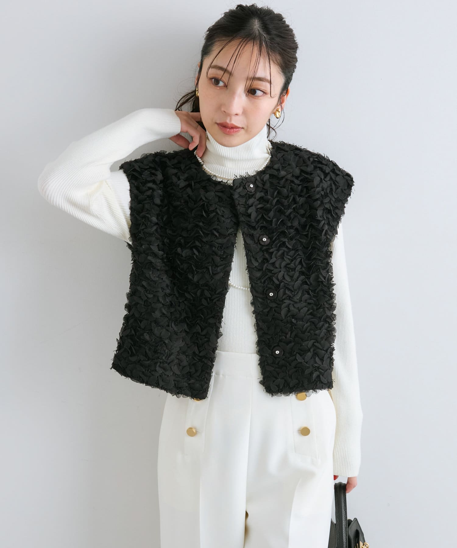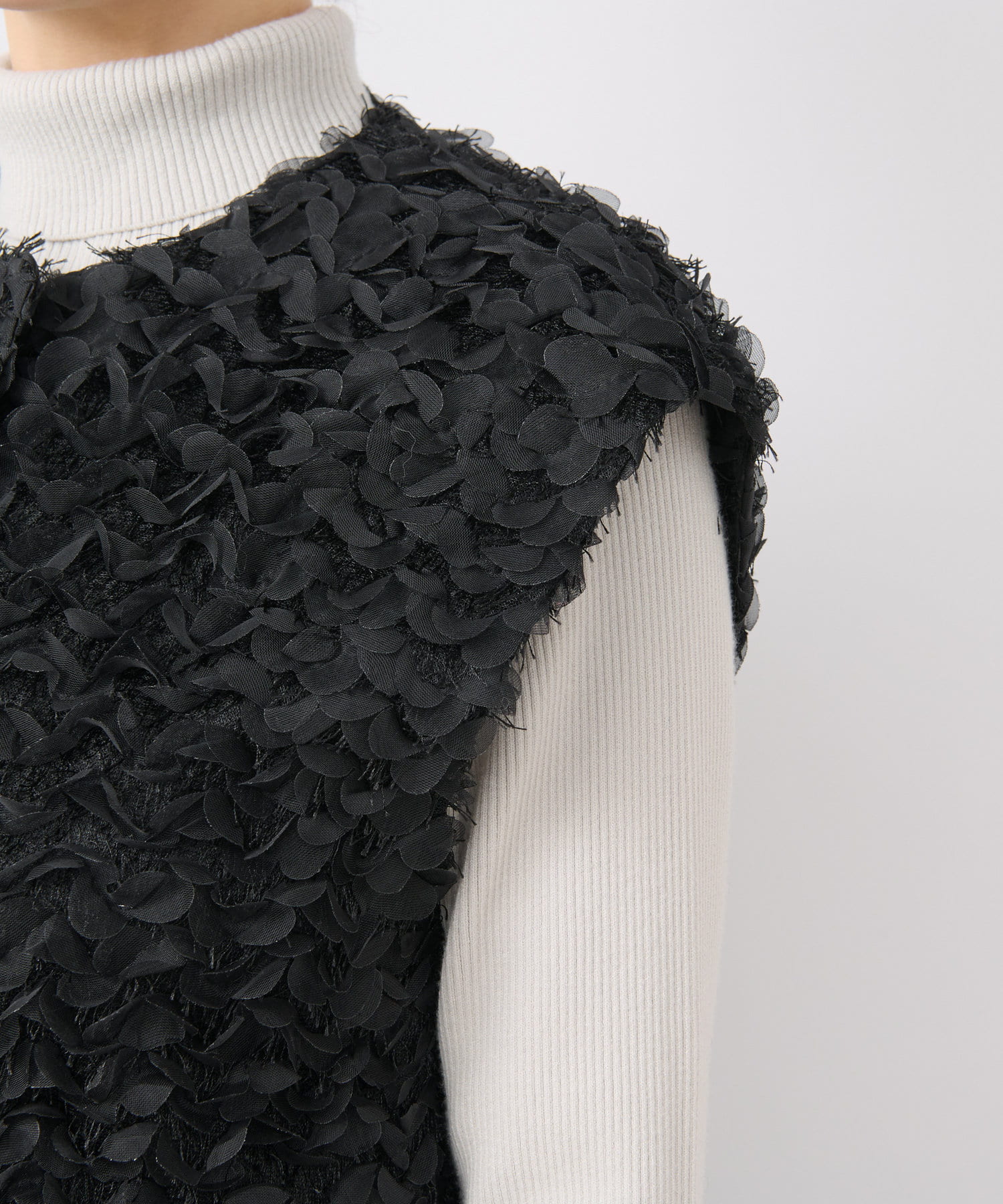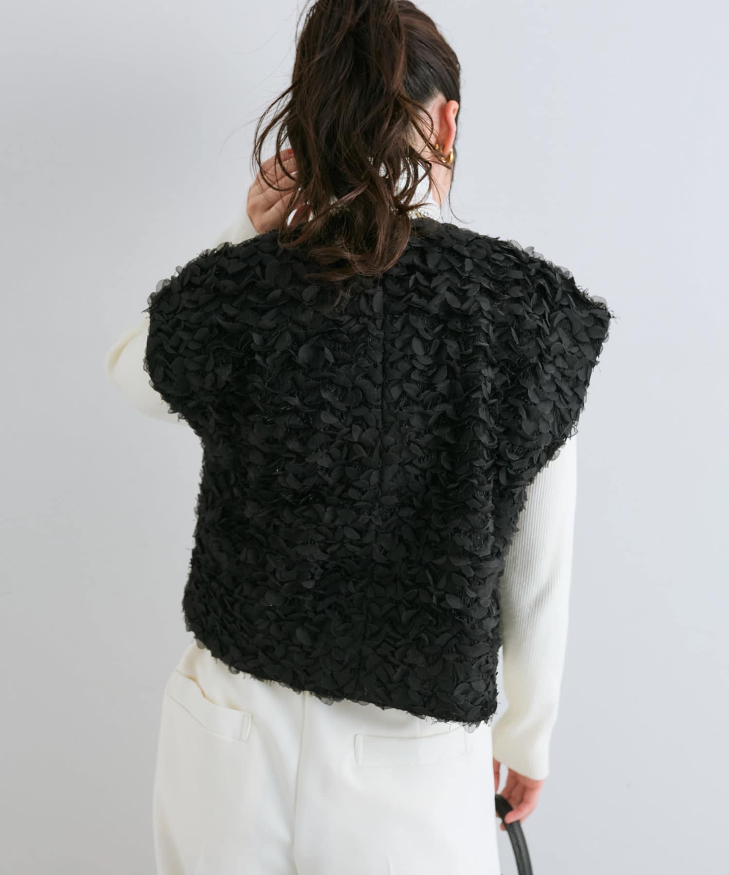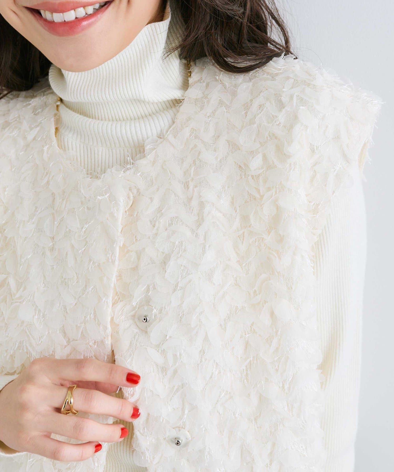 今年顔コーデにおすすめ!お花モチーフの上品フェザーチュールベスト