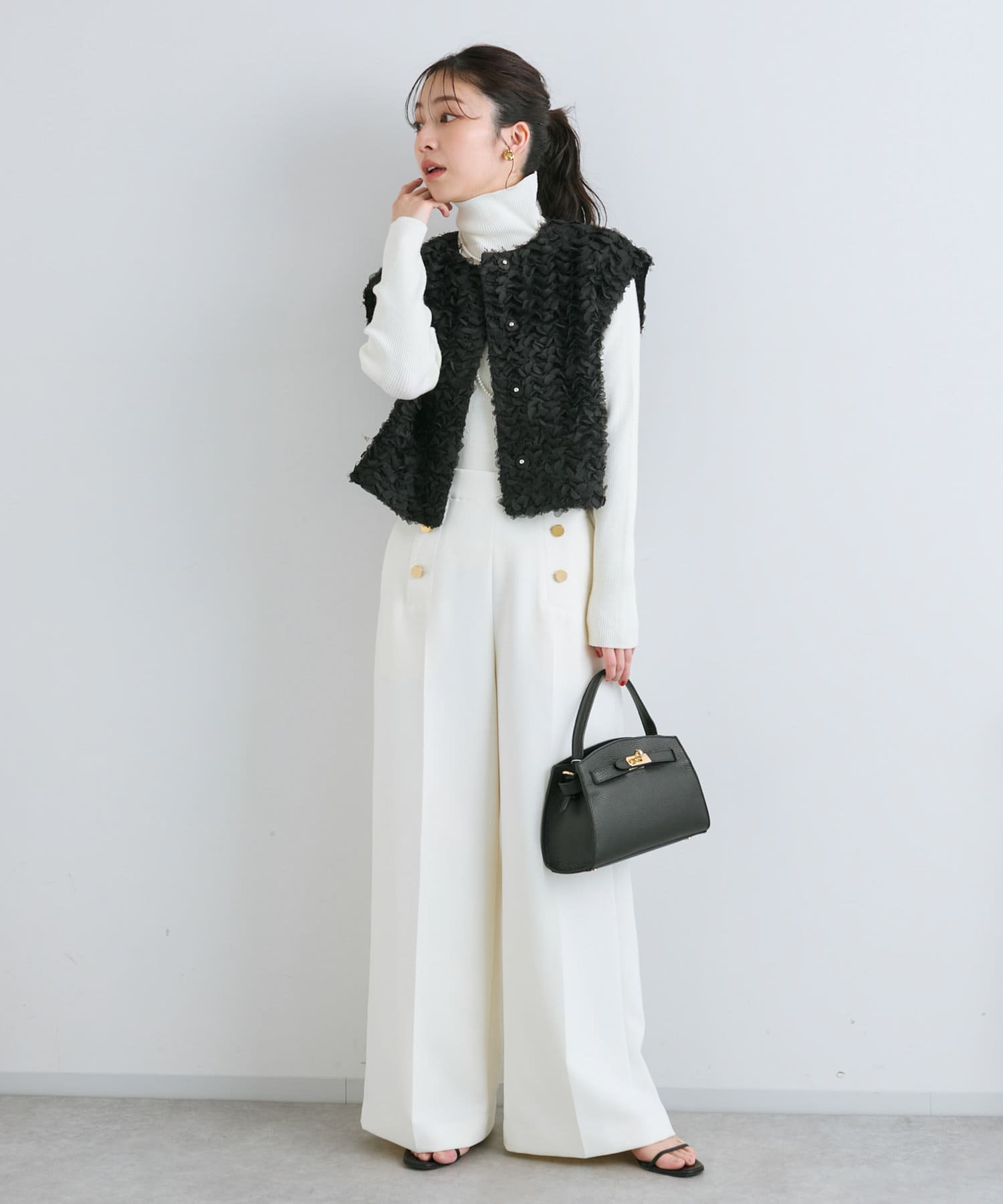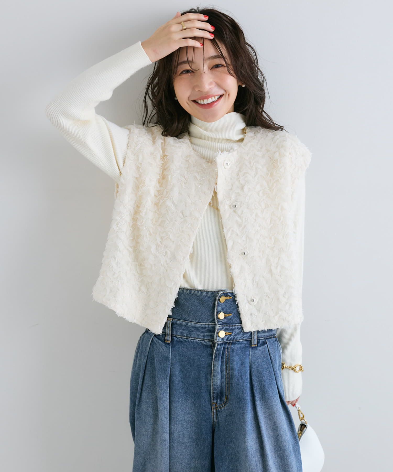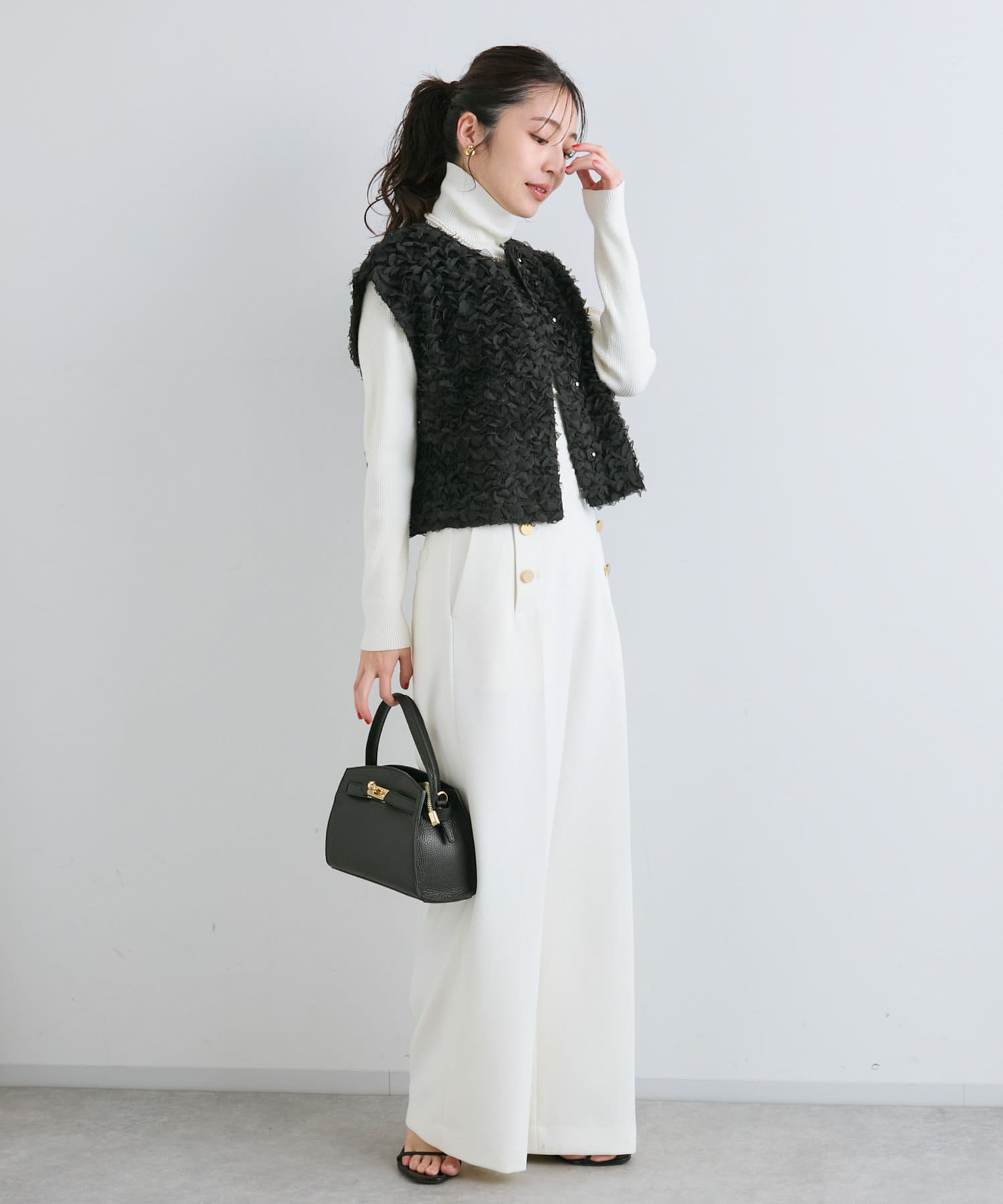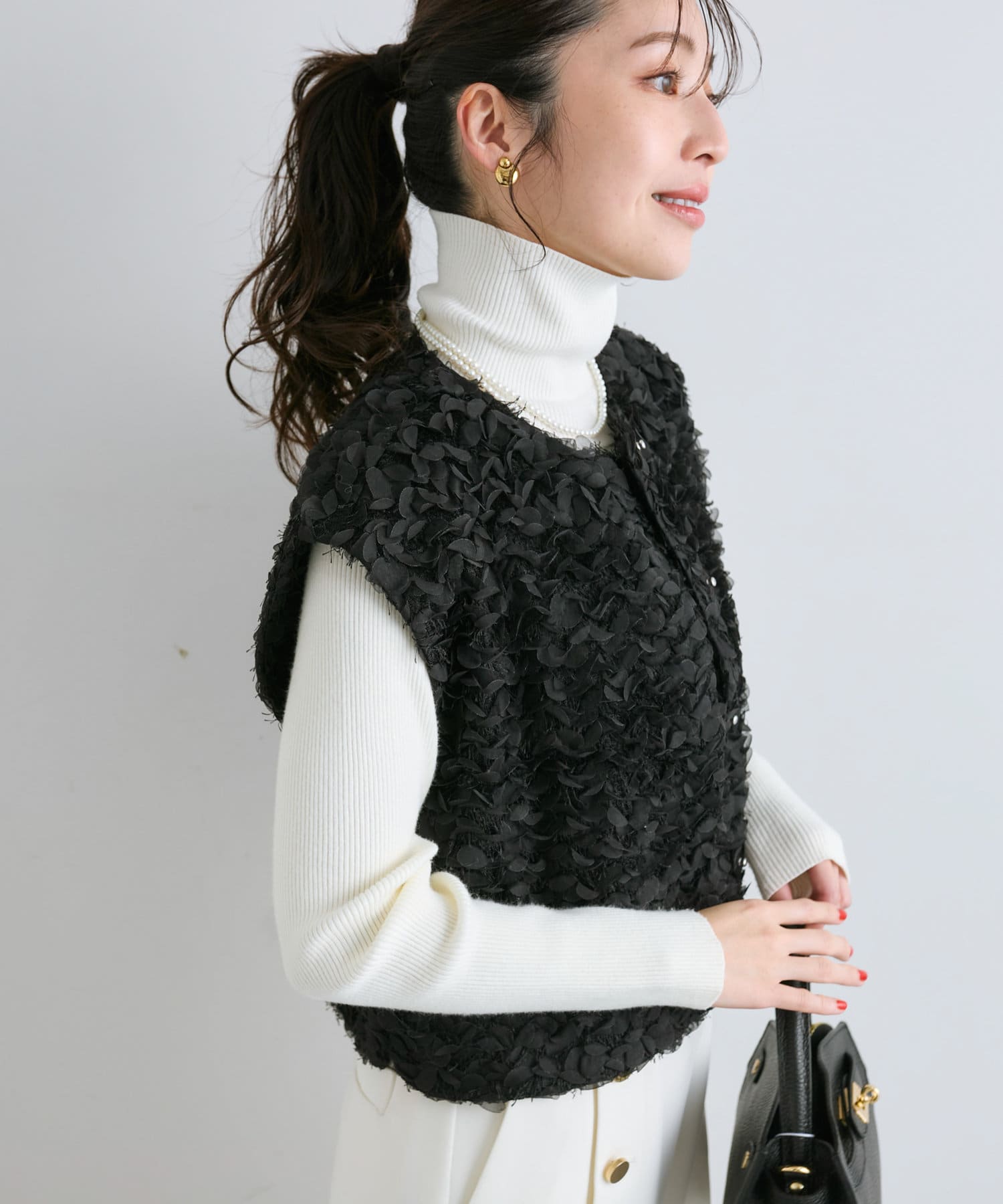 今年顔コーデにおすすめ!お花モチーフの上品フェザーチュールベスト