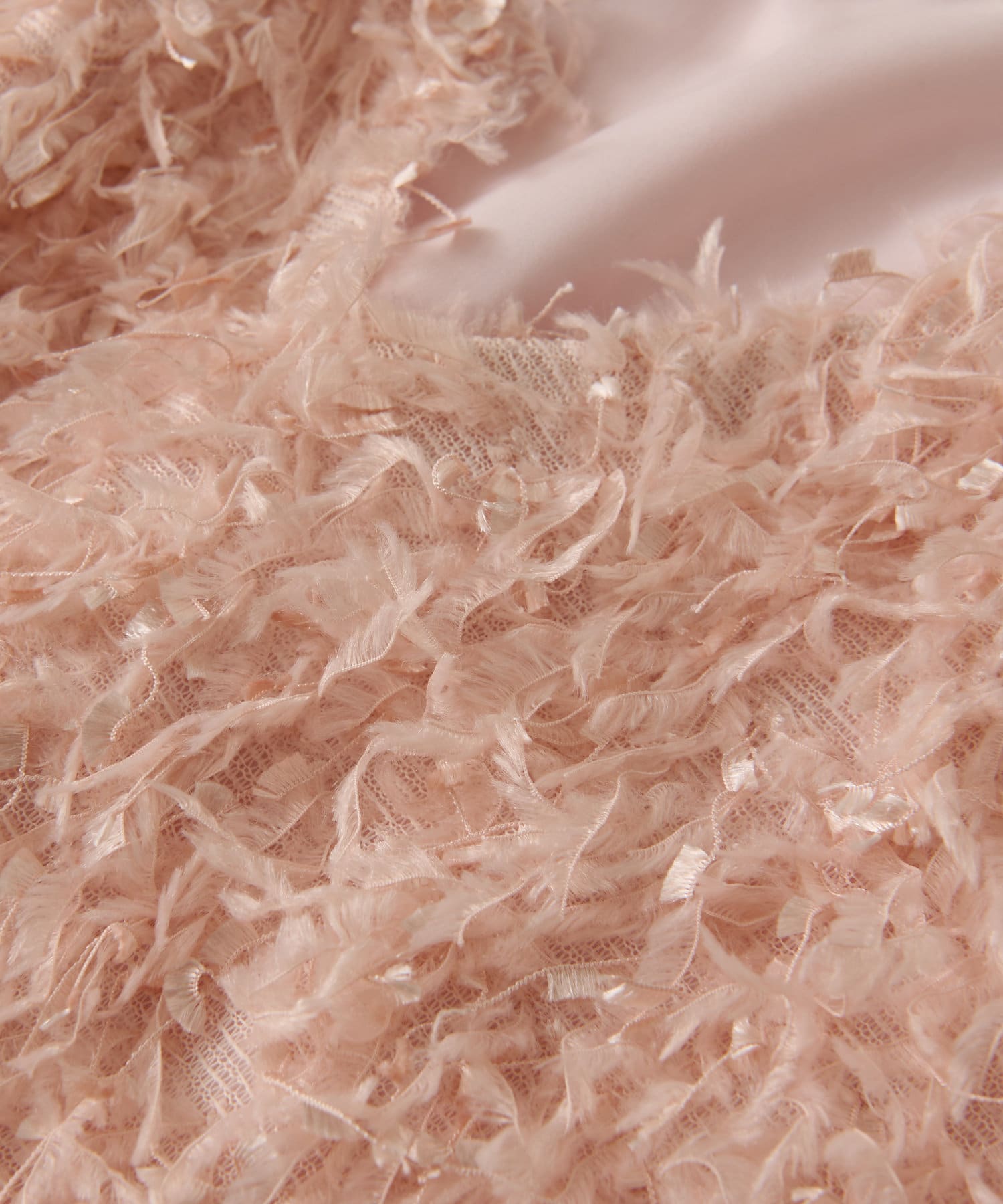 ふわふわと揺れる軽いフェザーがキャッチーで華やかさがありながらも柔らかい印象に。