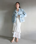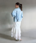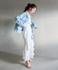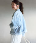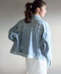 ジュエリーのような繊細なパールを散りばめたデザインが上品なデニムジャケット。
