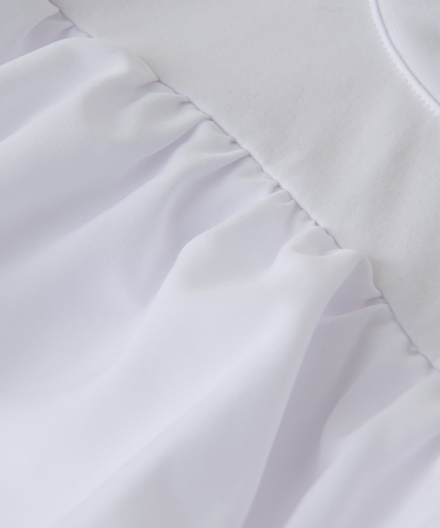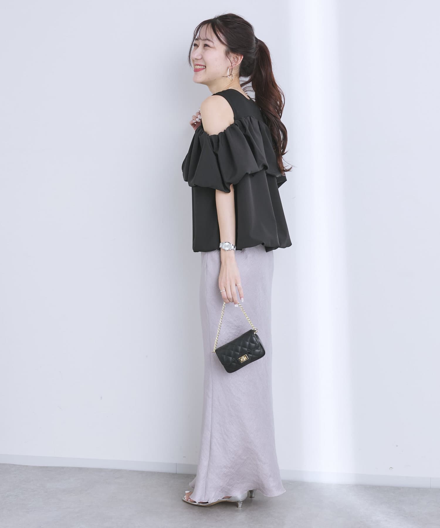 落ち感のある布帛素材がボリュームがありながらも広がりを抑えたデザイン。