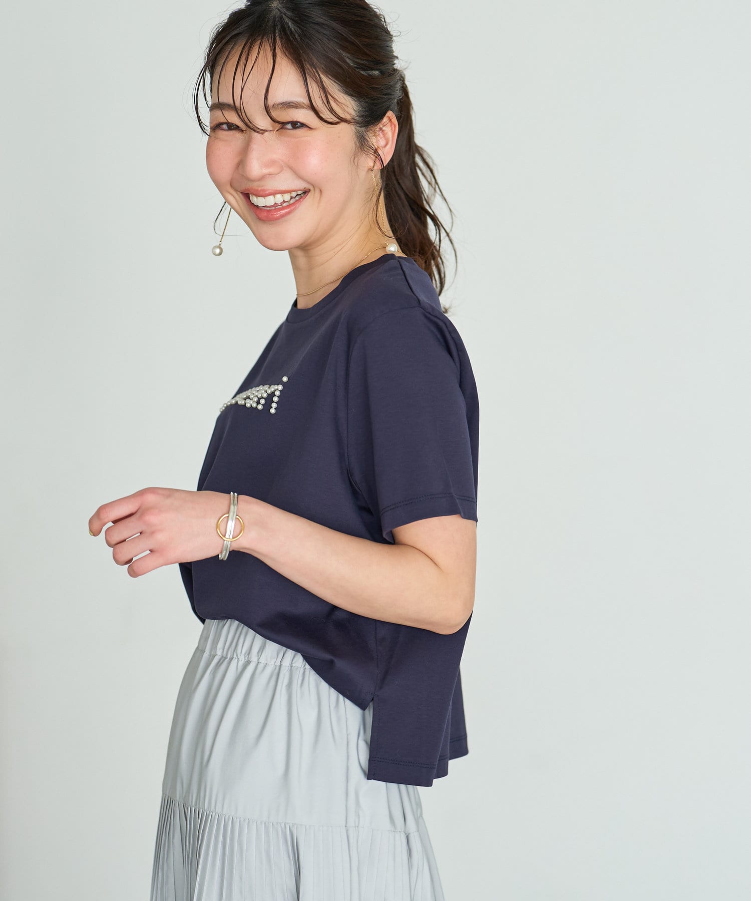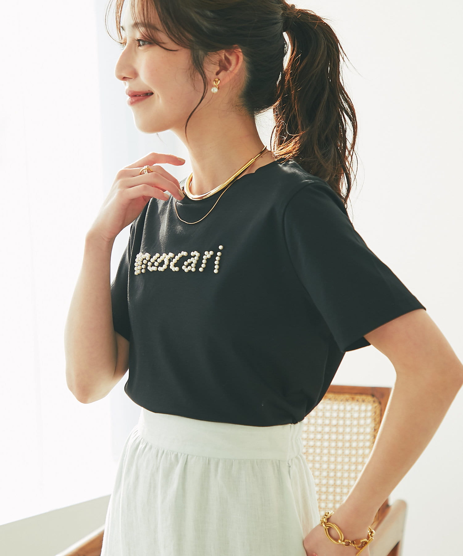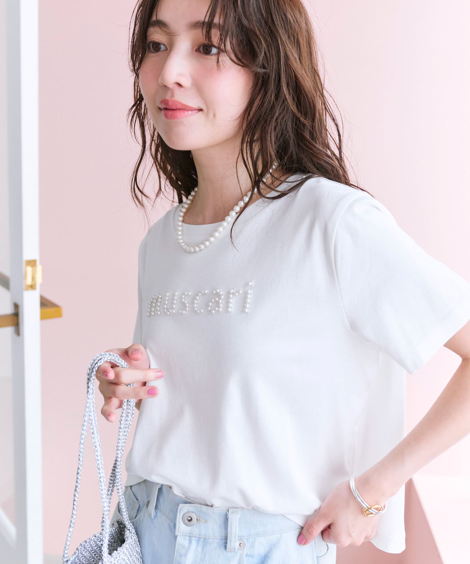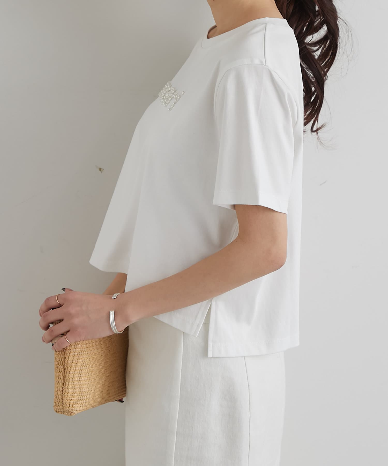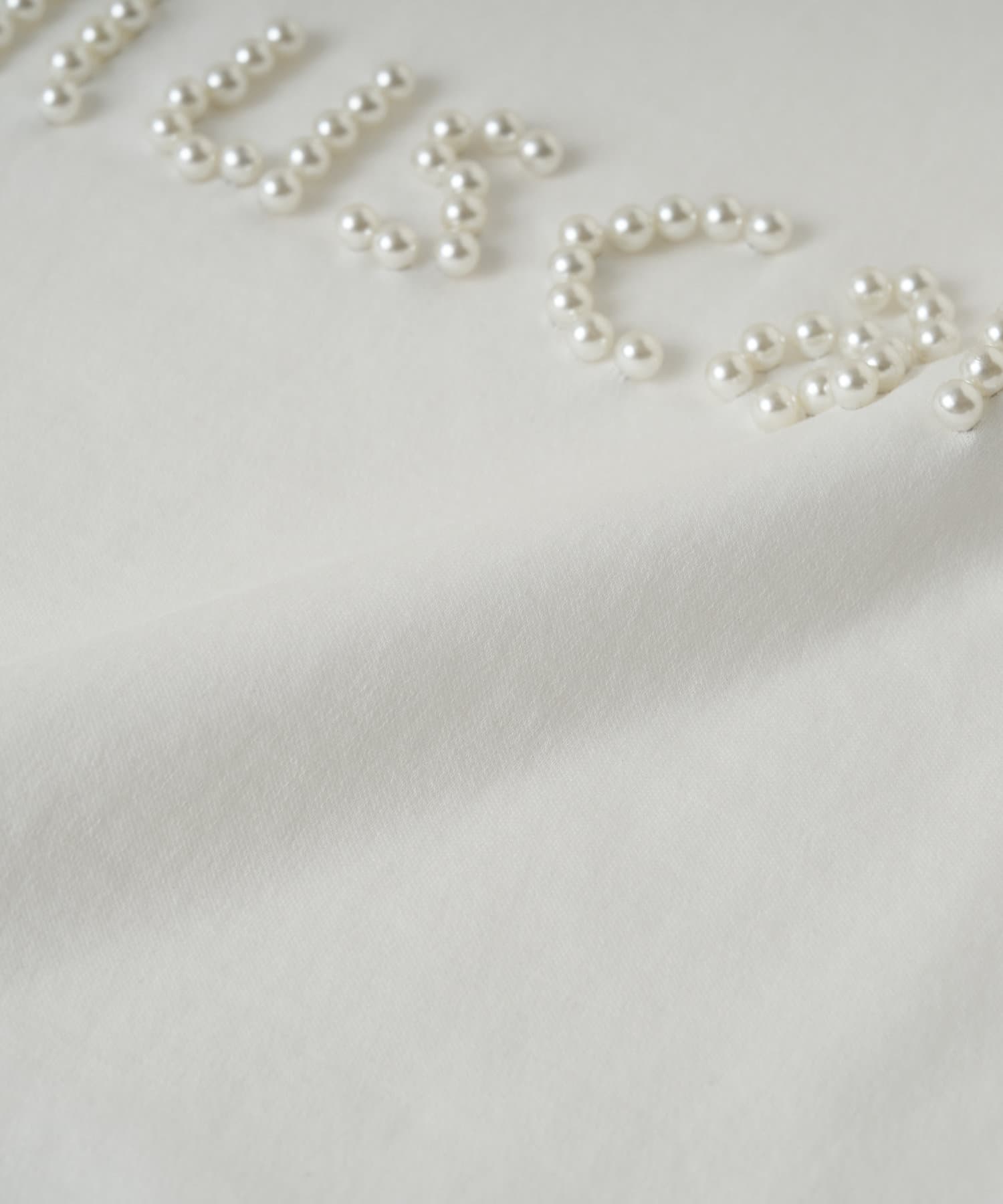 大人のカジュアルコーデにぴったりなパールモチーフTシャツ。