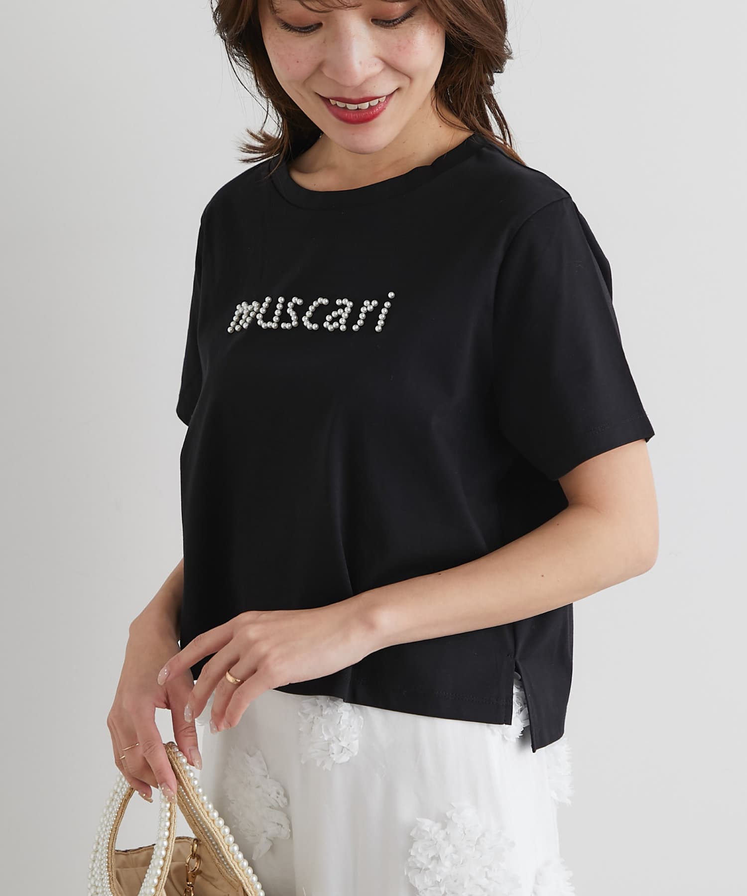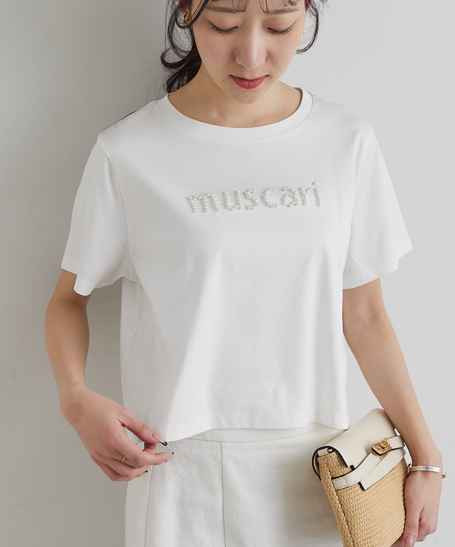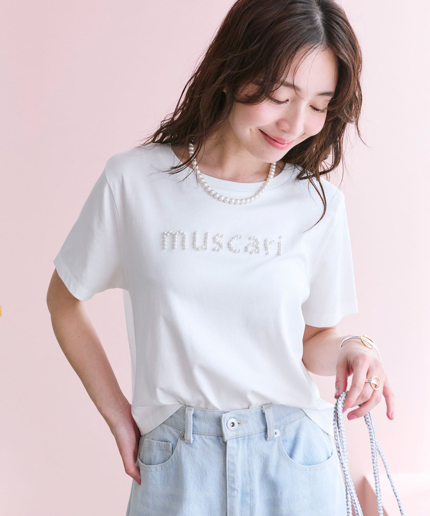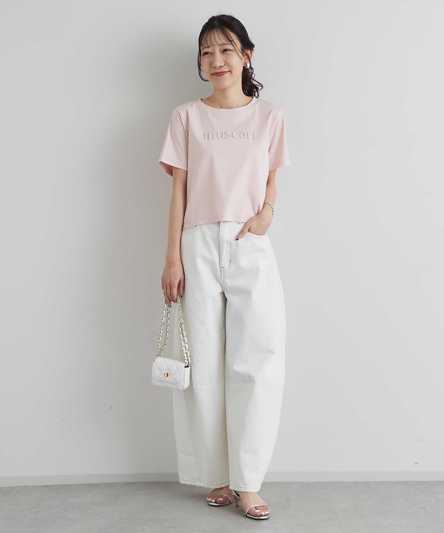 大人のカジュアルコーデにぴったりなパールモチーフTシャツ。