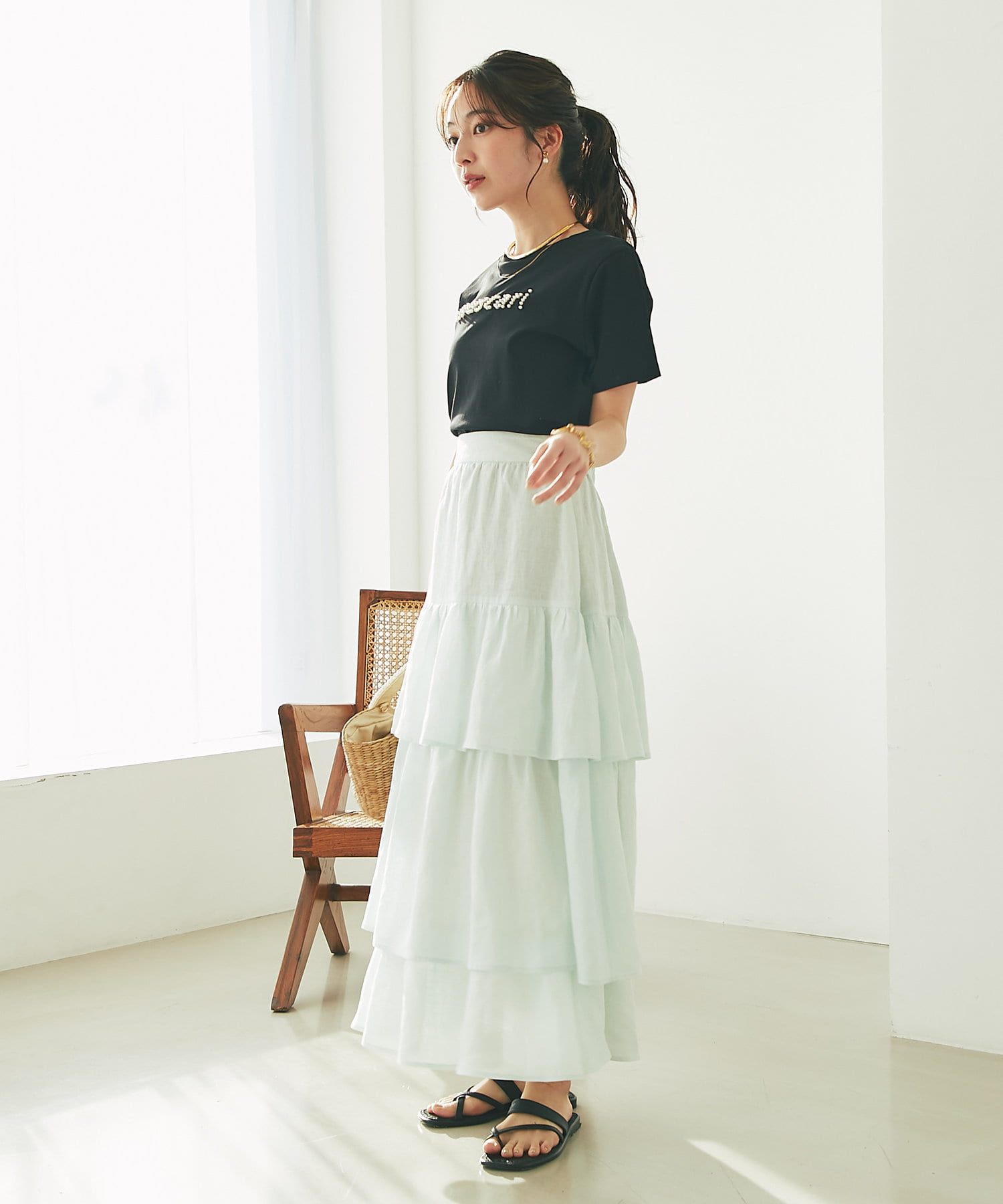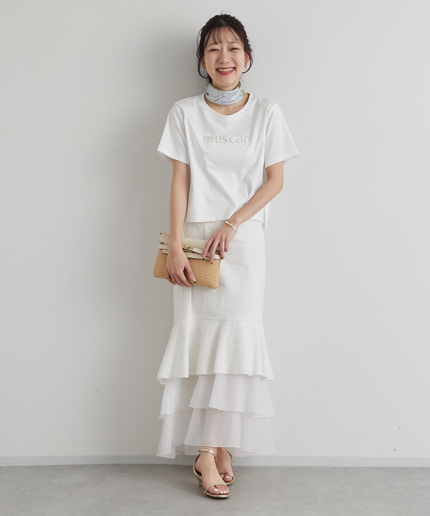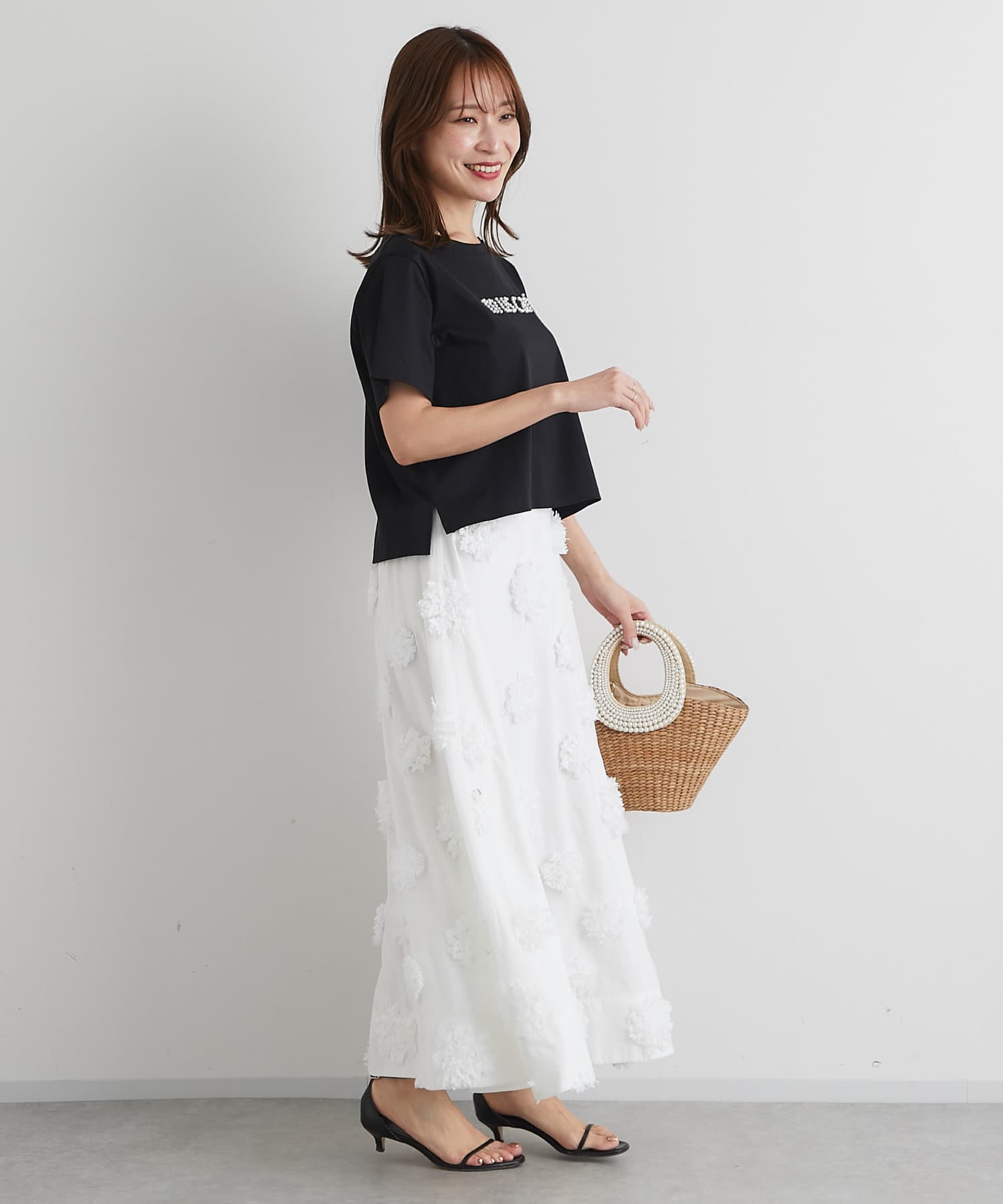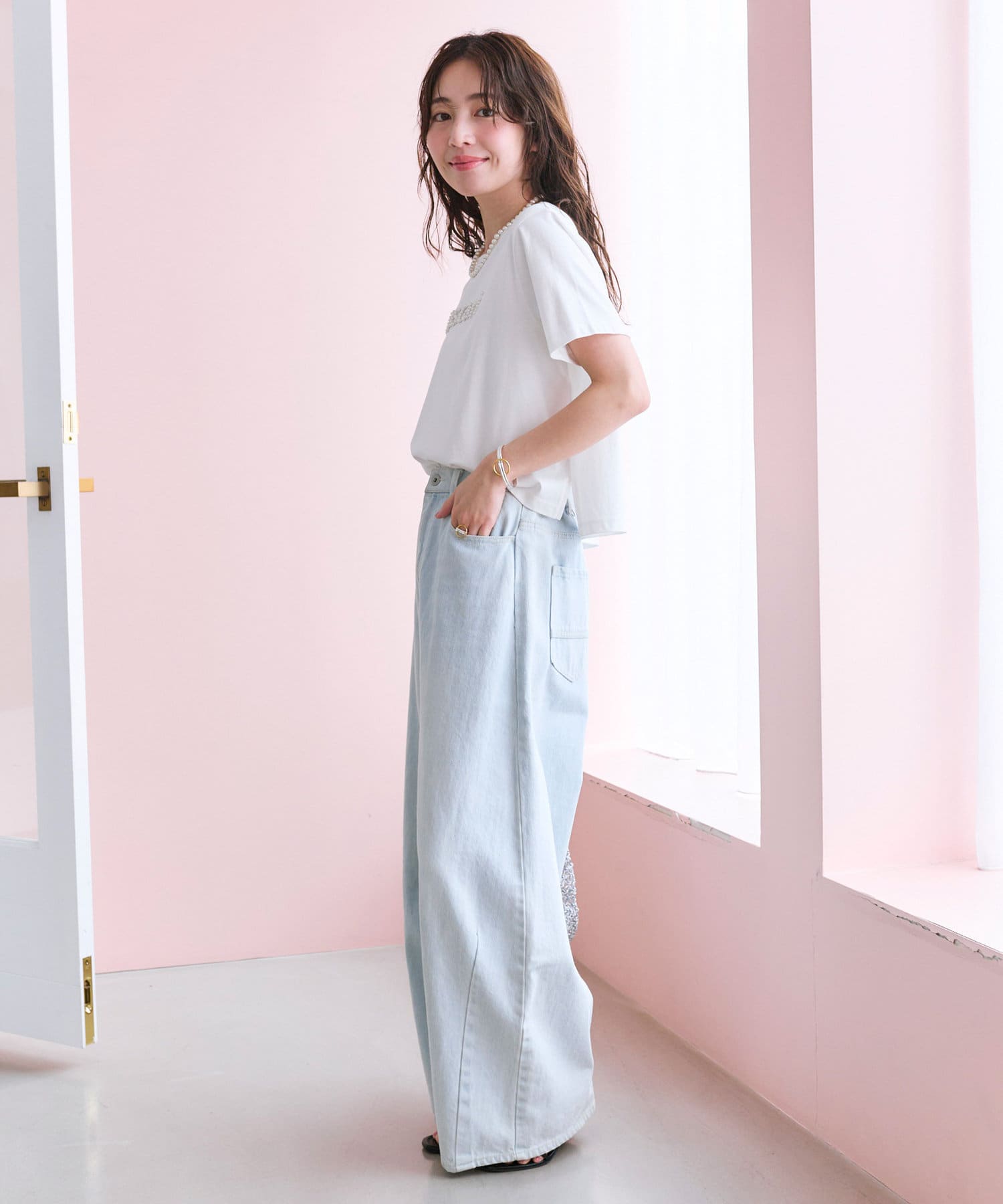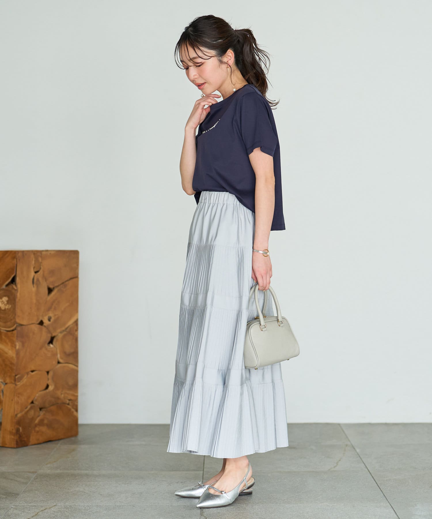 大人のカジュアルコーデにぴったりなパールモチーフTシャツ。