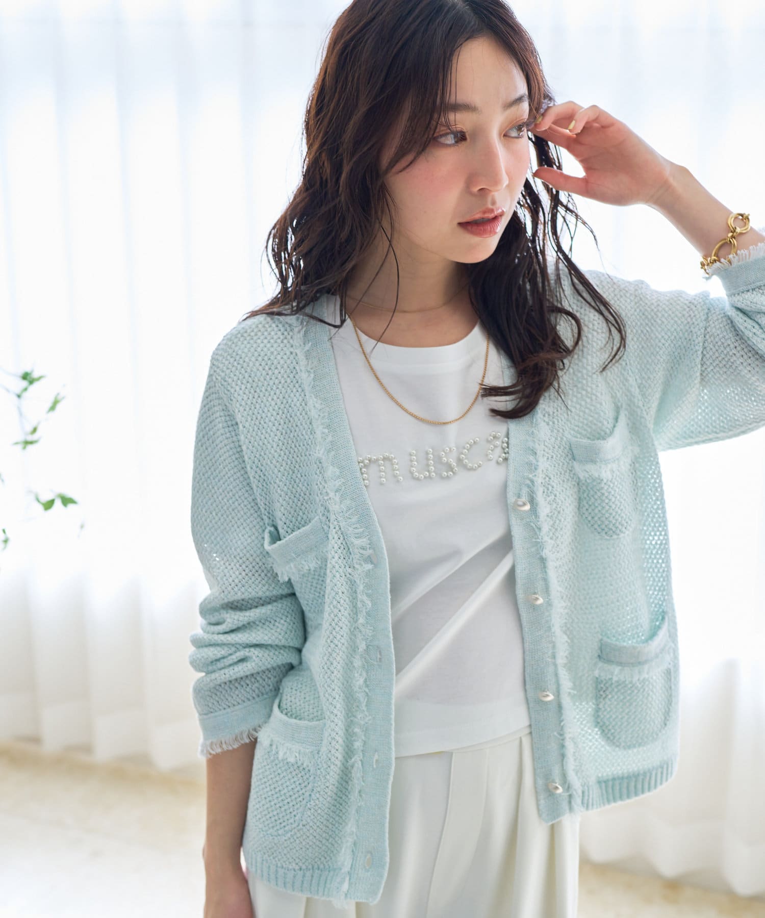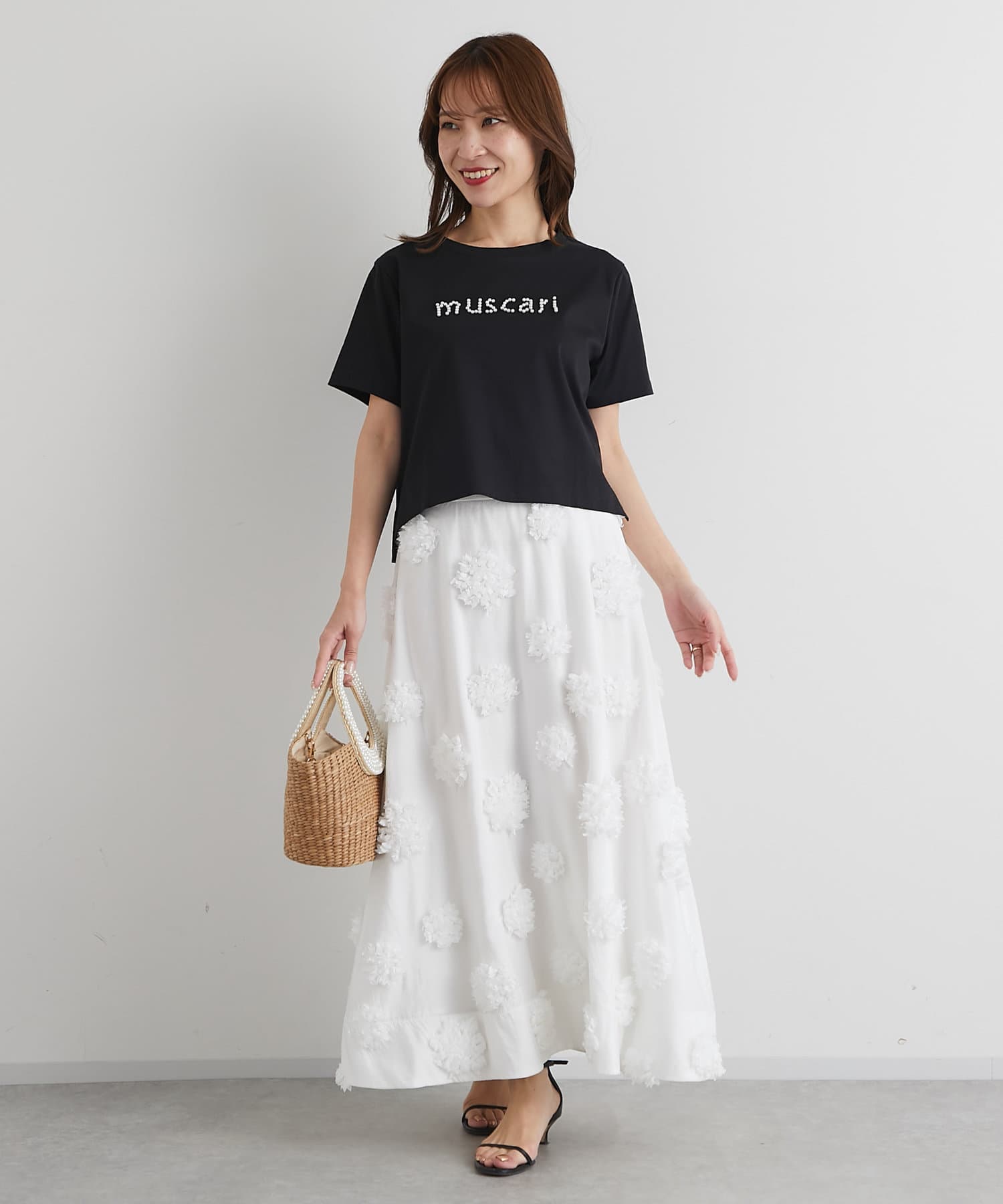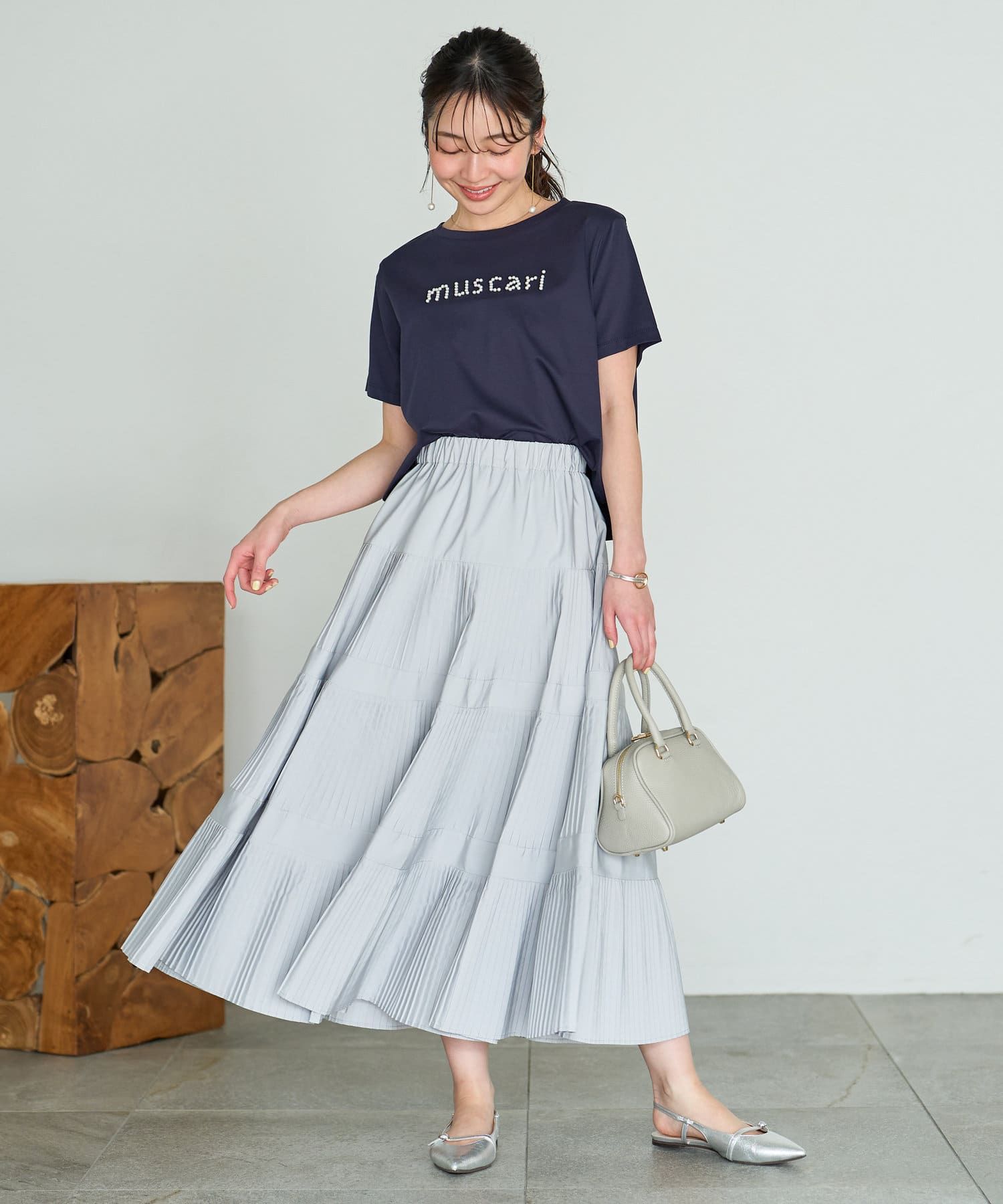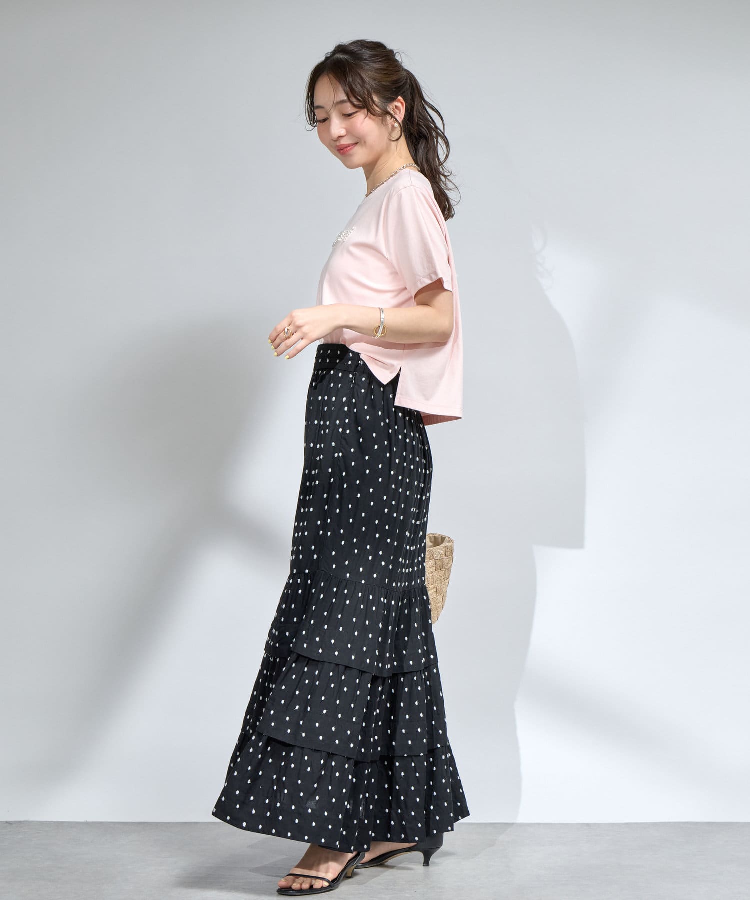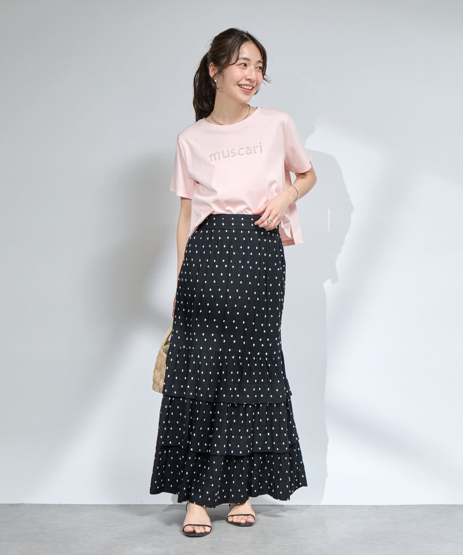 大人のカジュアルコーデにぴったりなパールモチーフTシャツ。