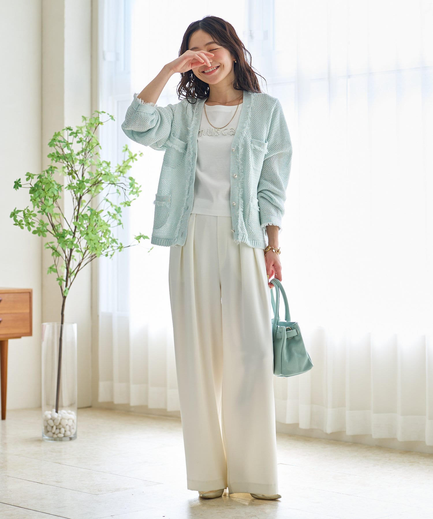 短丈なのでハイウエストのパンツやスカート合わせがおすすめ。
