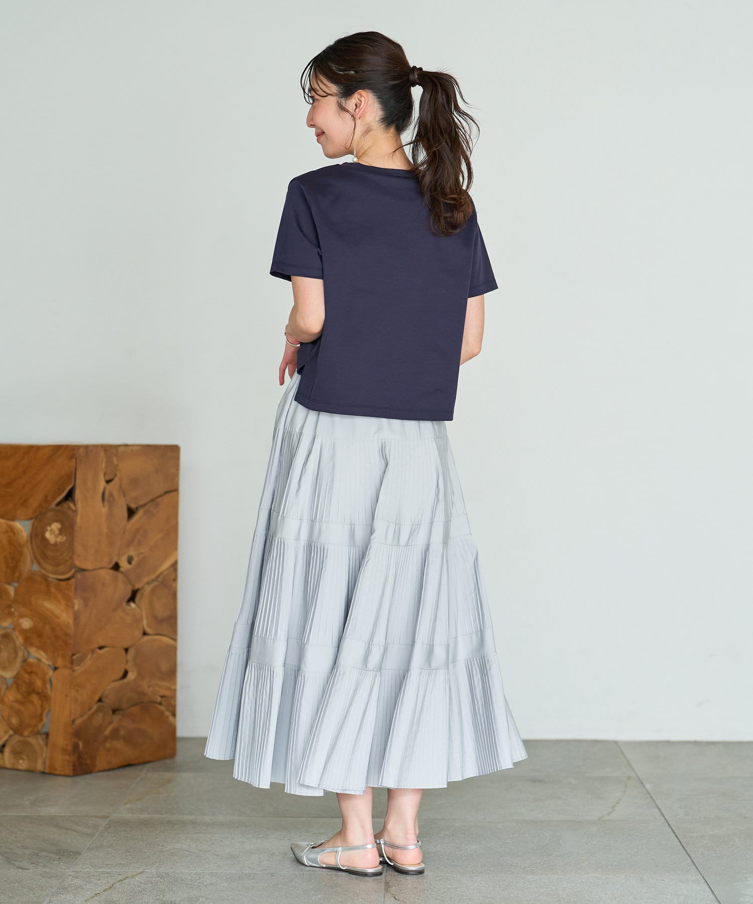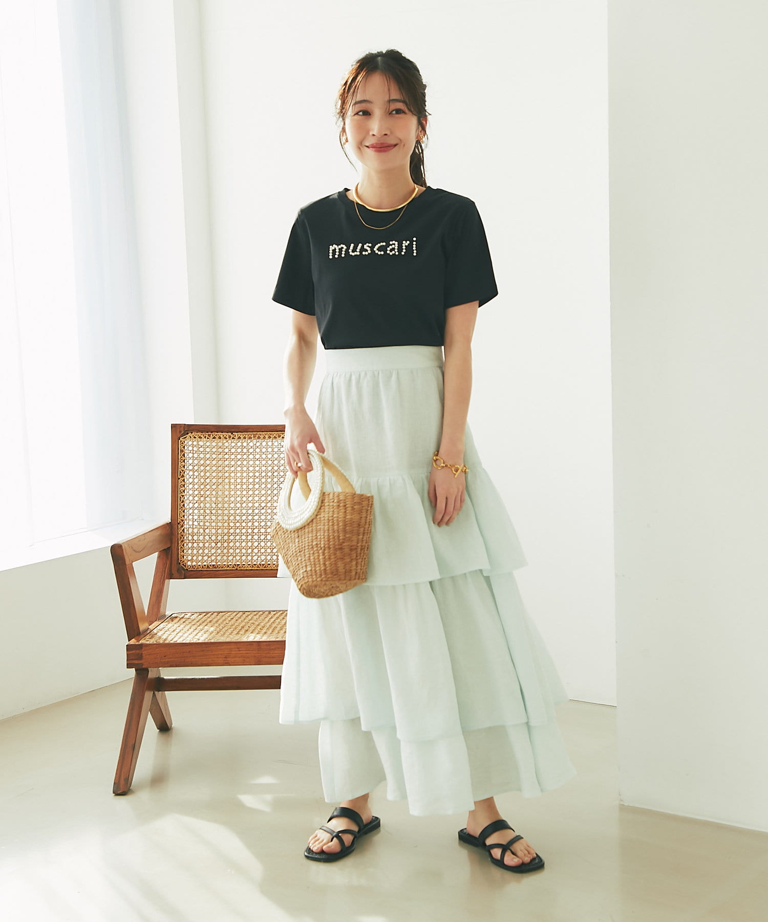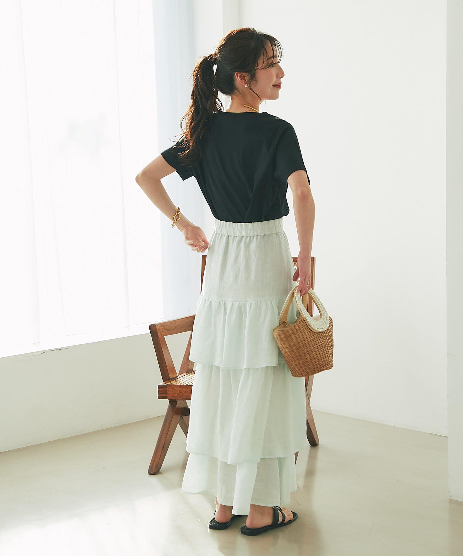 キレイ目で柔らかい綿を使用しているので落ち感があって女性らしいシルエット。