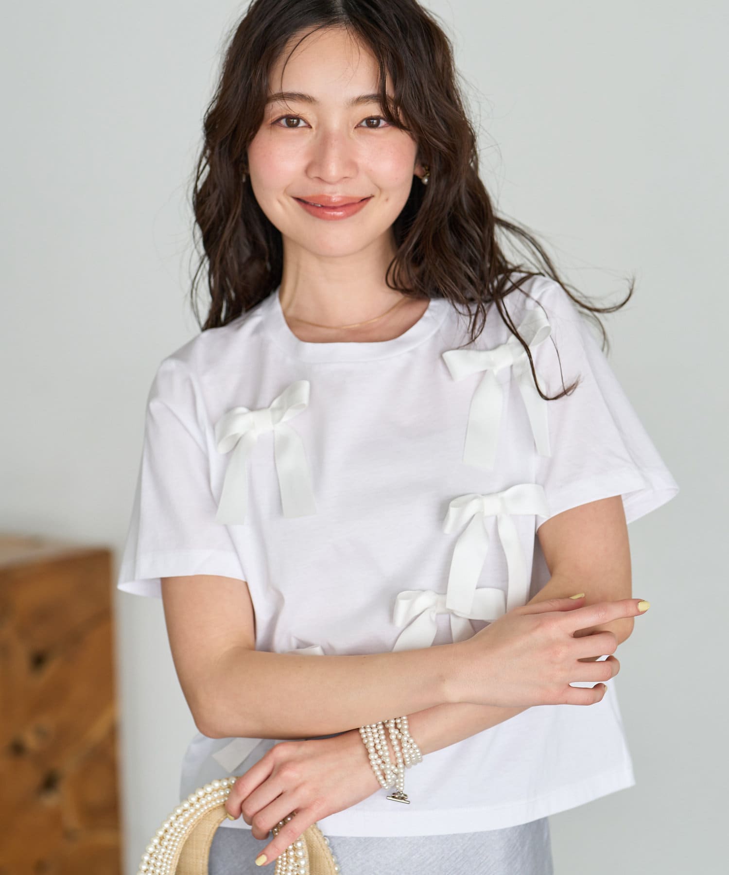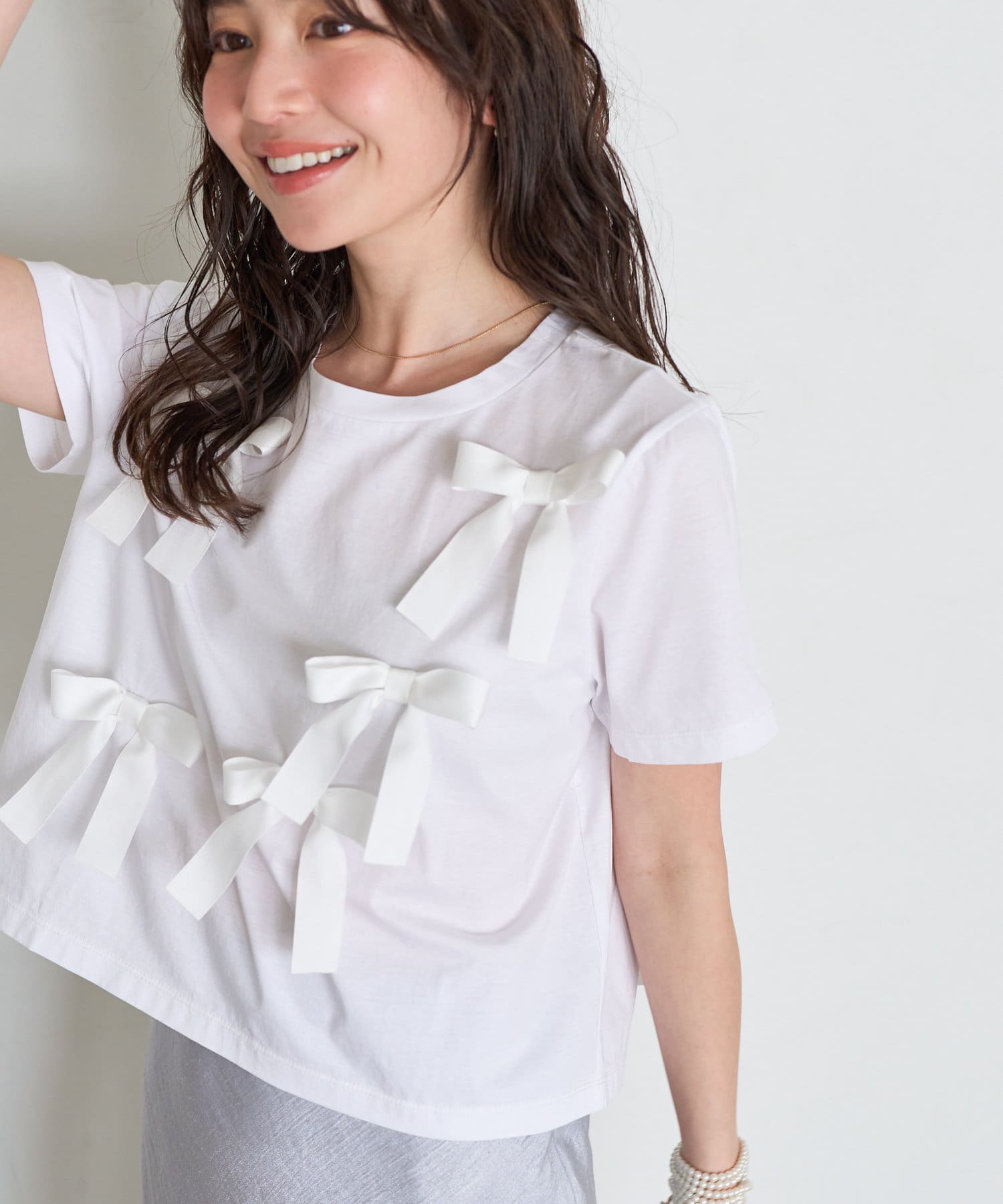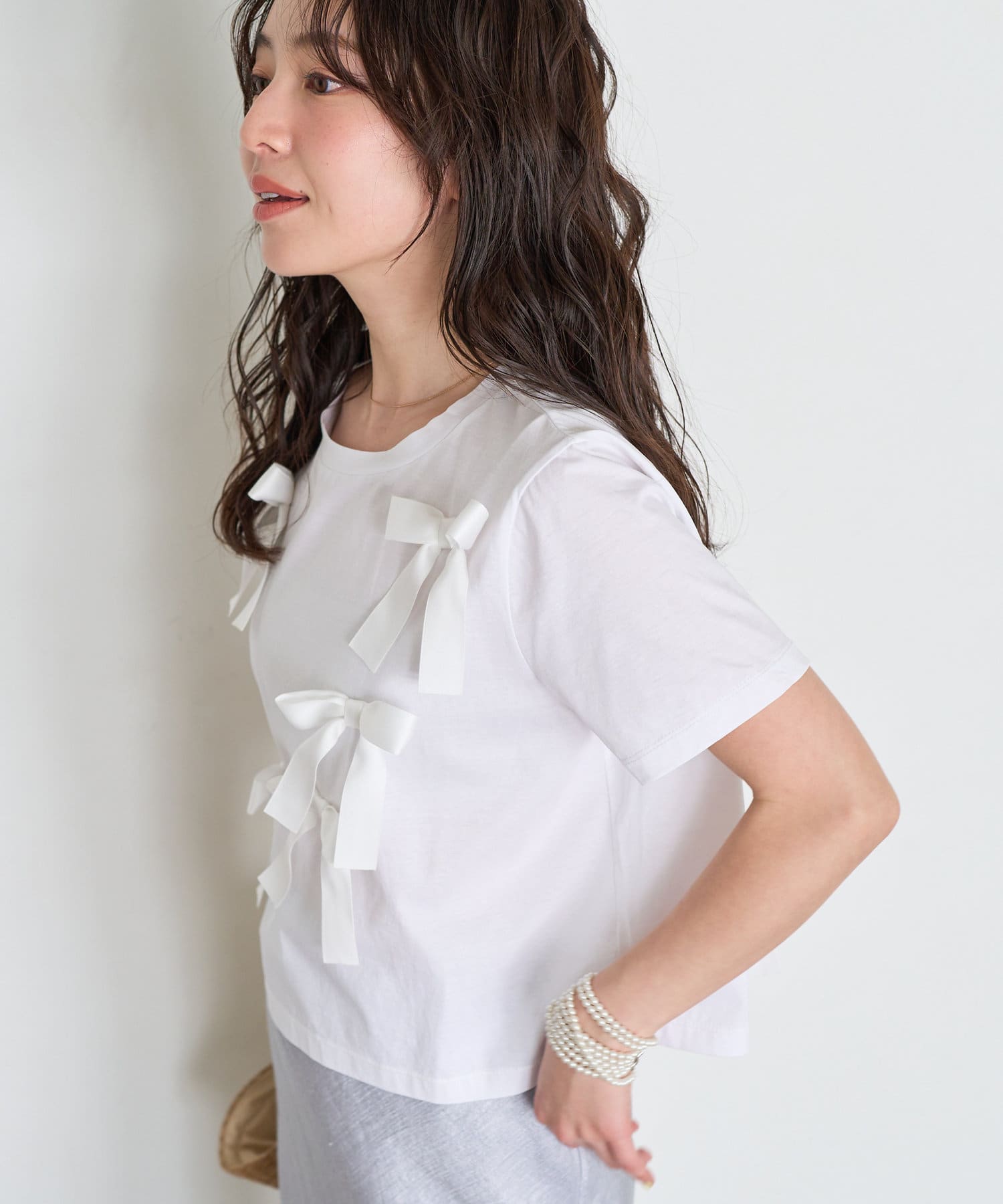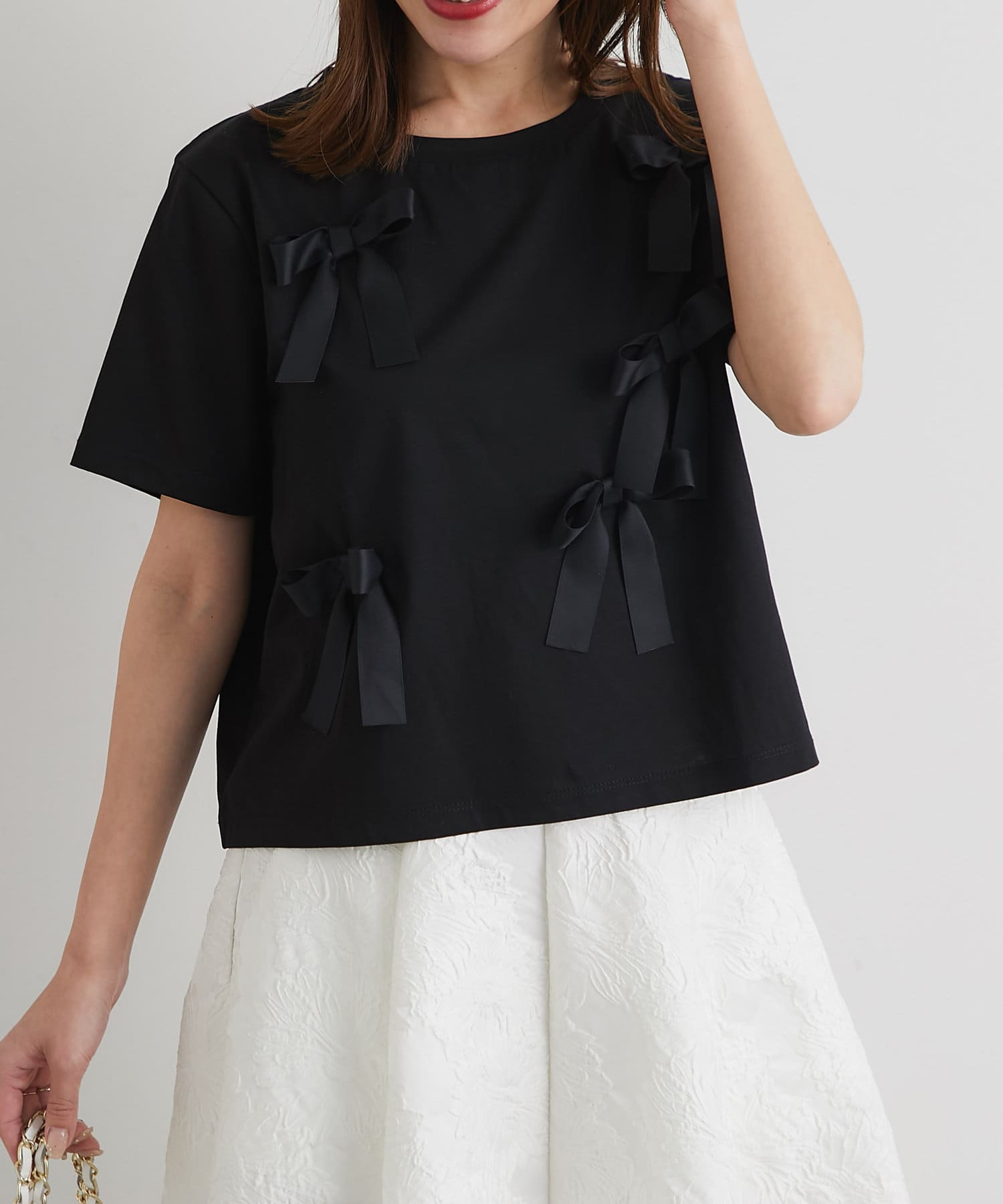 リボンが散りばめられた大人可愛いTシャツ。