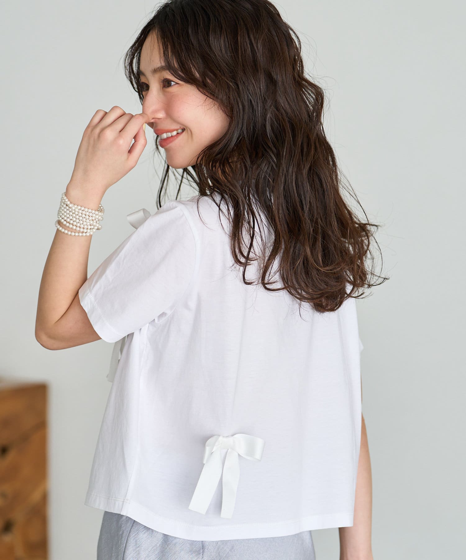 大人可愛いリボンTシャツ