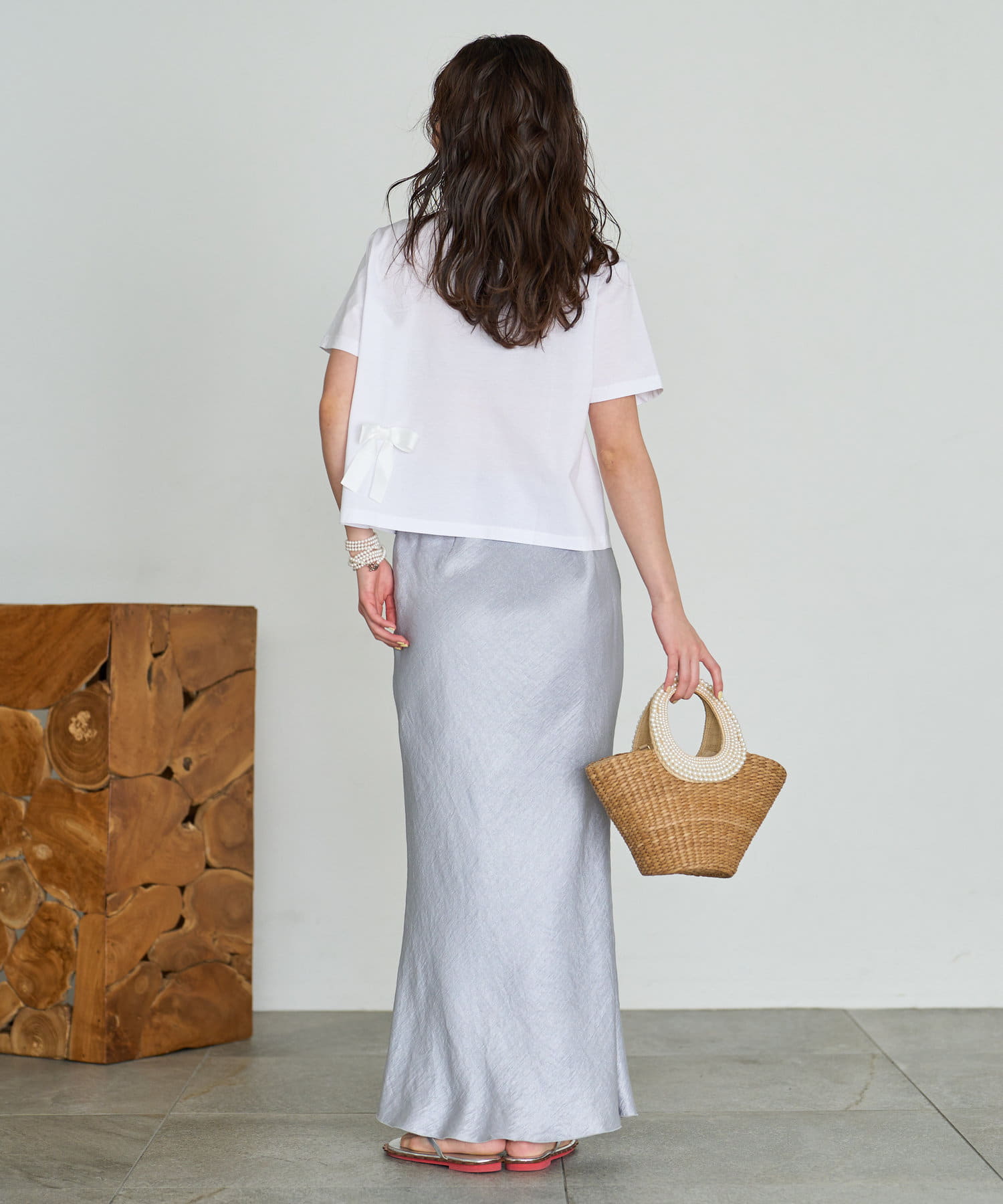 シンプルになりがちなTシャツコーデも女性らしく着こなせます。