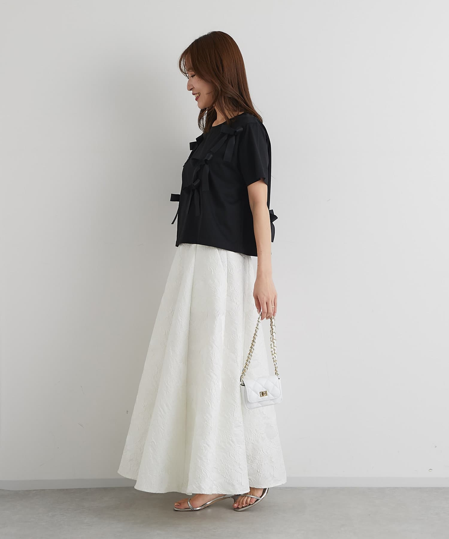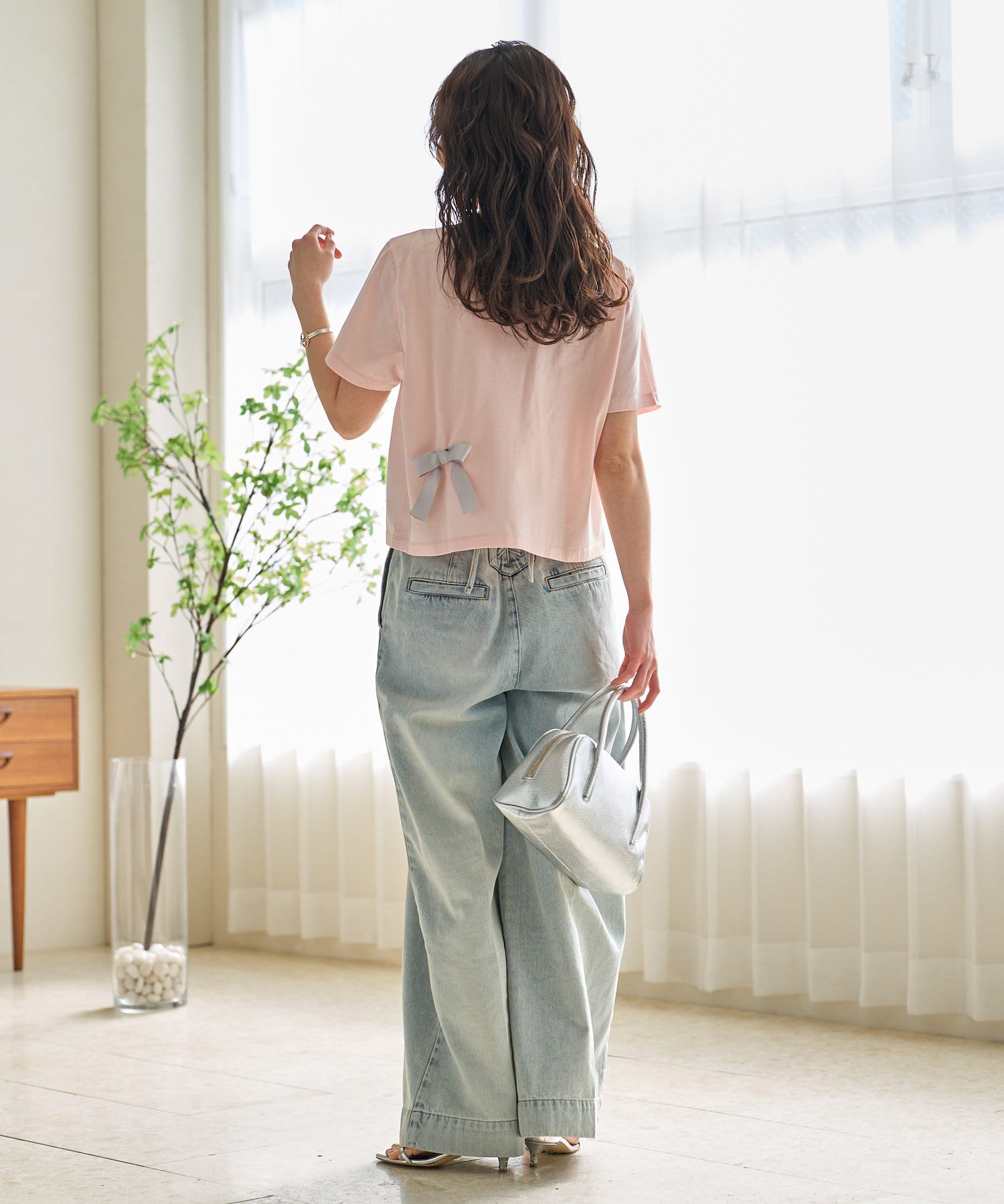 華奢なリボンで主張しすぎず上品な可愛らしさに。