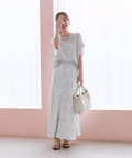 落ち感のあるとろみ素材で、シワになりにくく美しいシルエットをキープしてくれます。