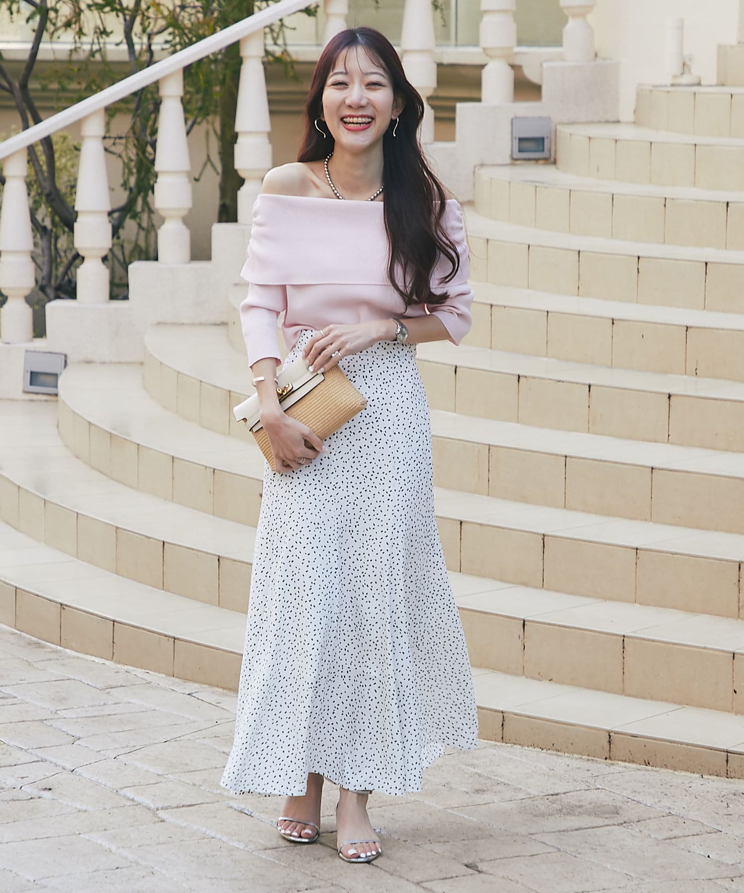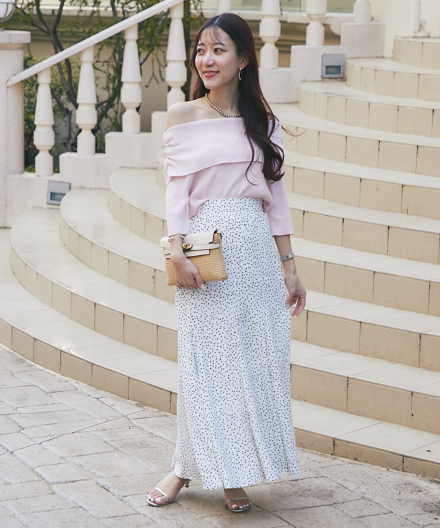 歩くたびにきれいに揺れて女性らしい印象に。