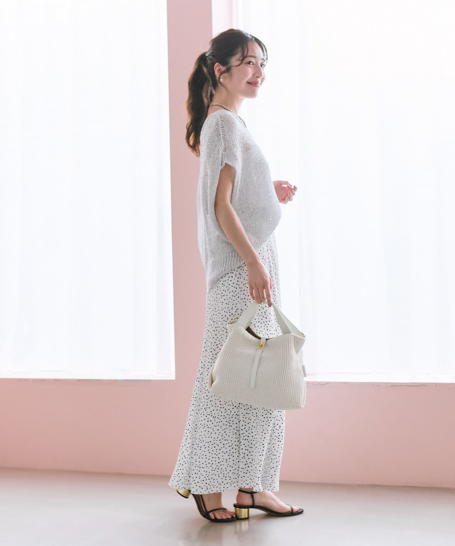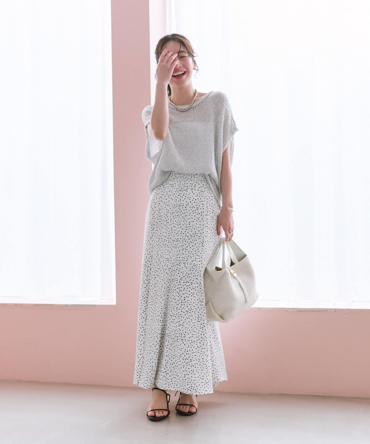 ゆったりと抜け感のあるトップスやコンパクトなサイズ感のニットなど、トップスを選ばず合わせやすい。