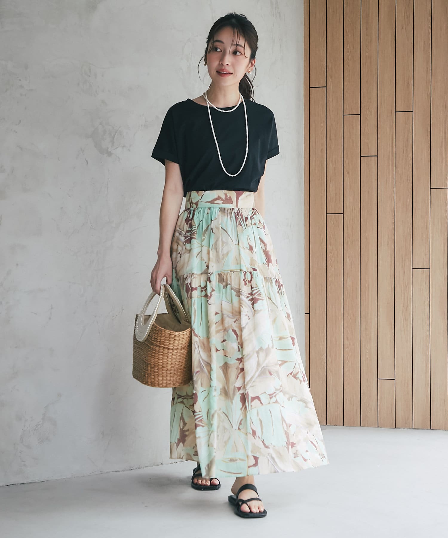シンプルなトップスと合わせるだけでコーディネートが決まります。