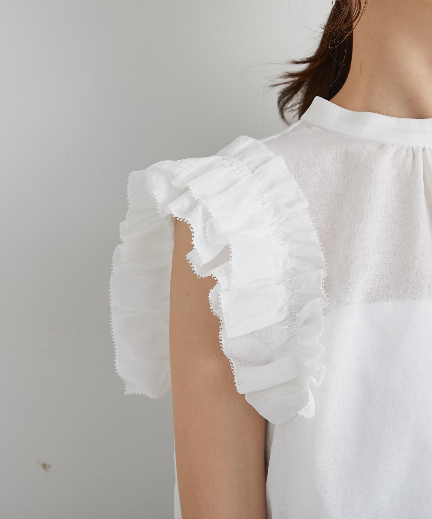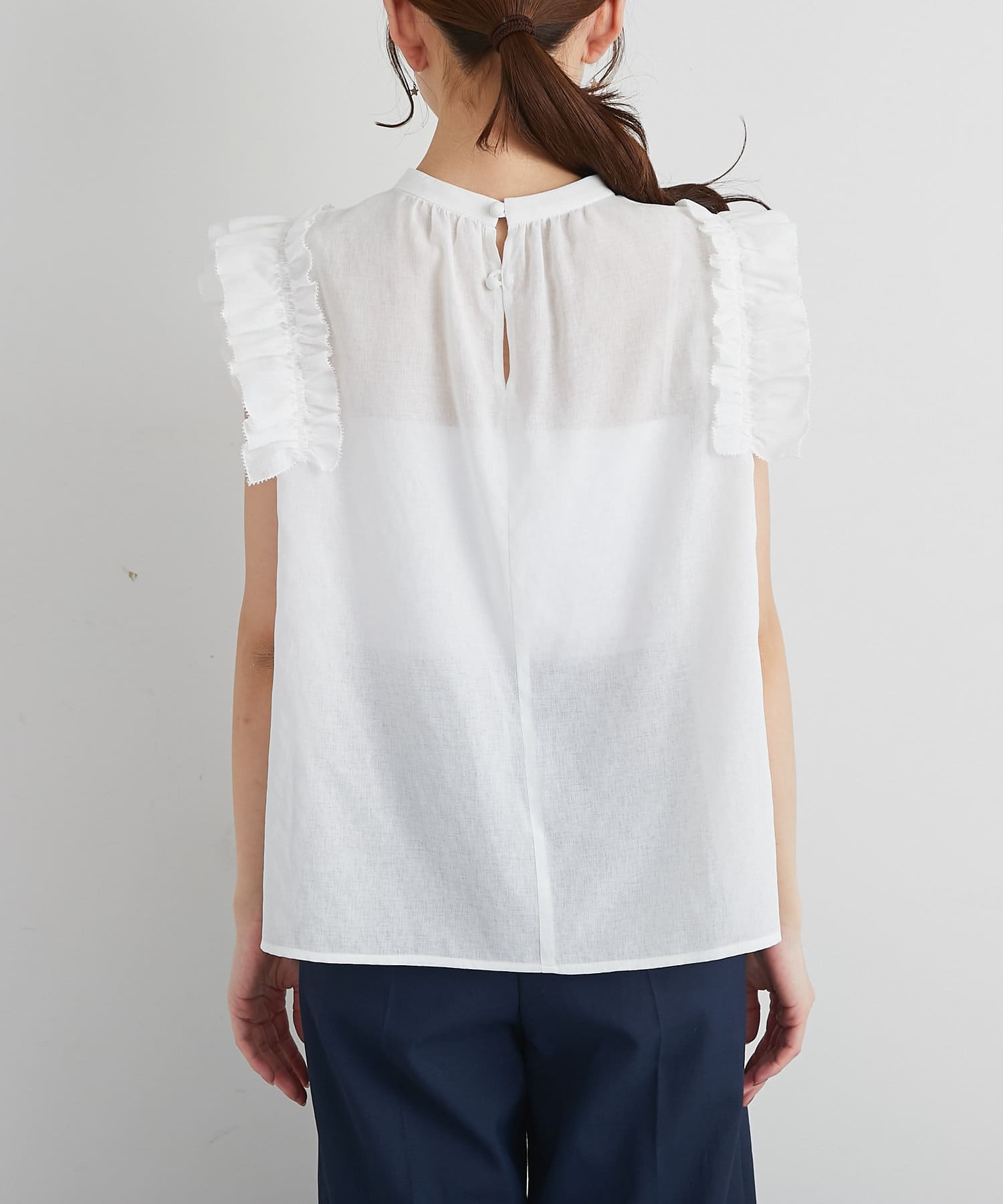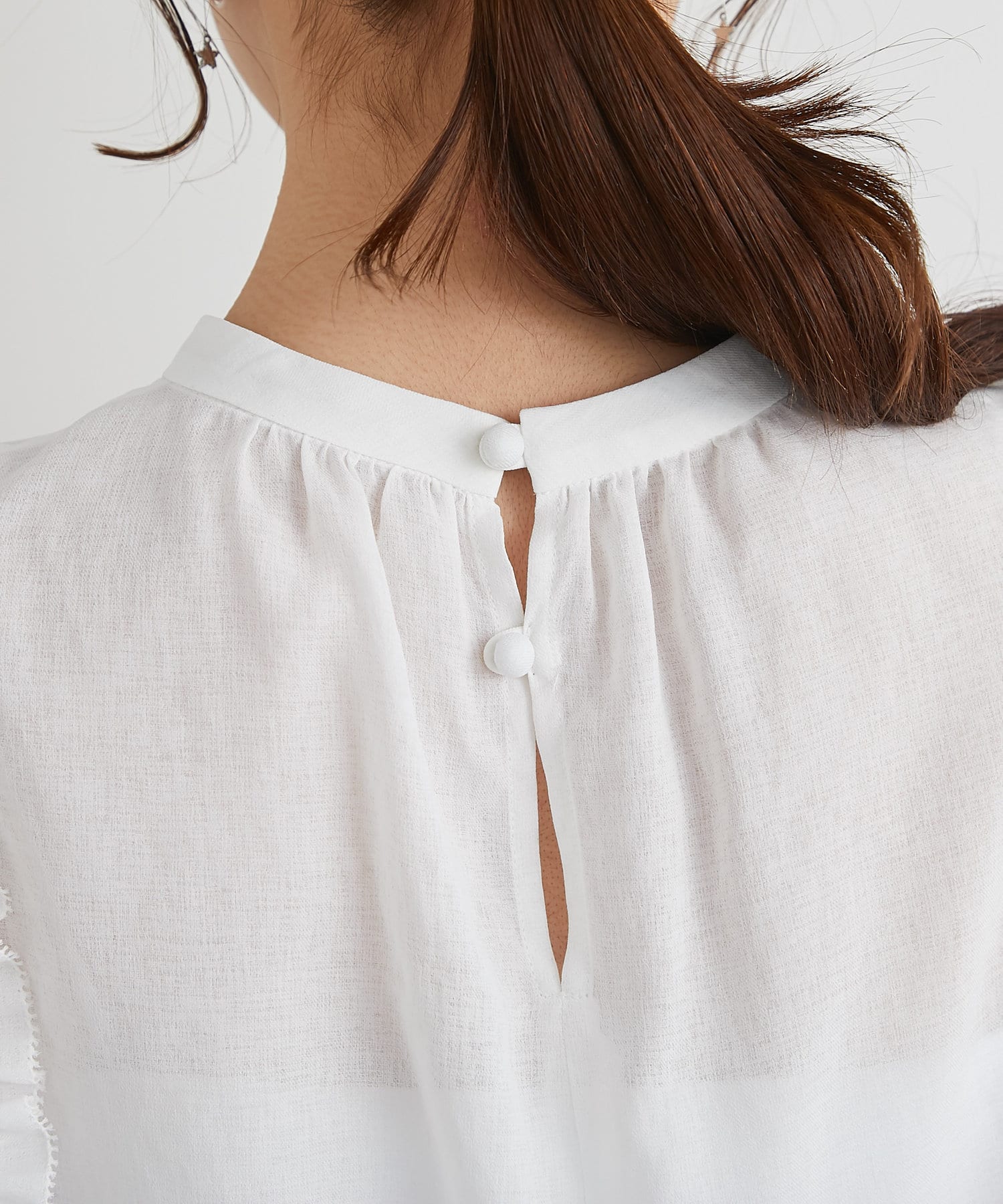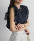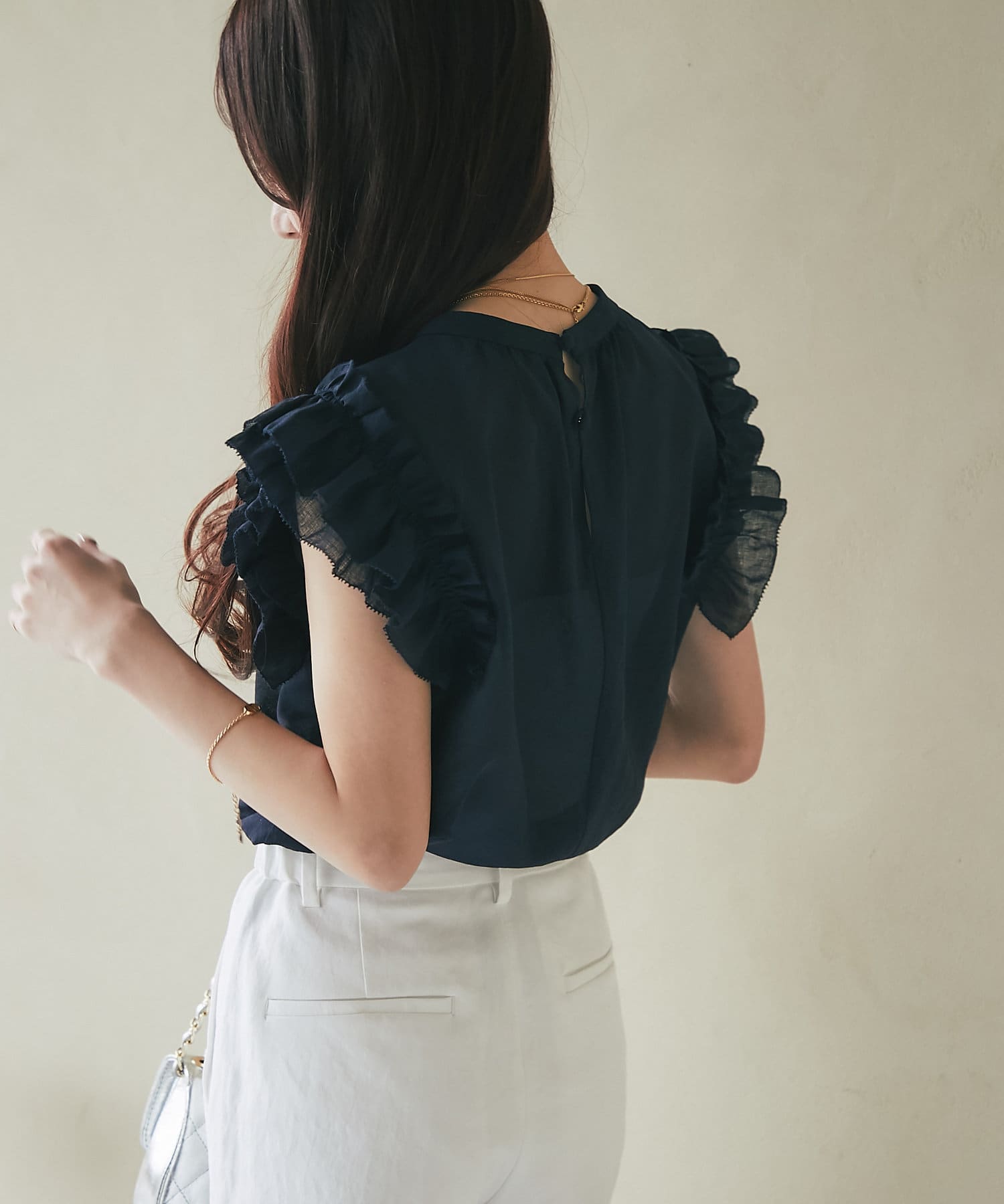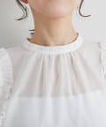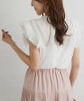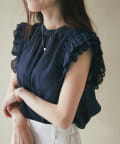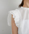 ハリのあるスパンツイルで作っているのでより豪華なフリル使いが印象的なブラウスです。