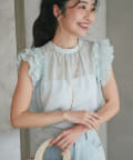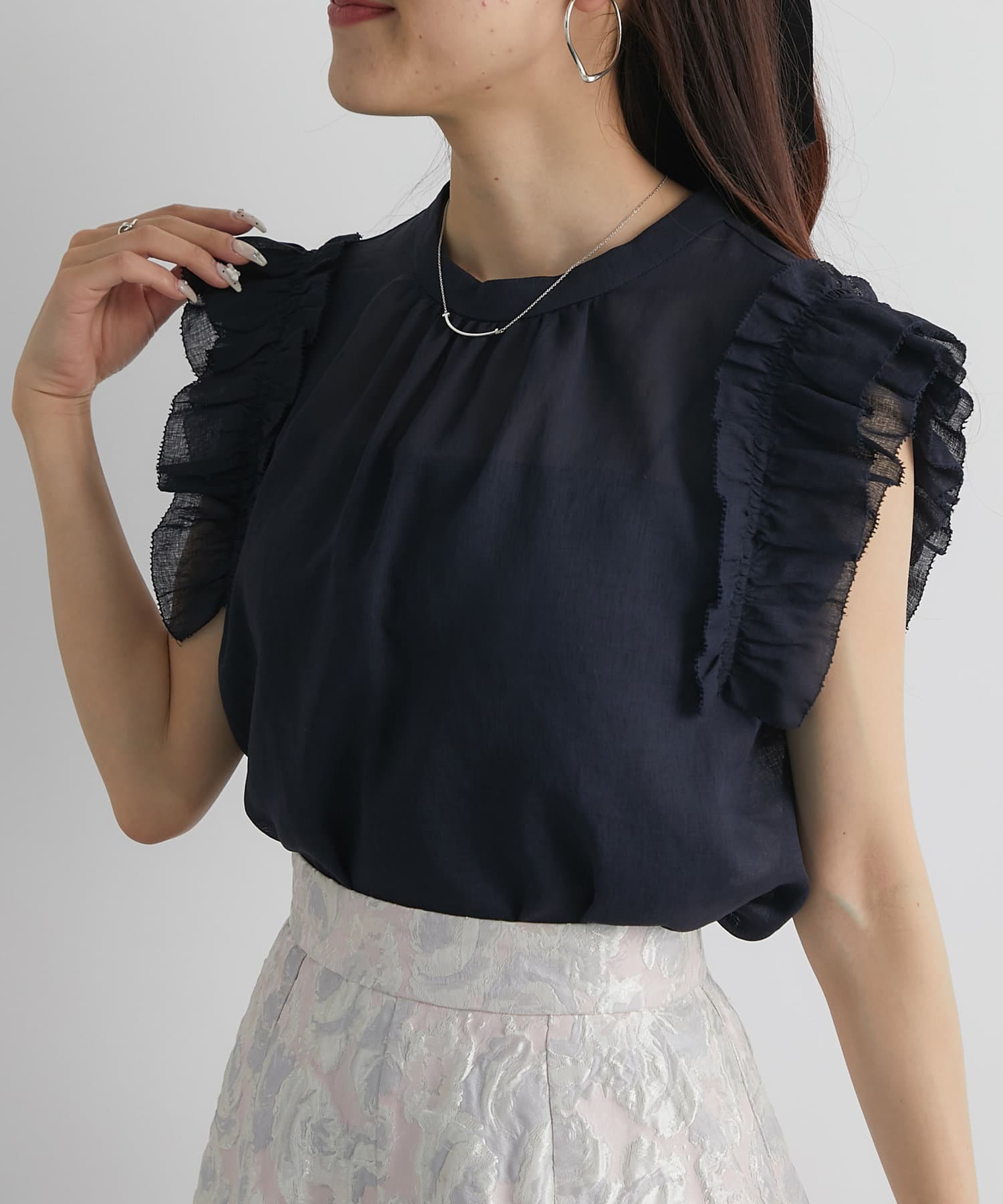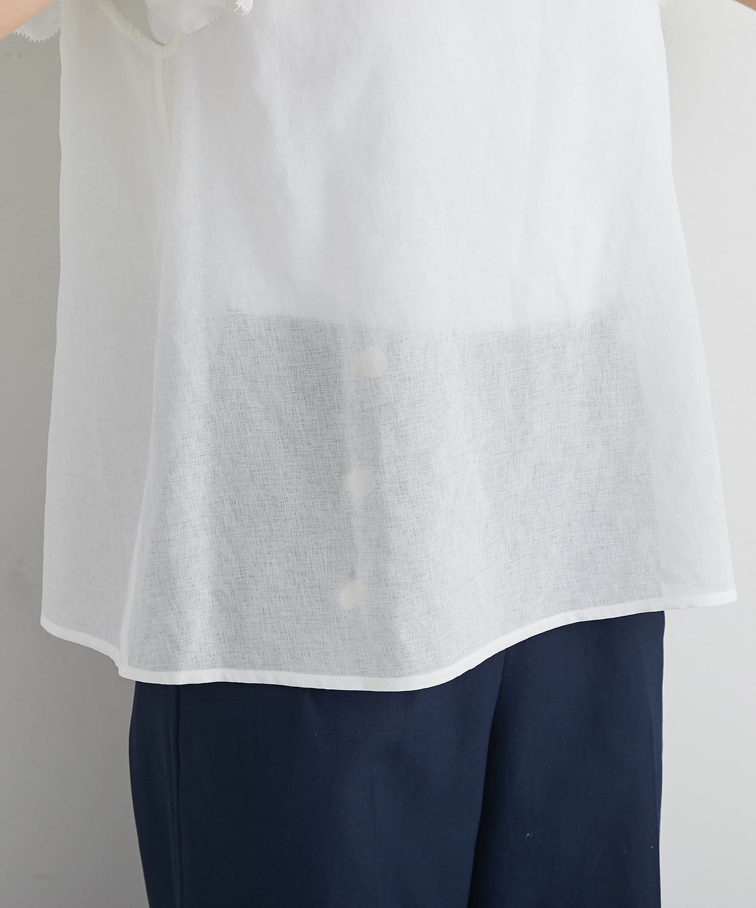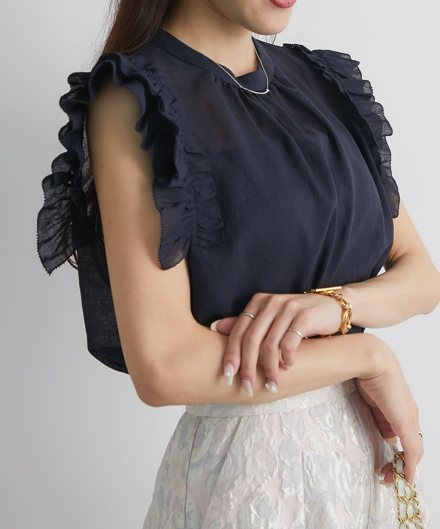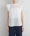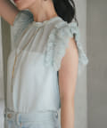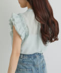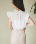 ハリのあるスパンツイルで作っているのでより豪華なフリル使いが印象的なブラウスです。