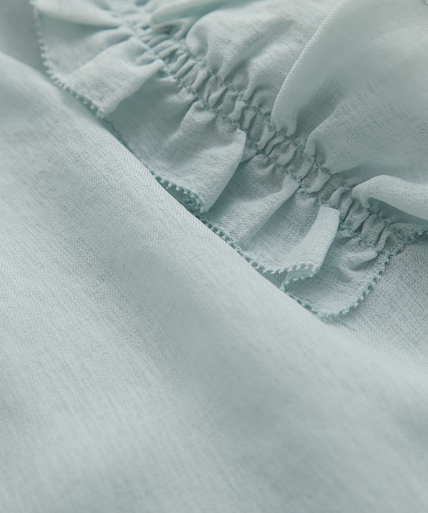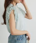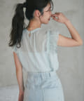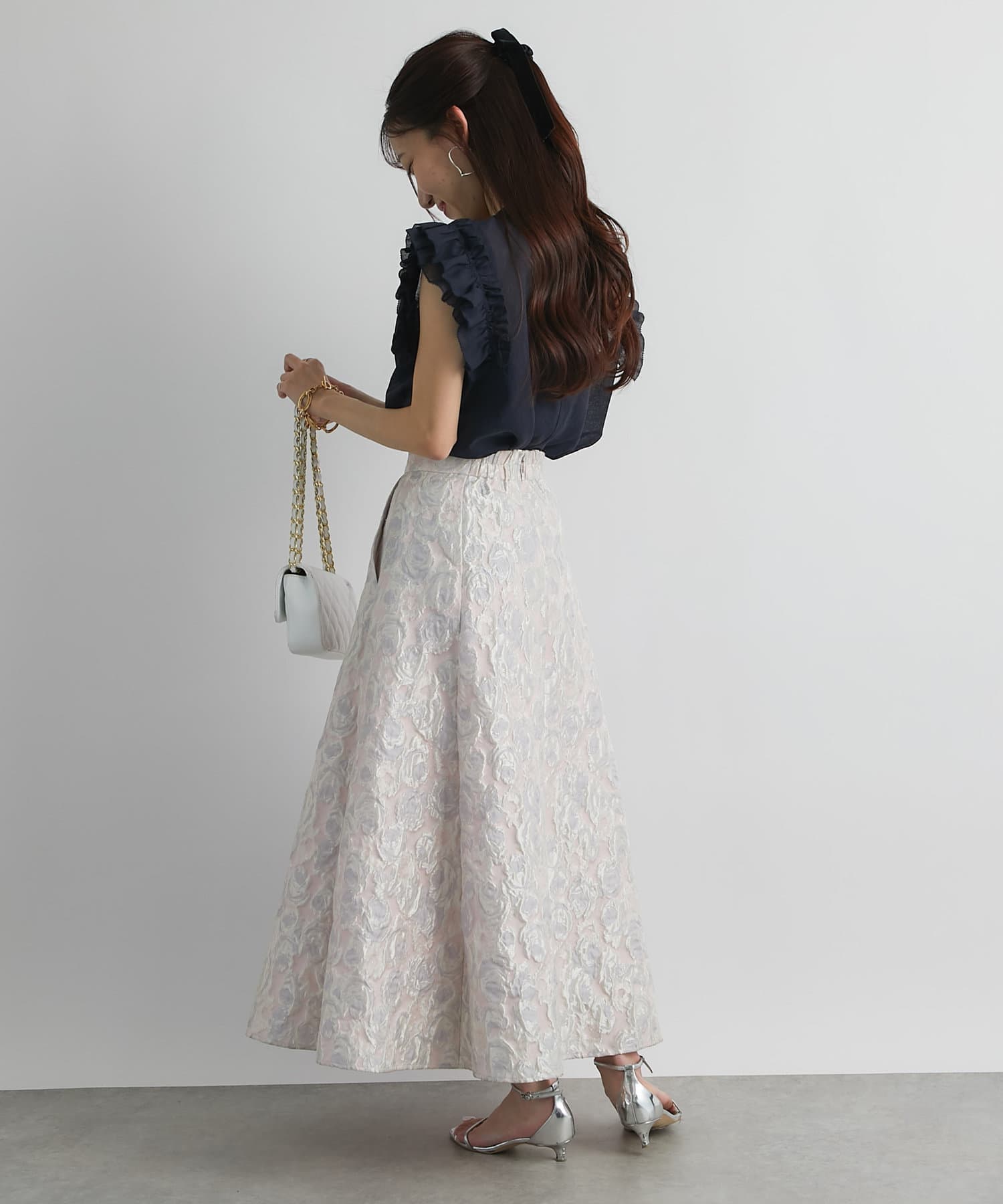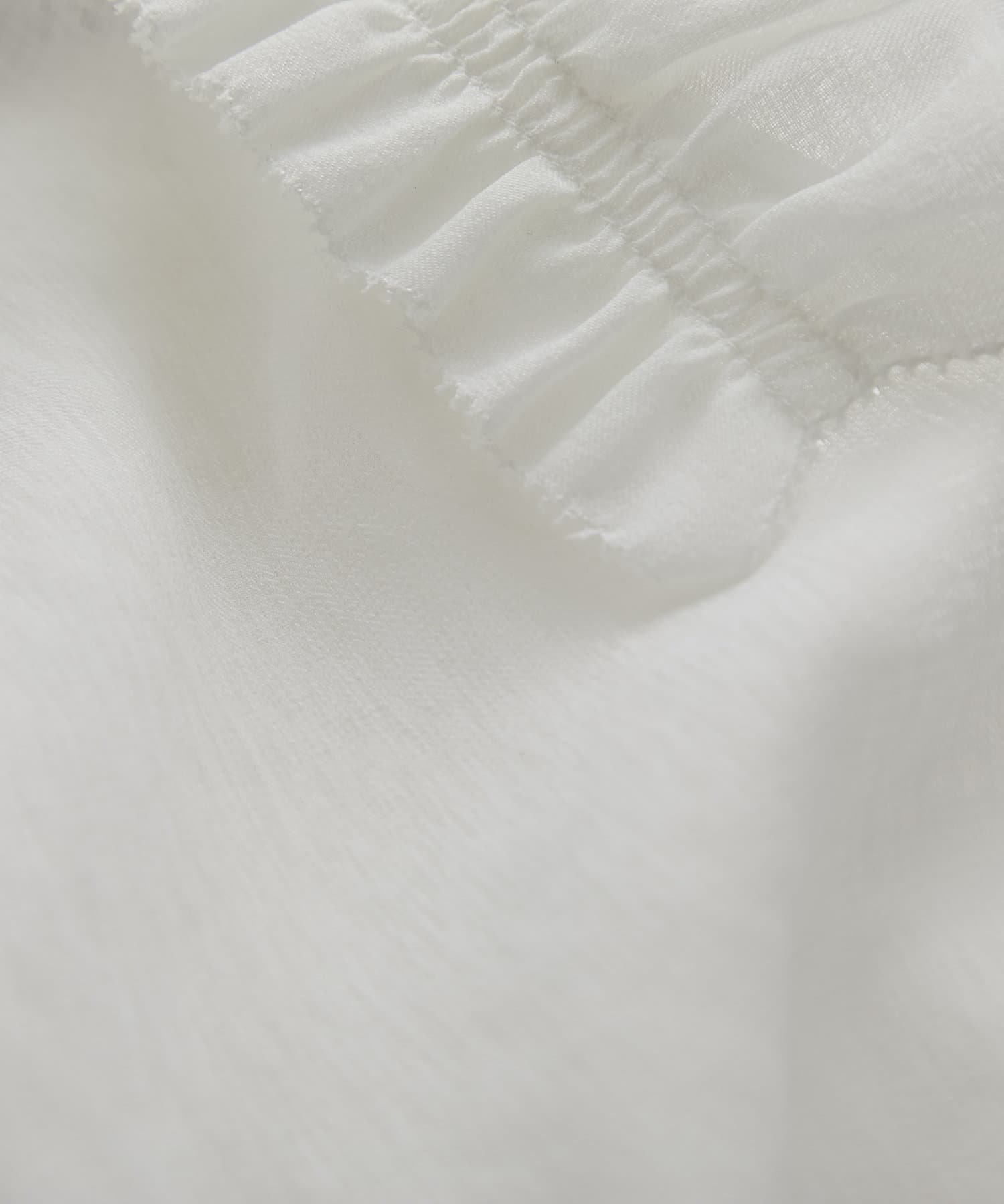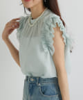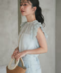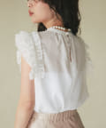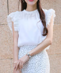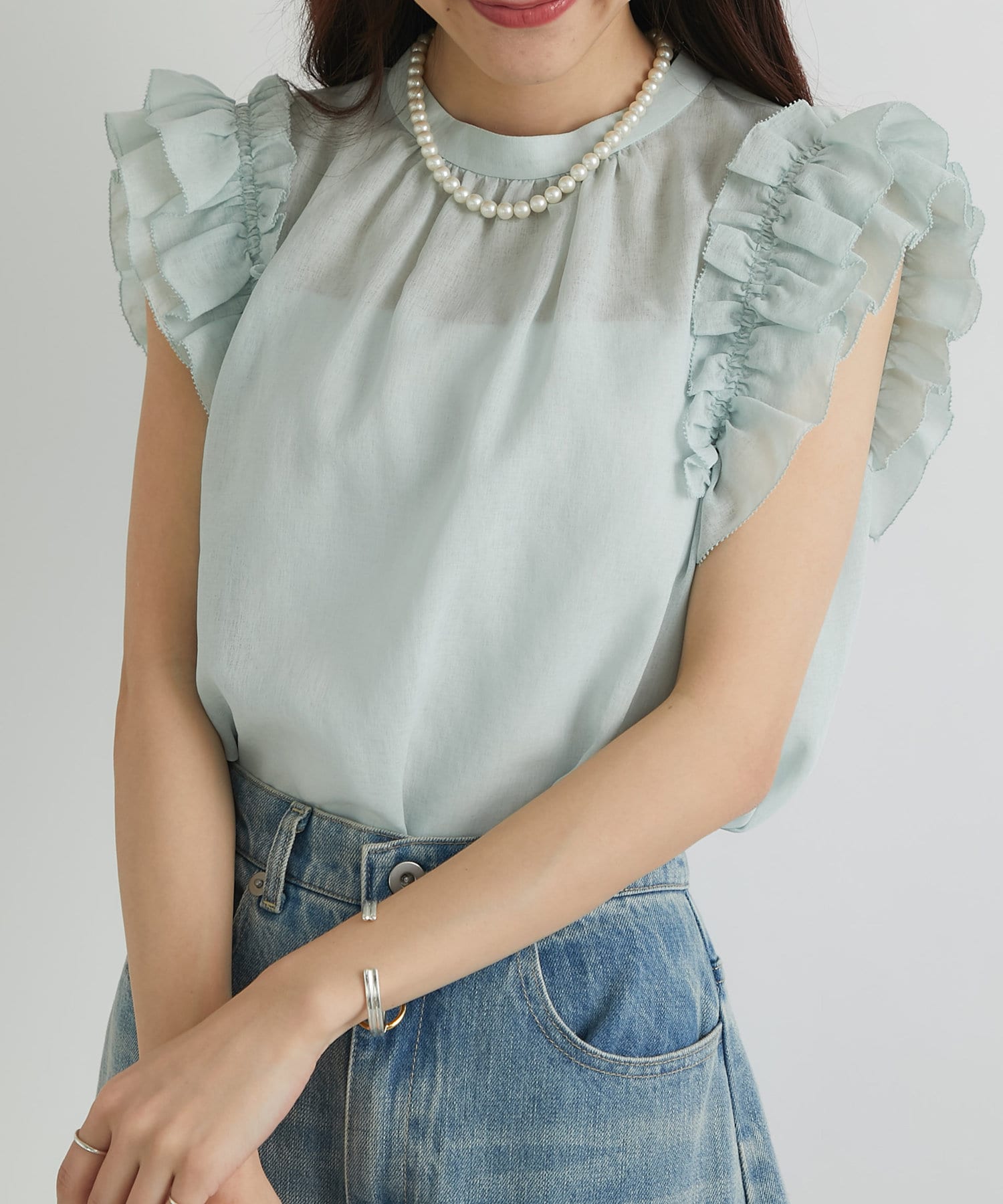 ハリのあるスパンツイルで作っているのでより豪華なフリル使いが印象的なブラウスです。