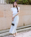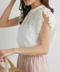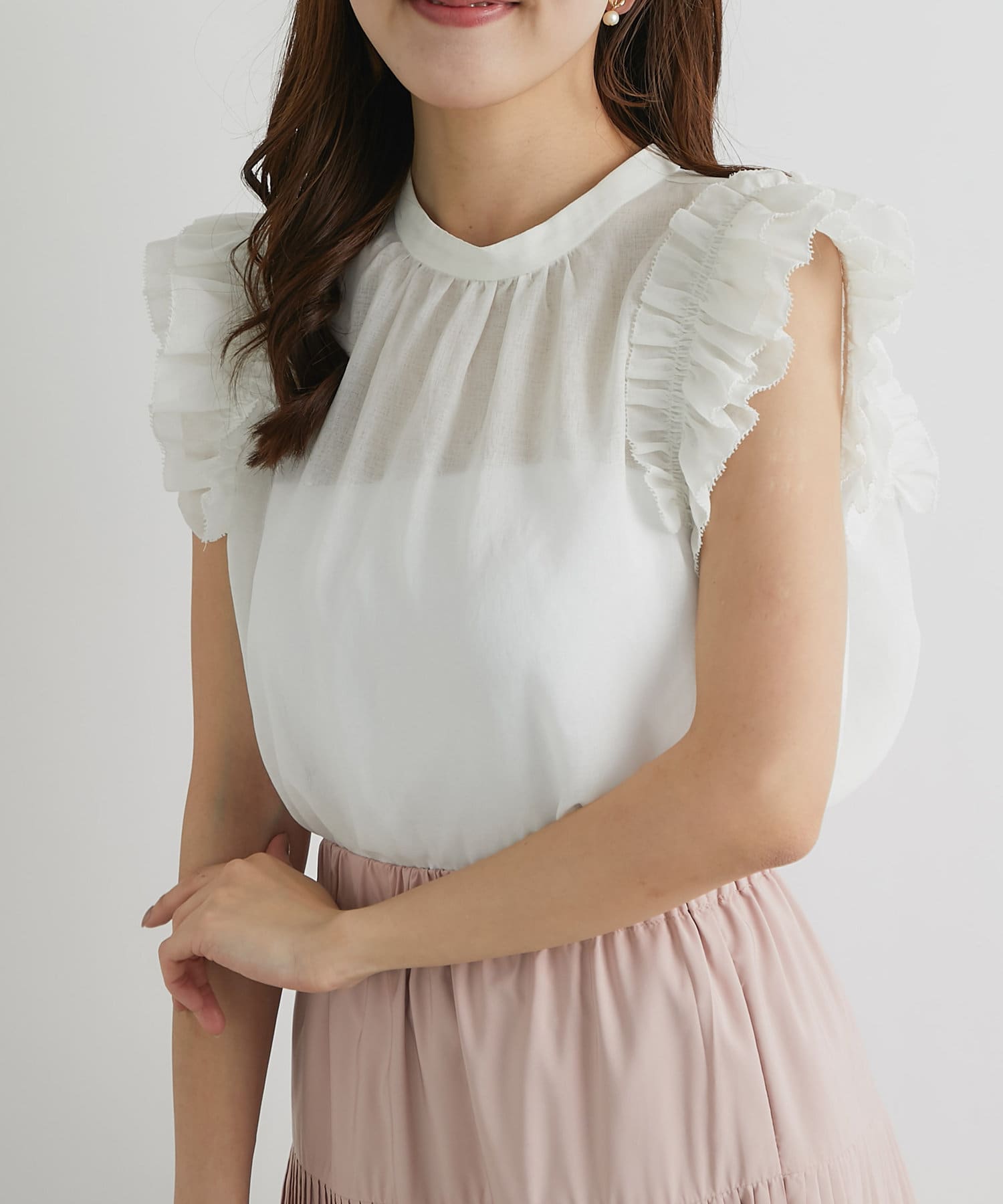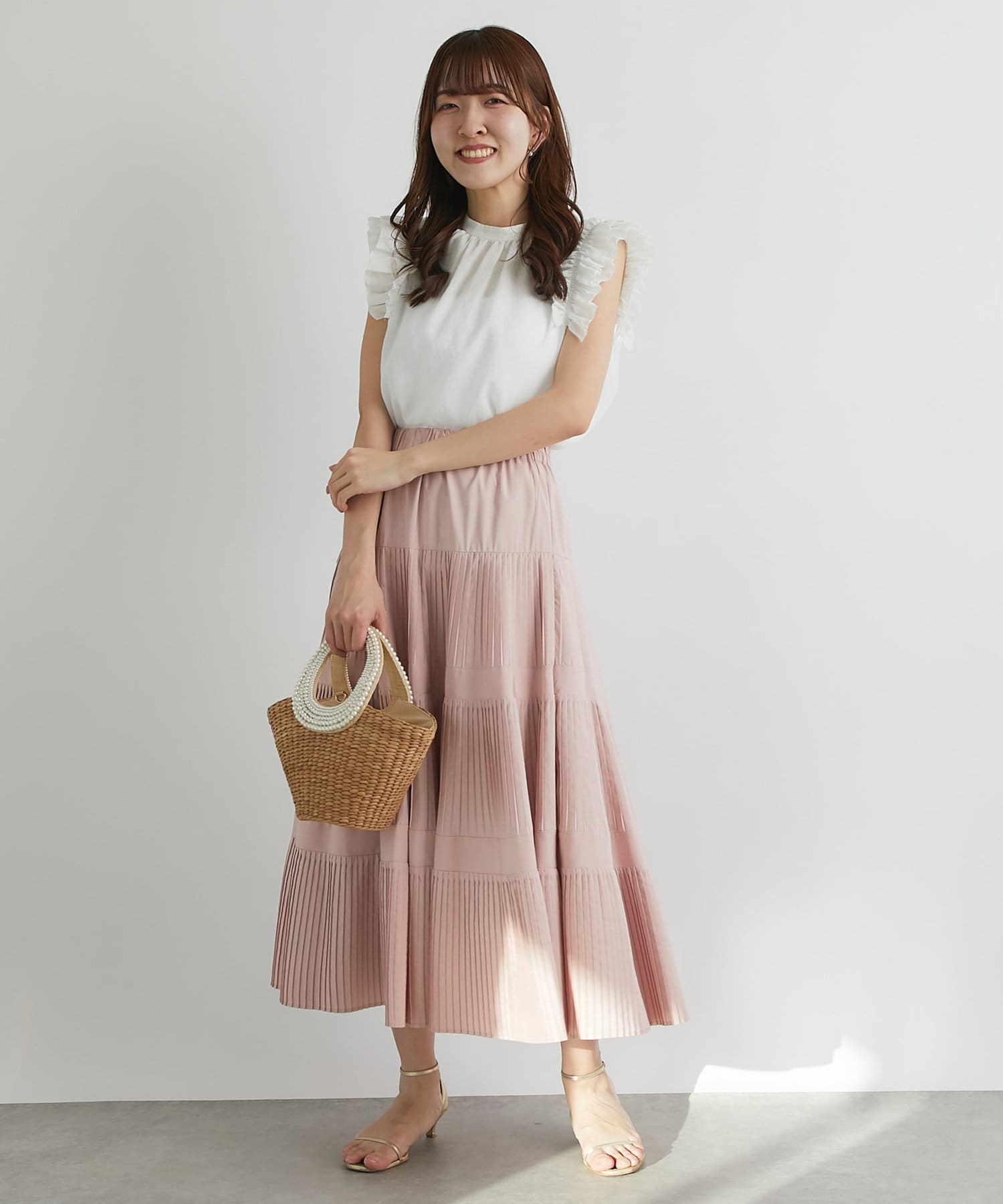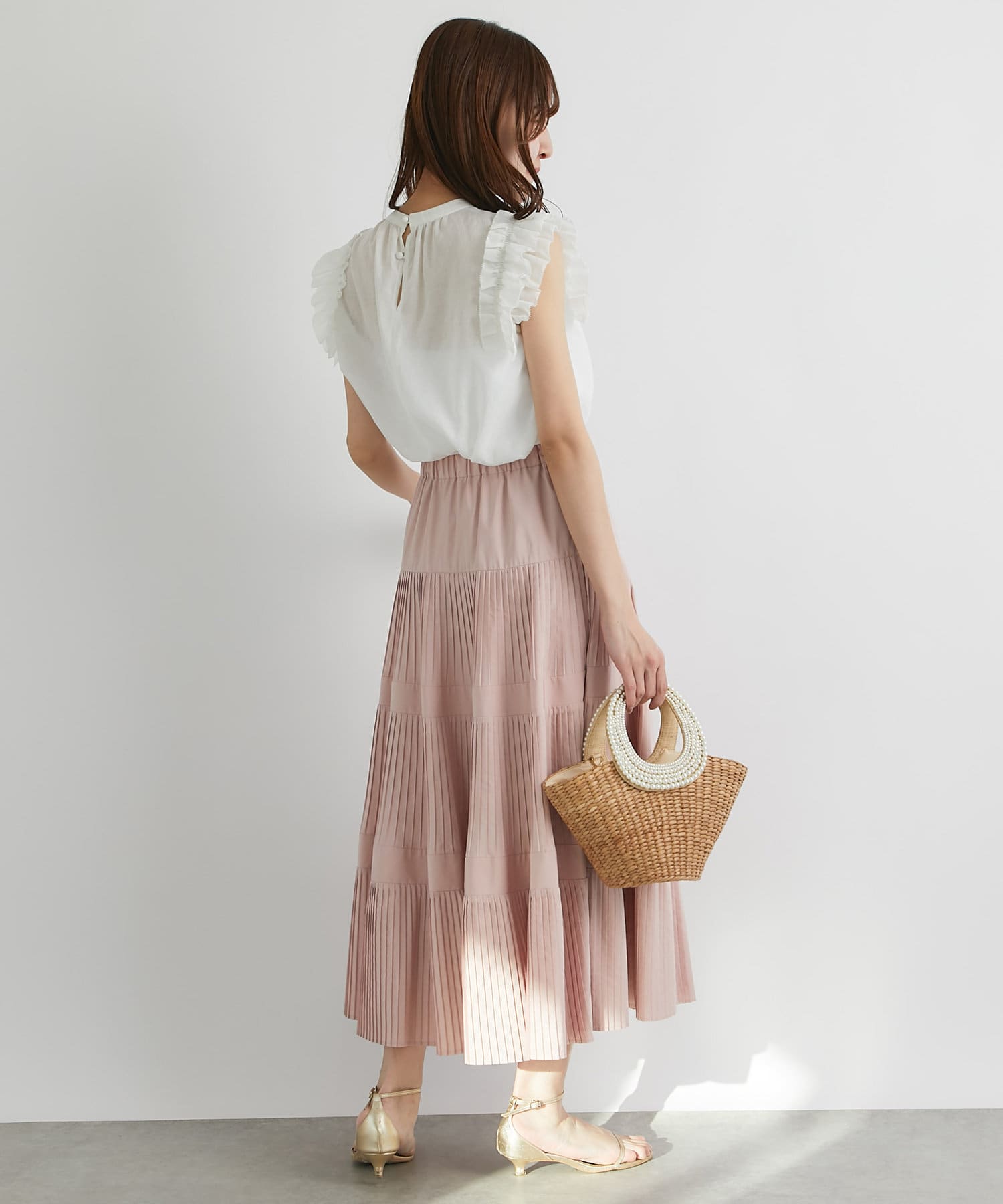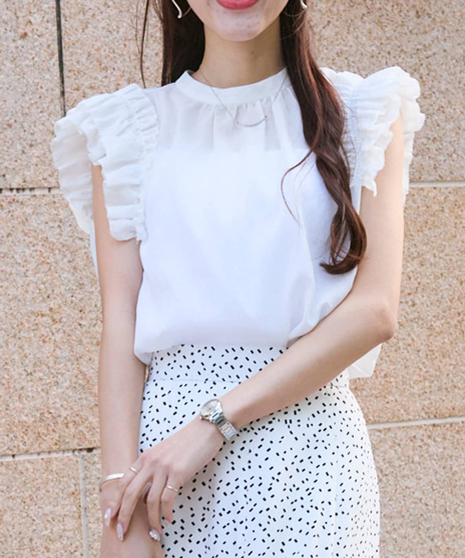 また、襟元の露出をおさえることで、ノースリーブとのバランスもよく、品の良い着こなしが可能です。