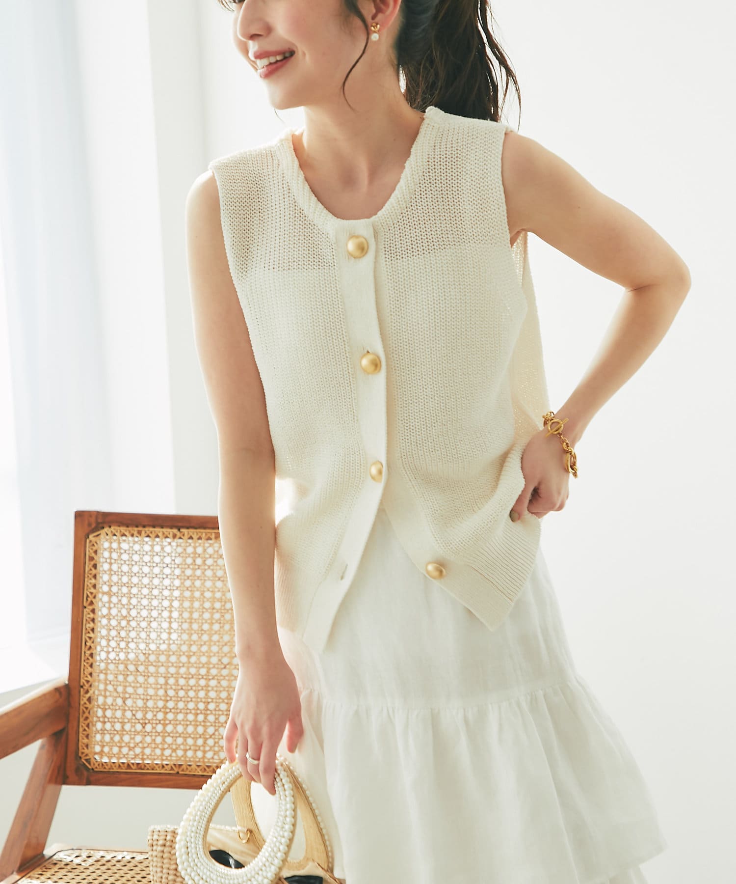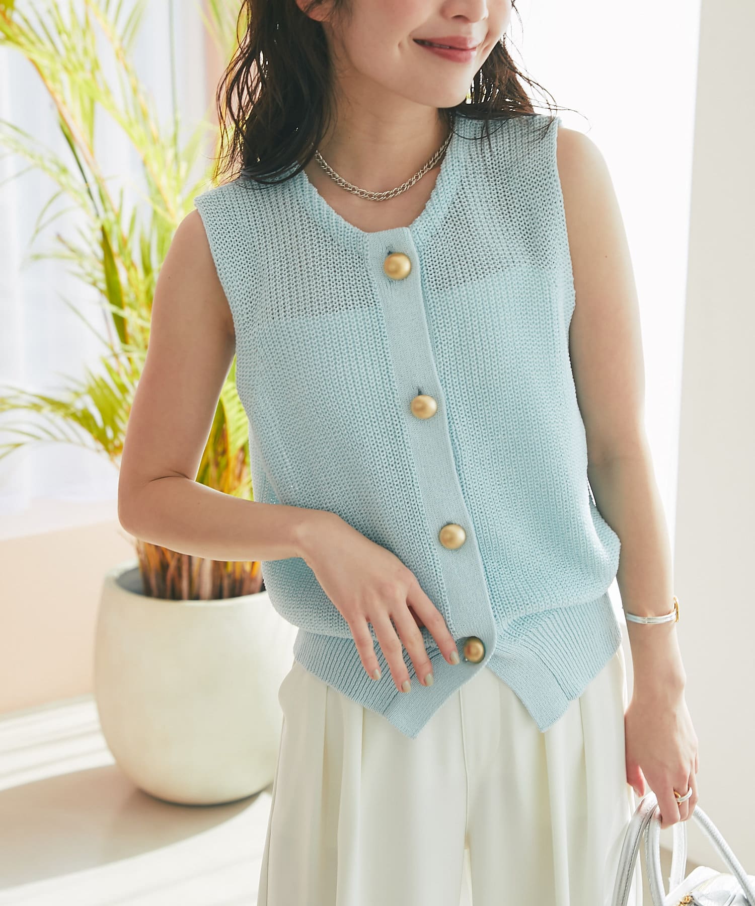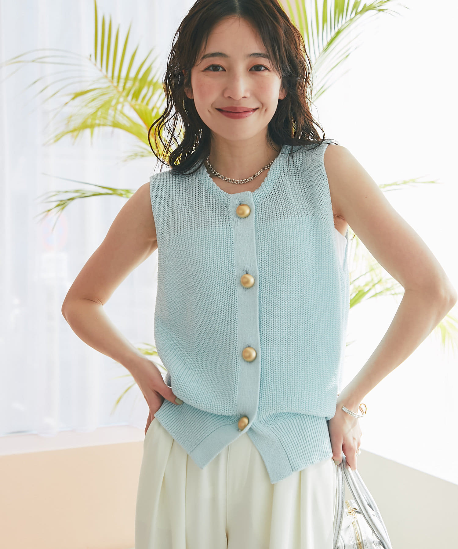 【お上品見え】コロコロボタンギマ前後2WAY片畦ベスト
