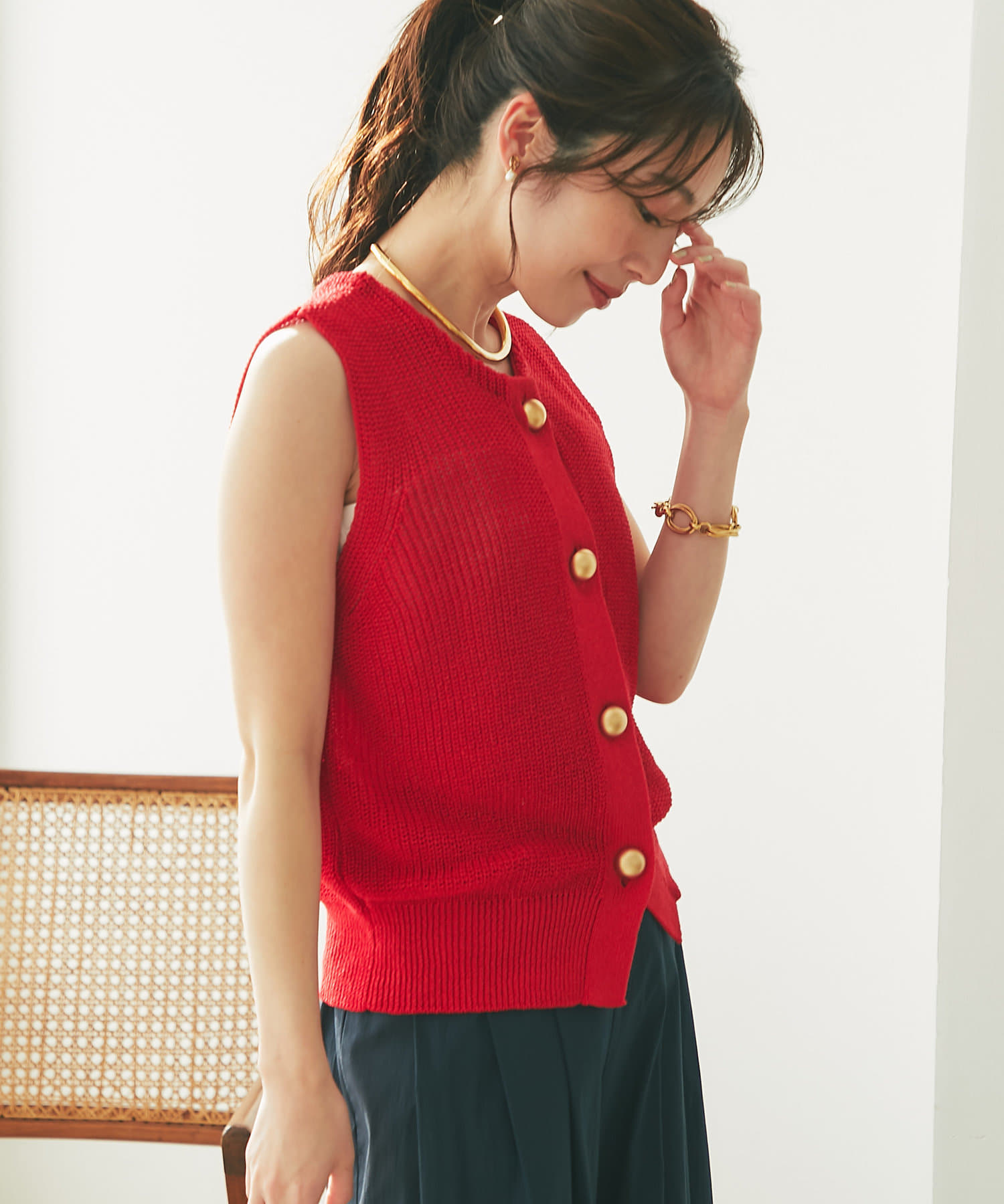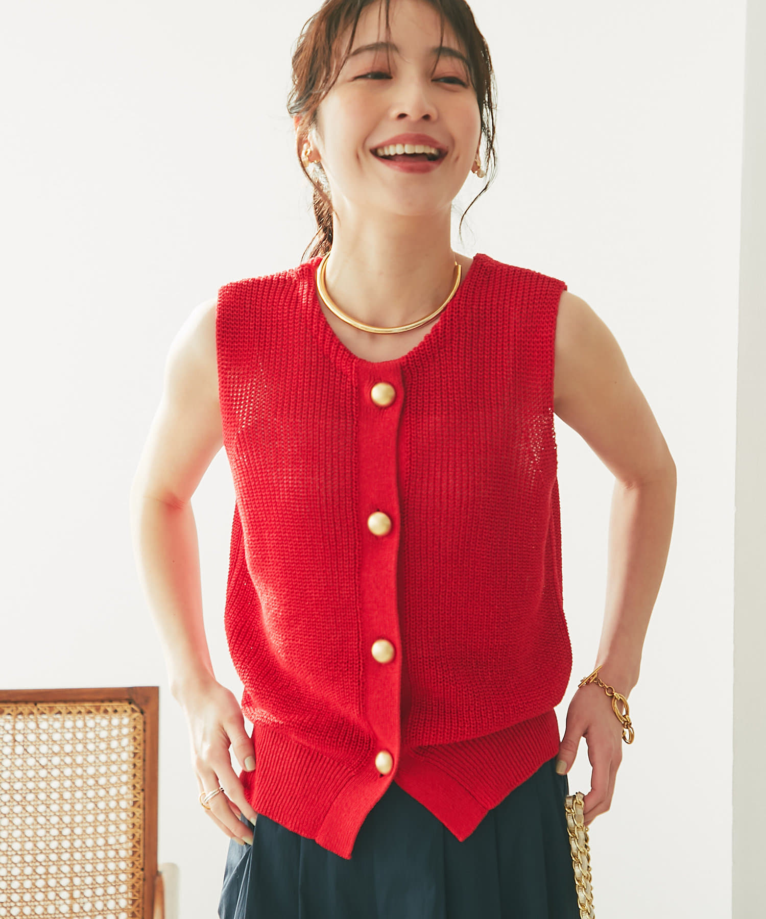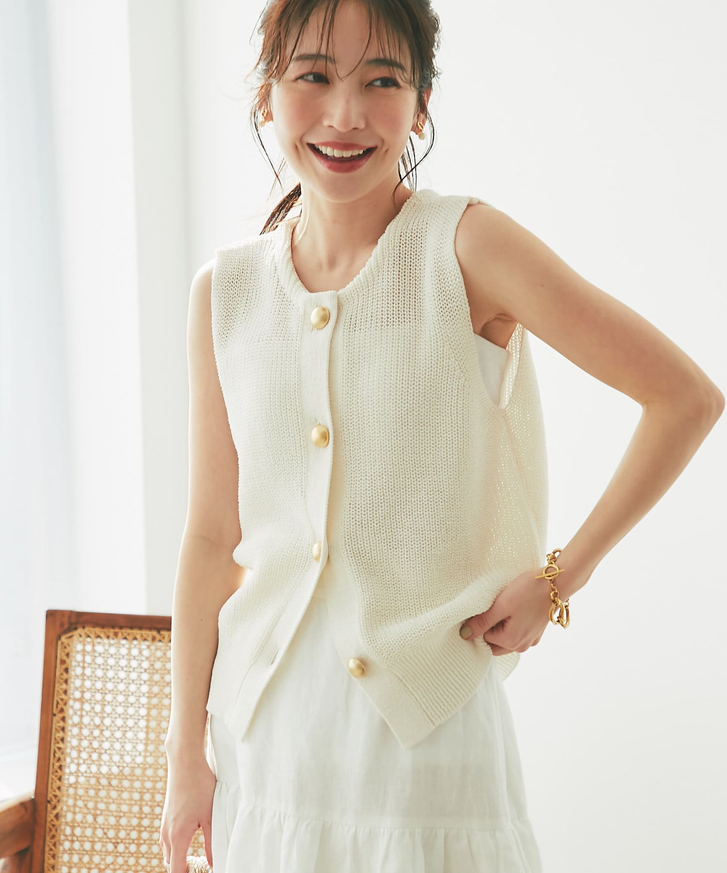 【お上品見え】コロコロボタンギマ前後2WAY片畦ベスト