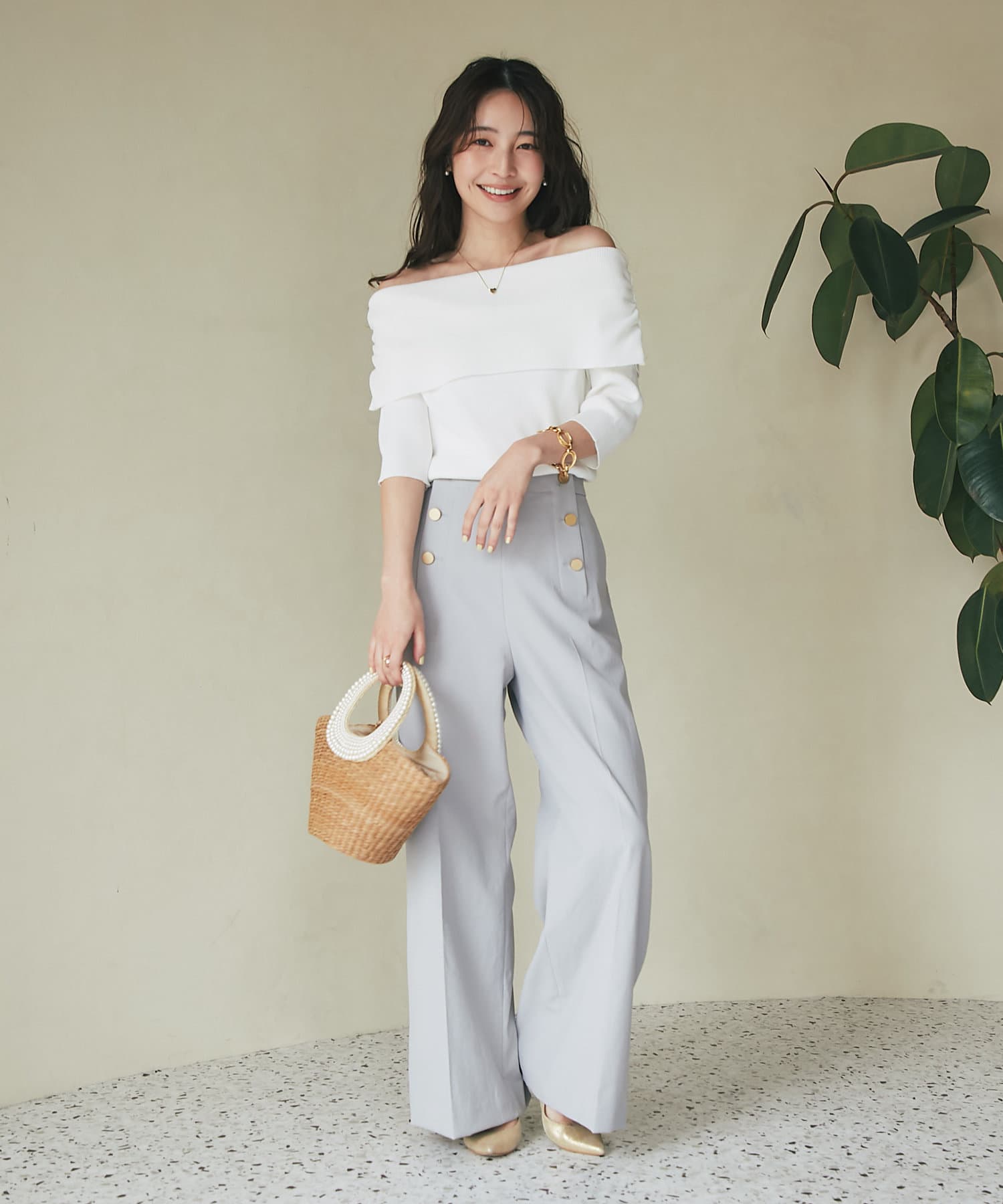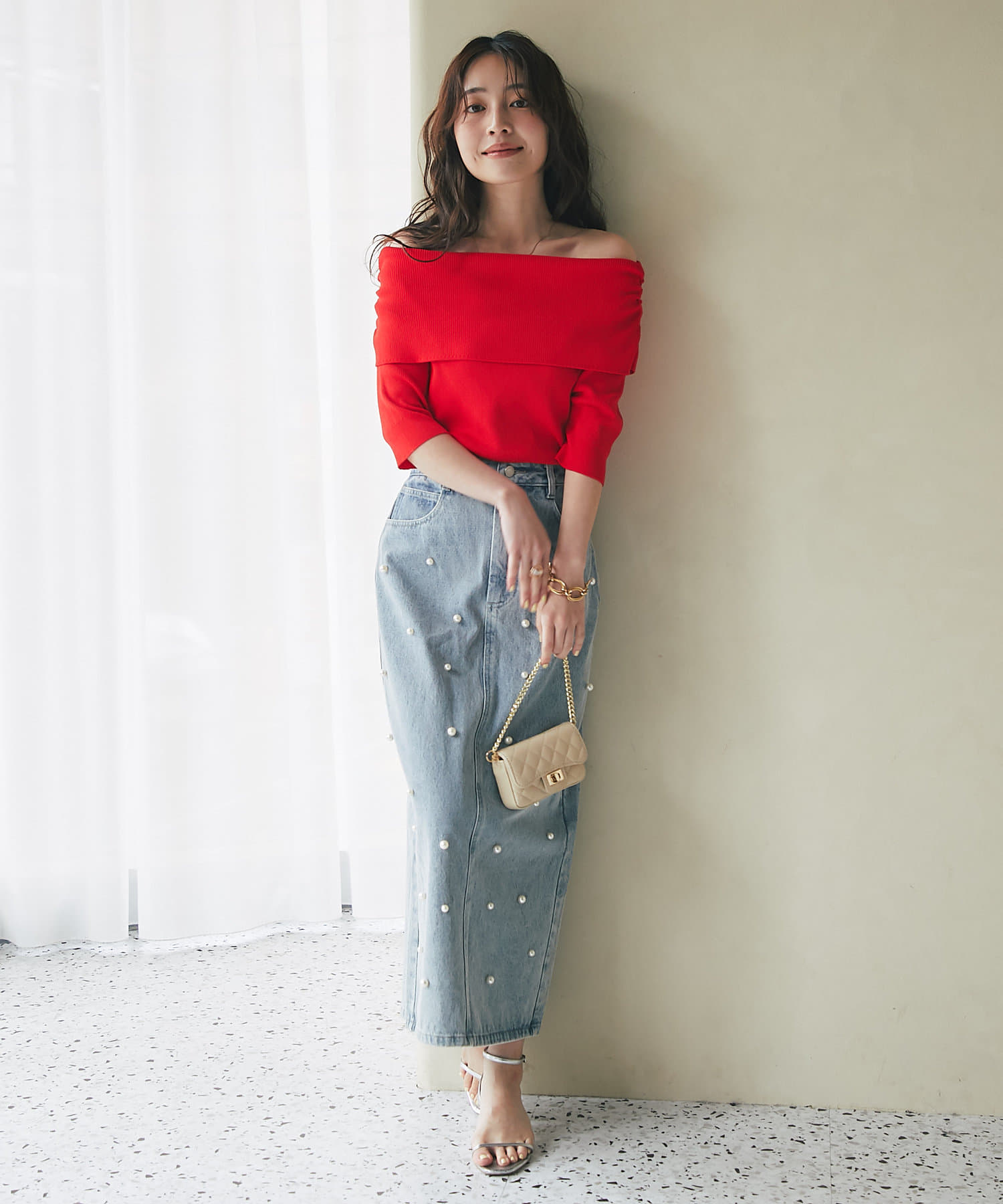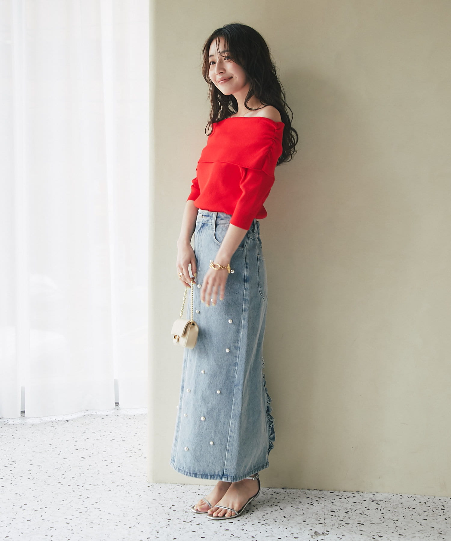 スカートなど華やかなボトム合わせに使いやすいアイテムです。