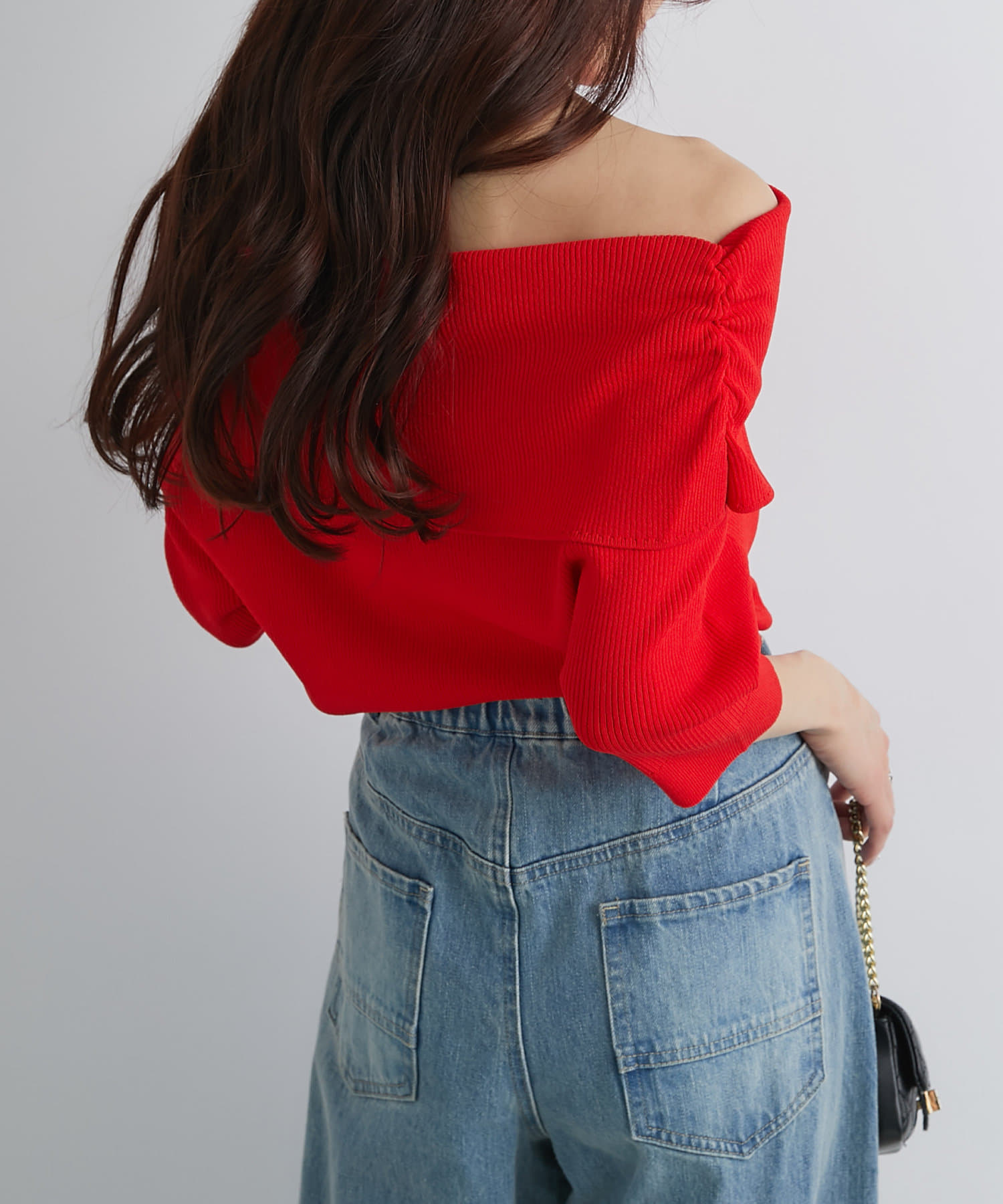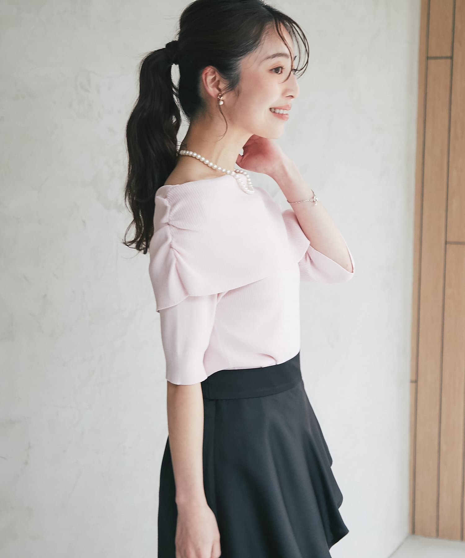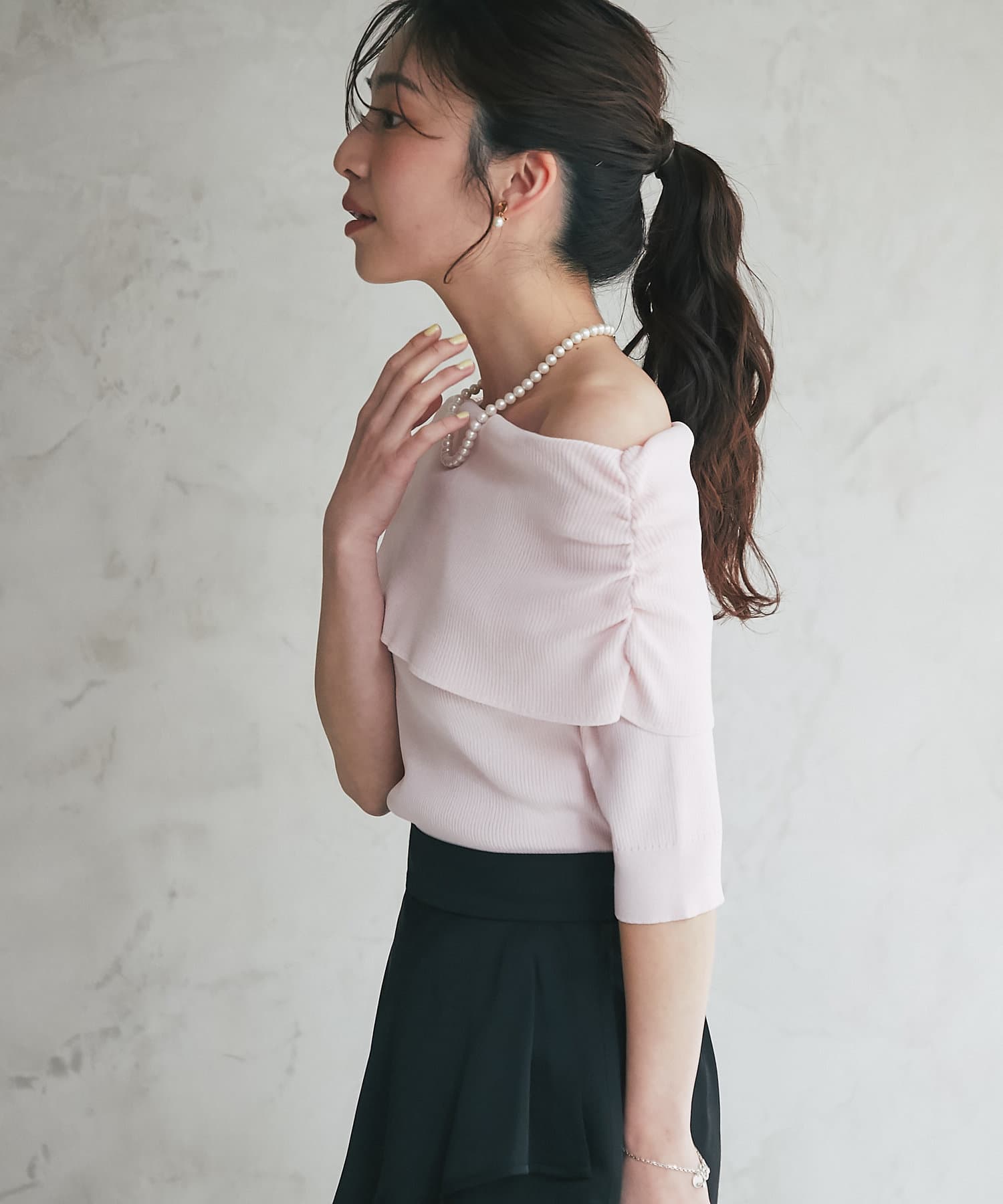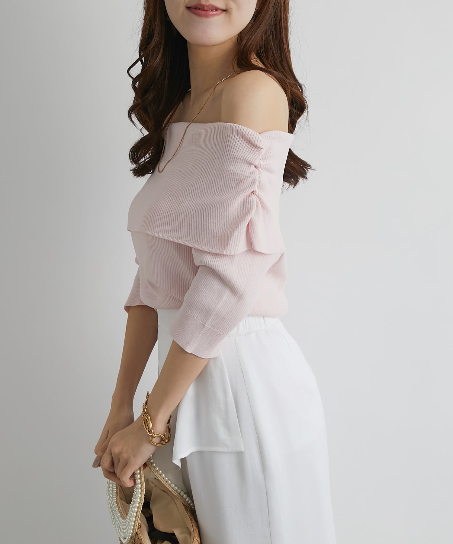 ・クールタッチUVオフショルラッフルリブニット(LBZ1052105A0005)