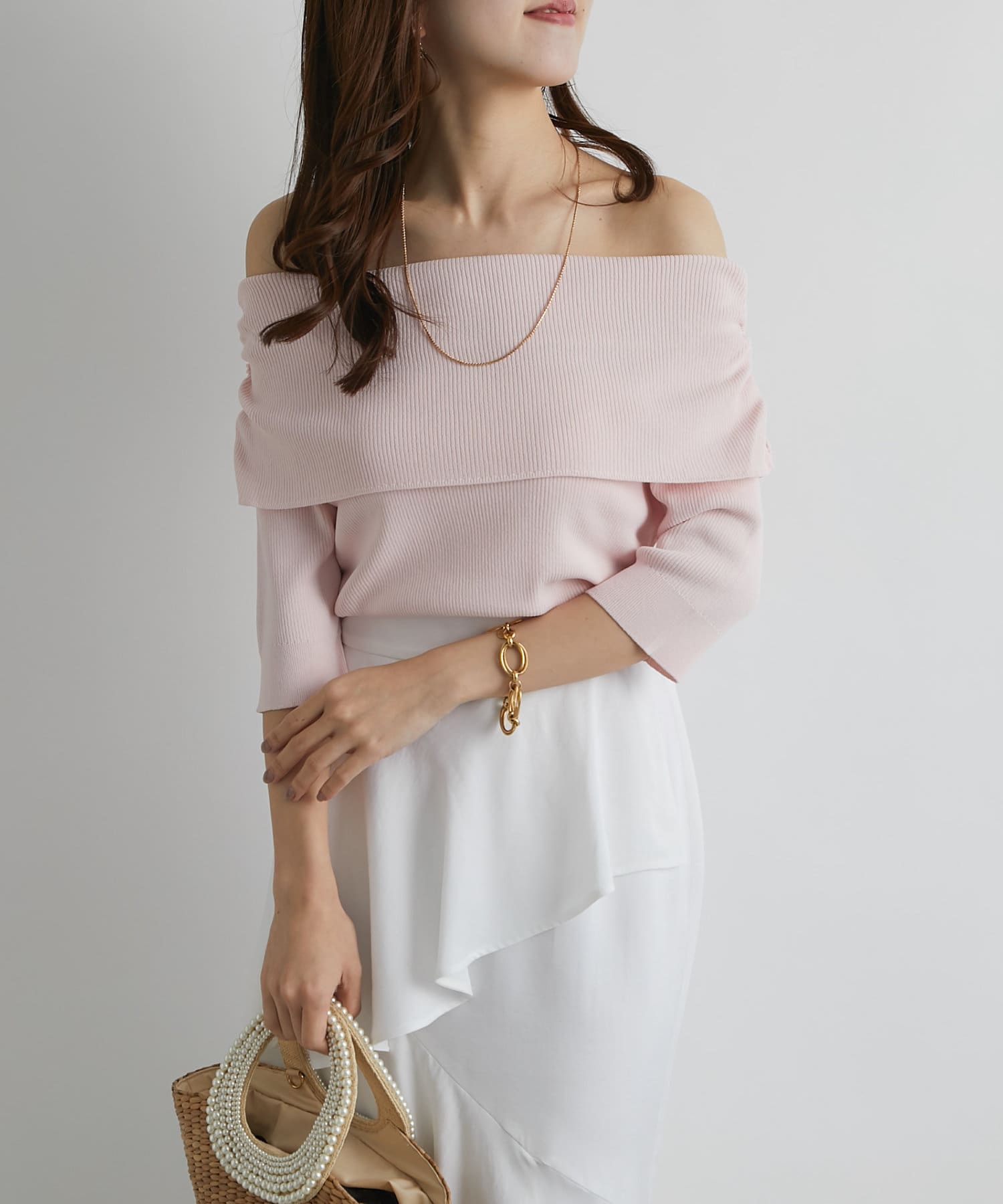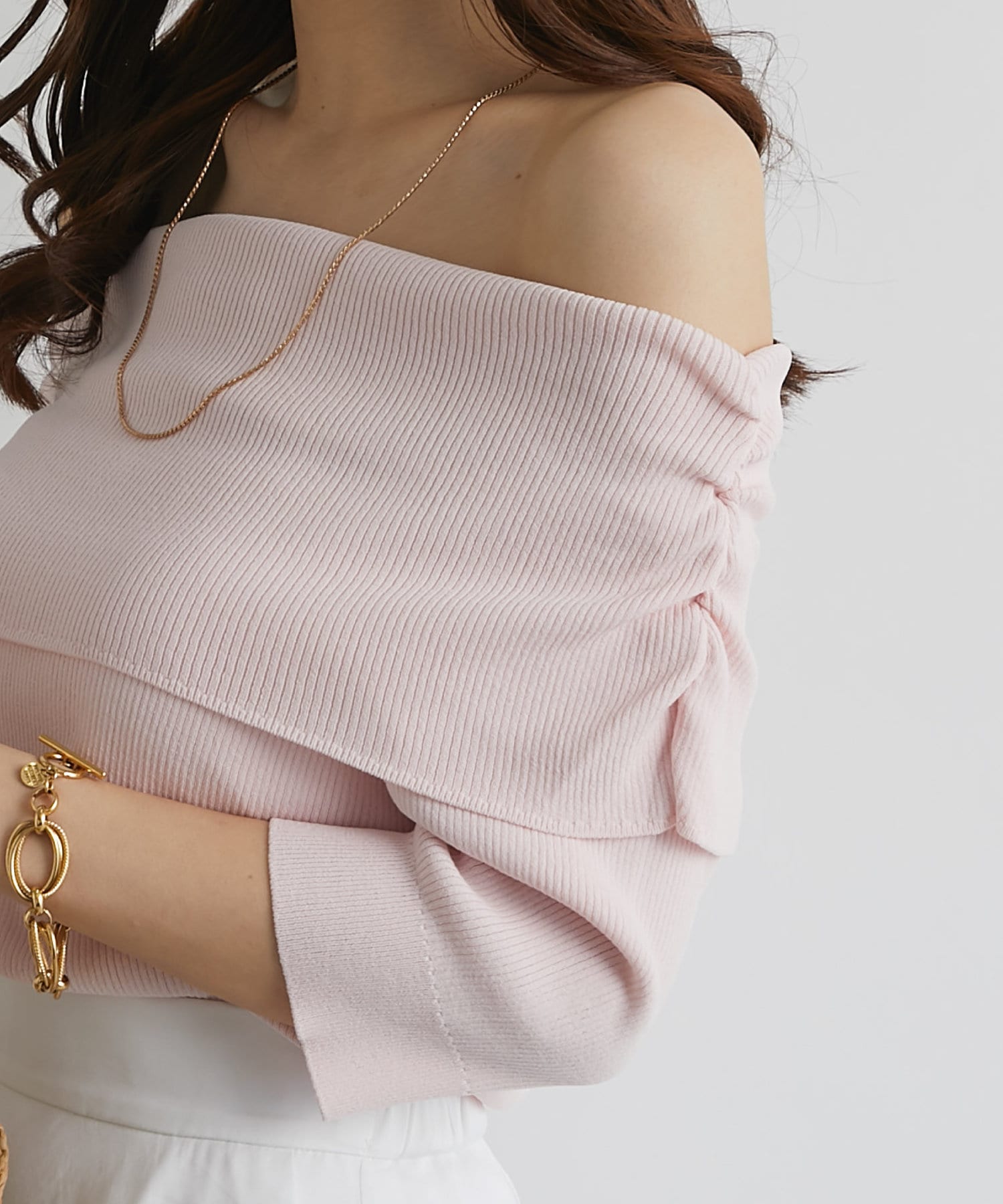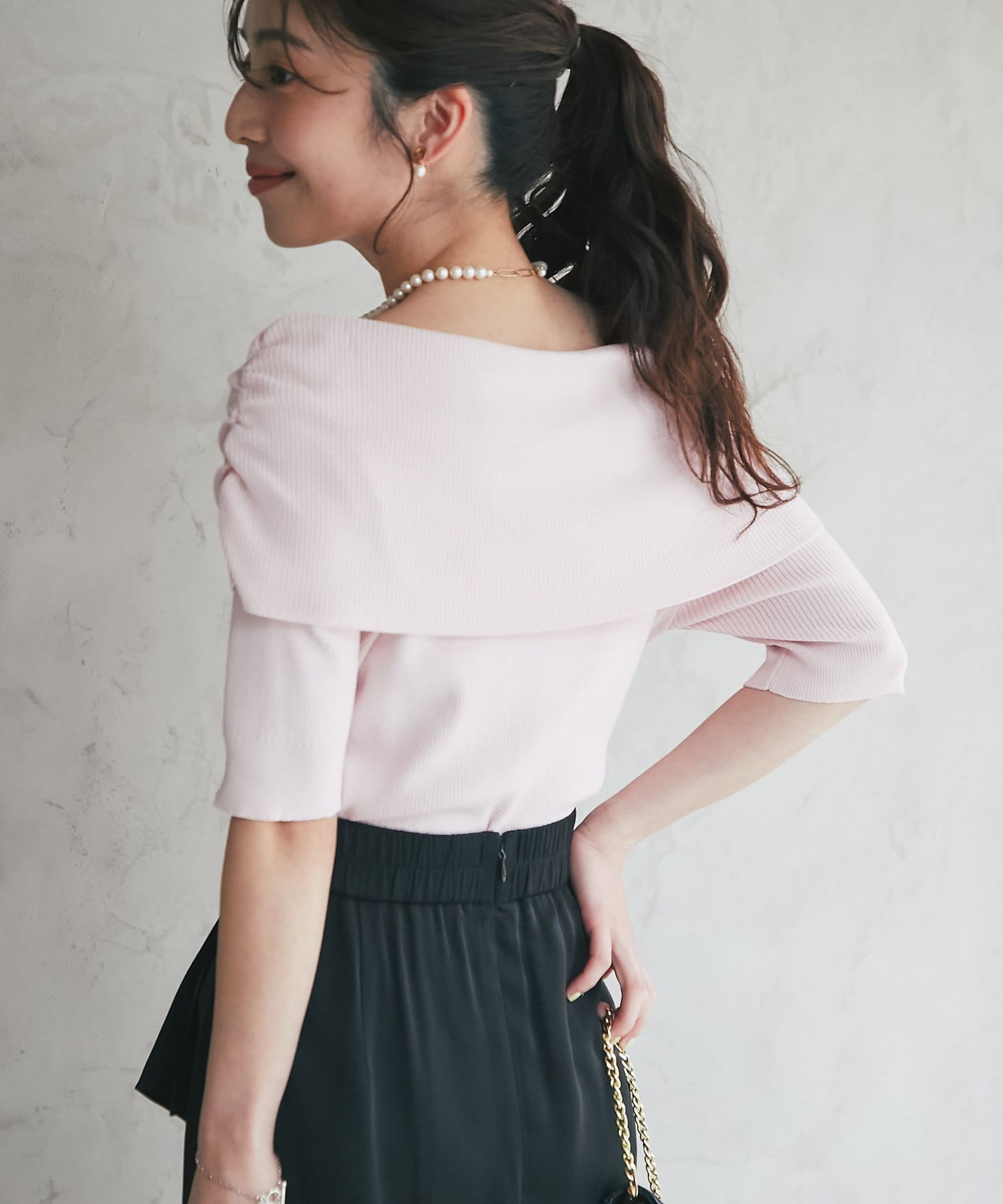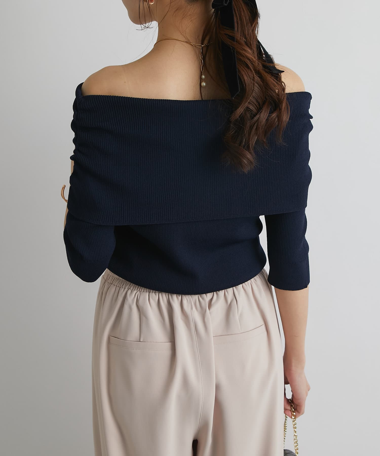 ・クールタッチUVオフショルラッフルリブニット(LBZ1052105A0005)
