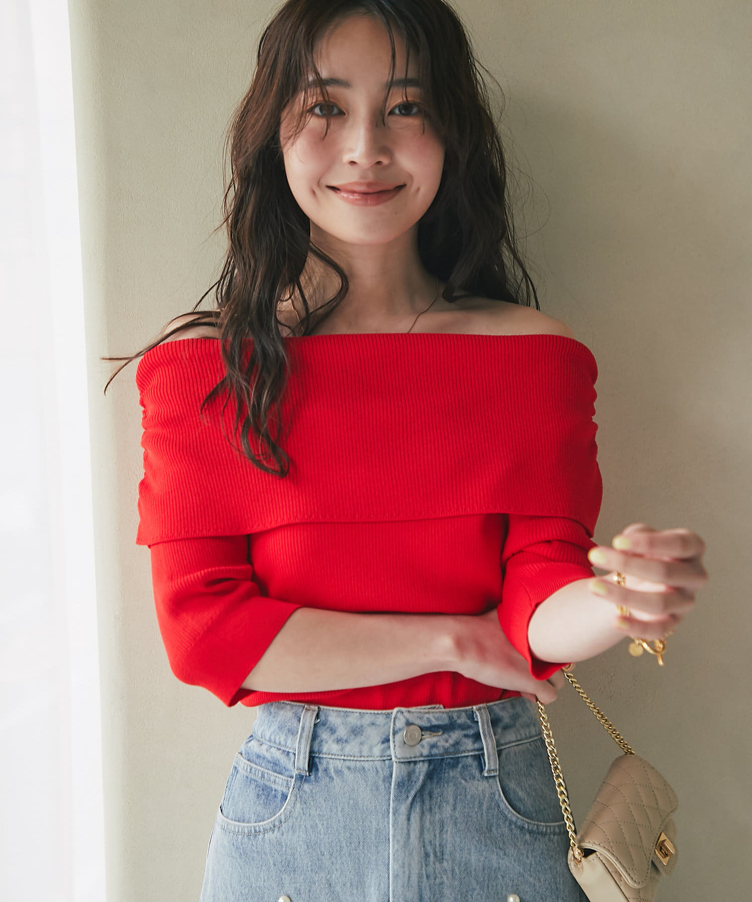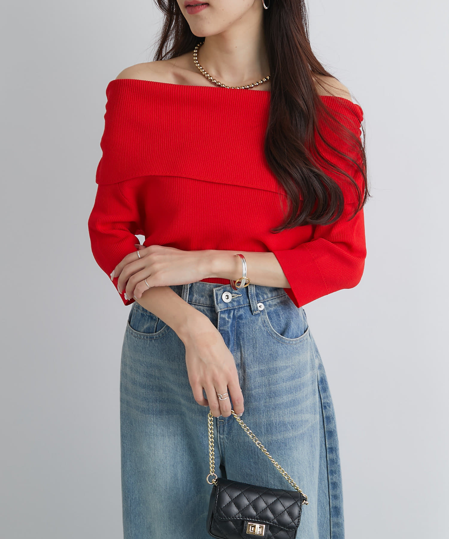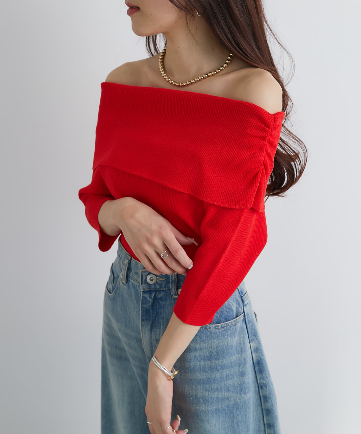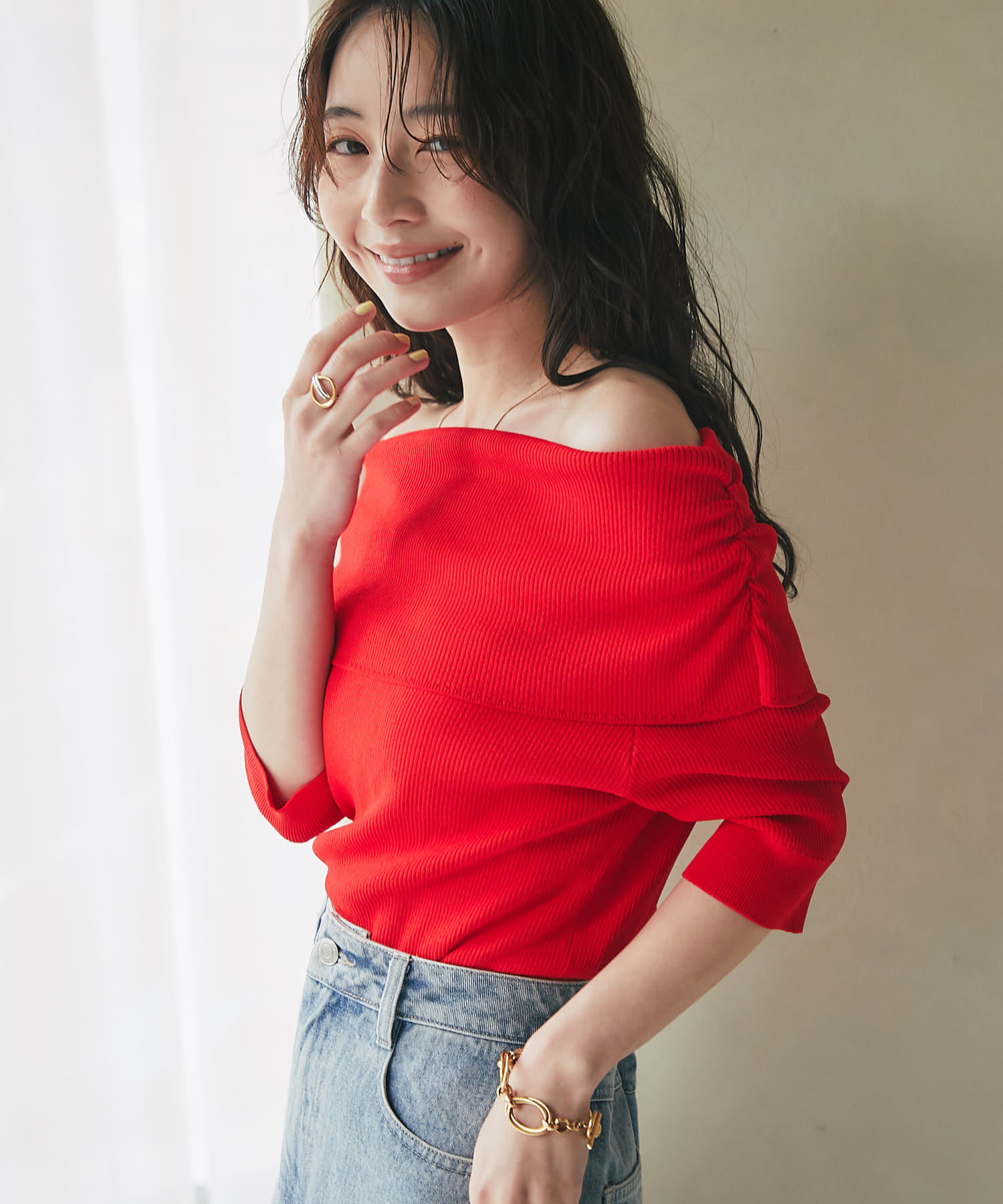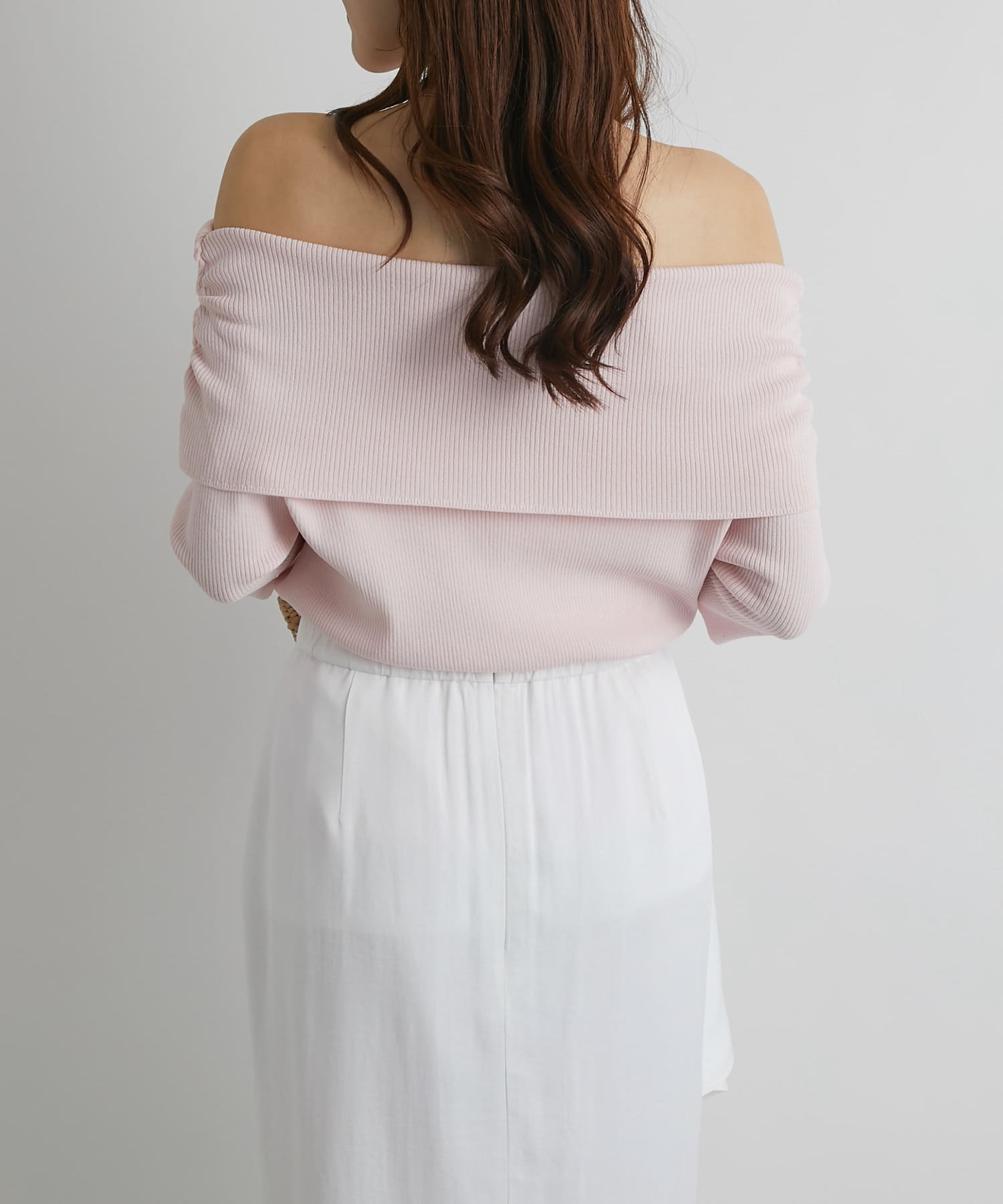 ・クールタッチUVオフショルラッフルリブニット(LBZ1052105A0005)