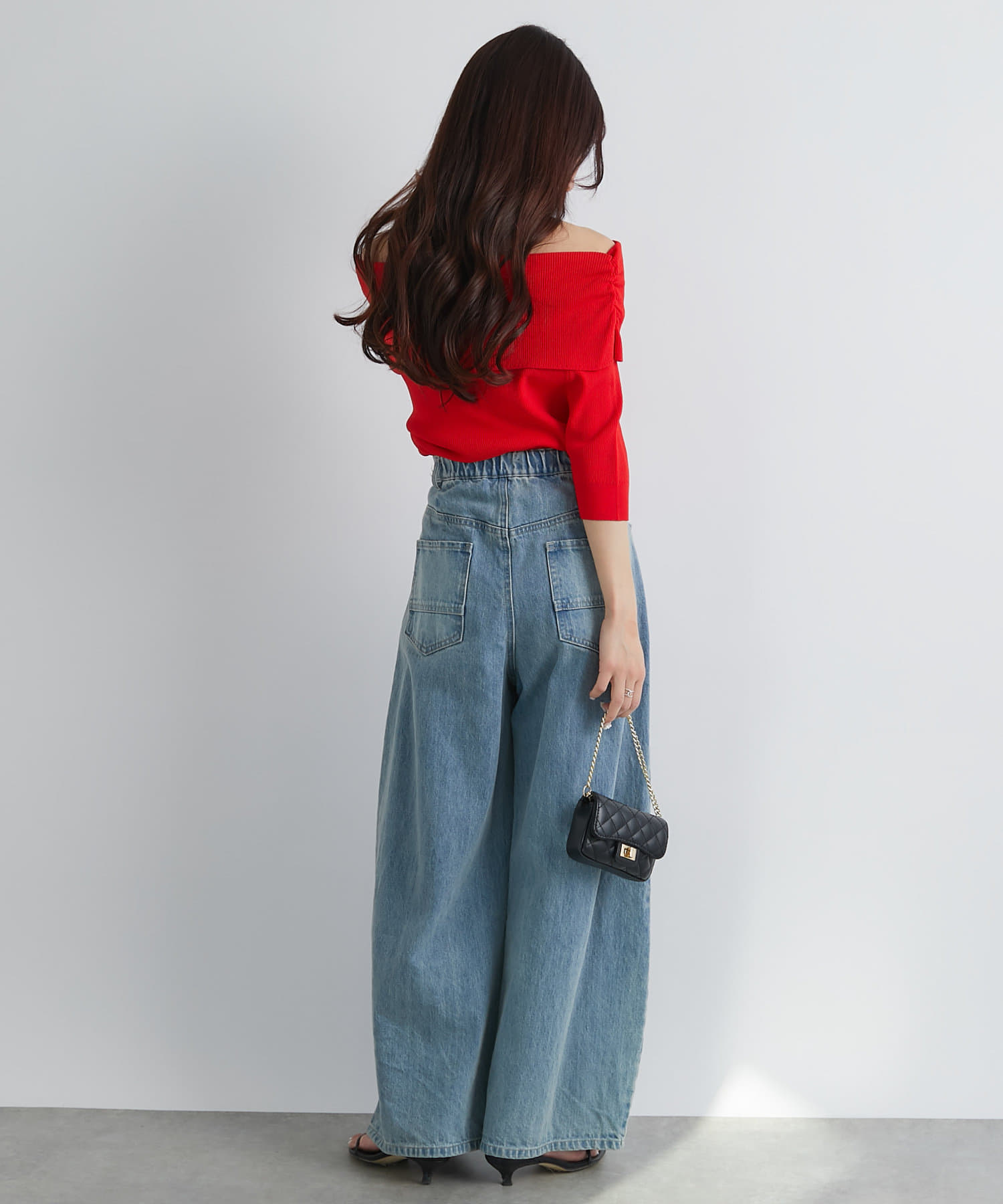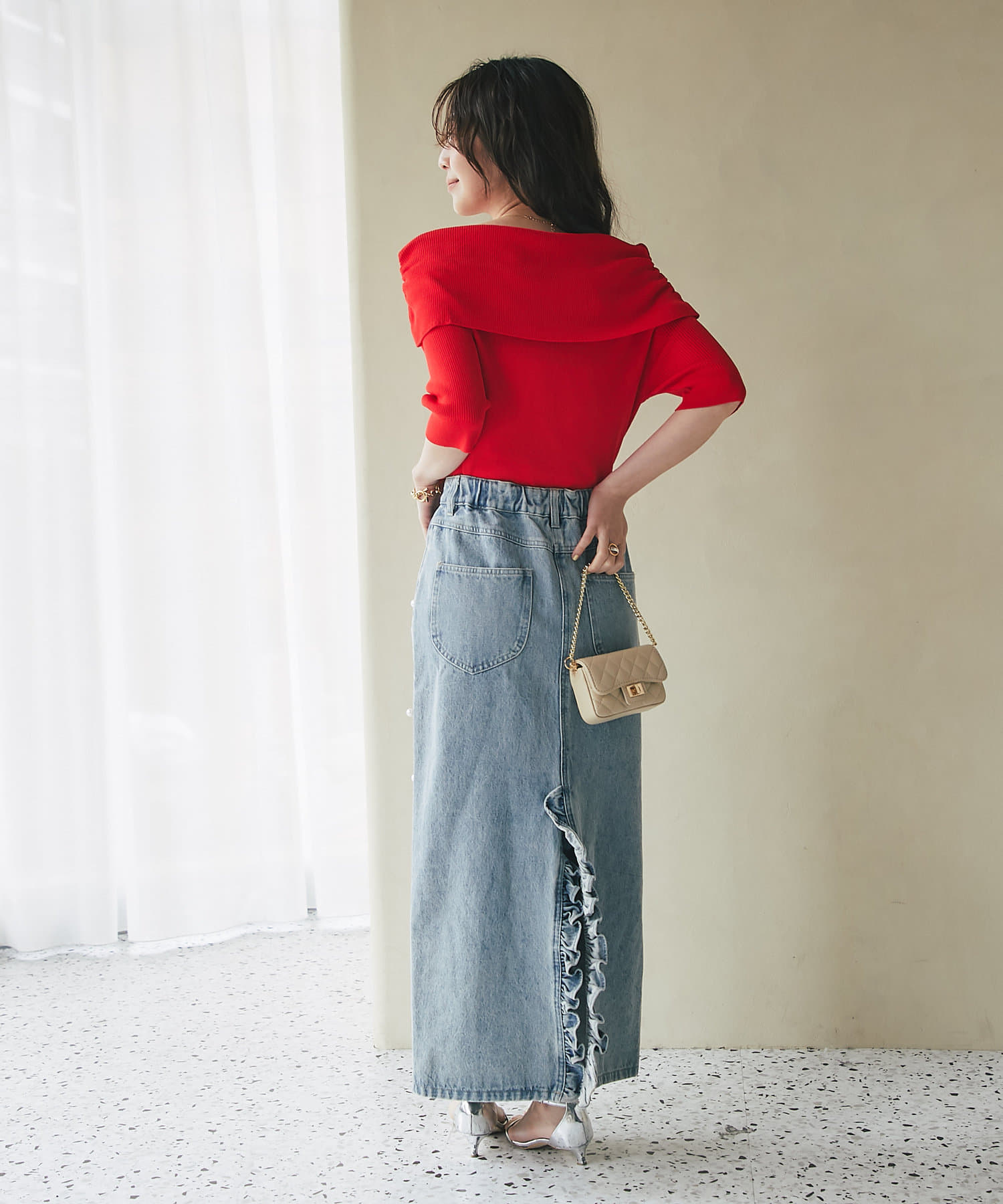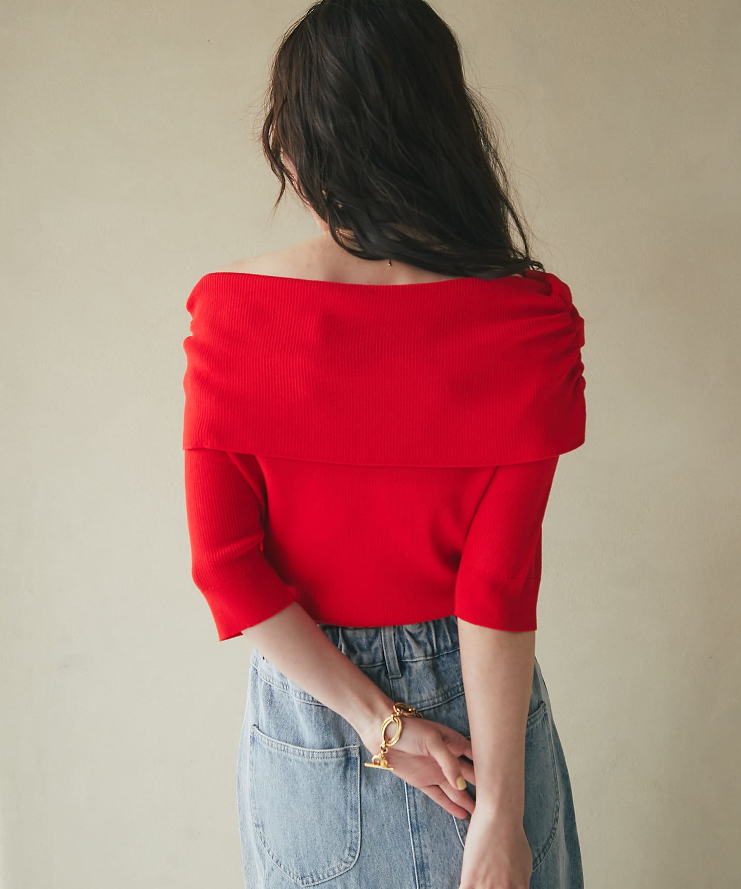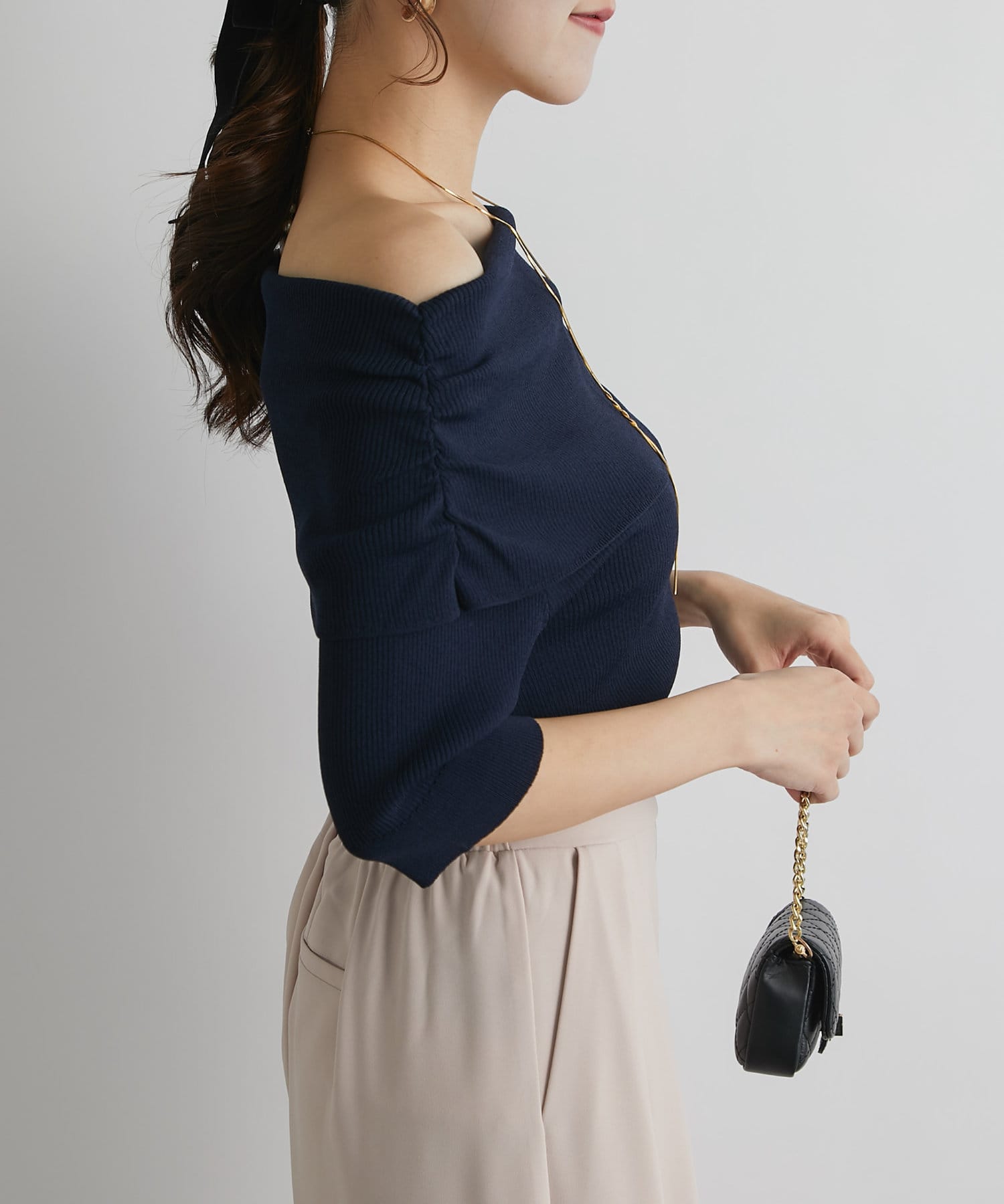 ・クールタッチUVオフショルラッフルリブニット(LBZ1052105A0005)