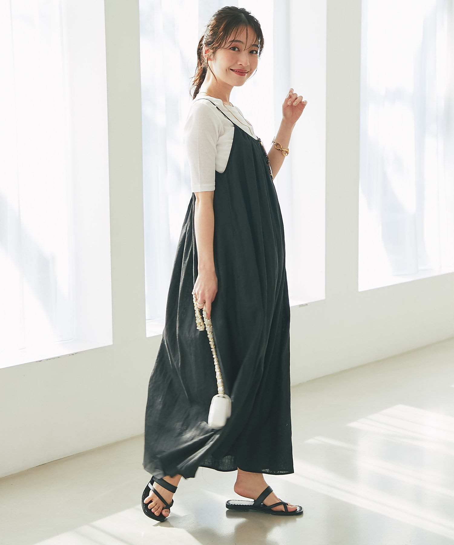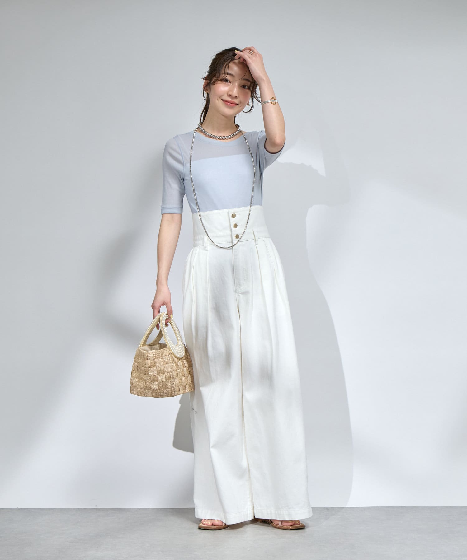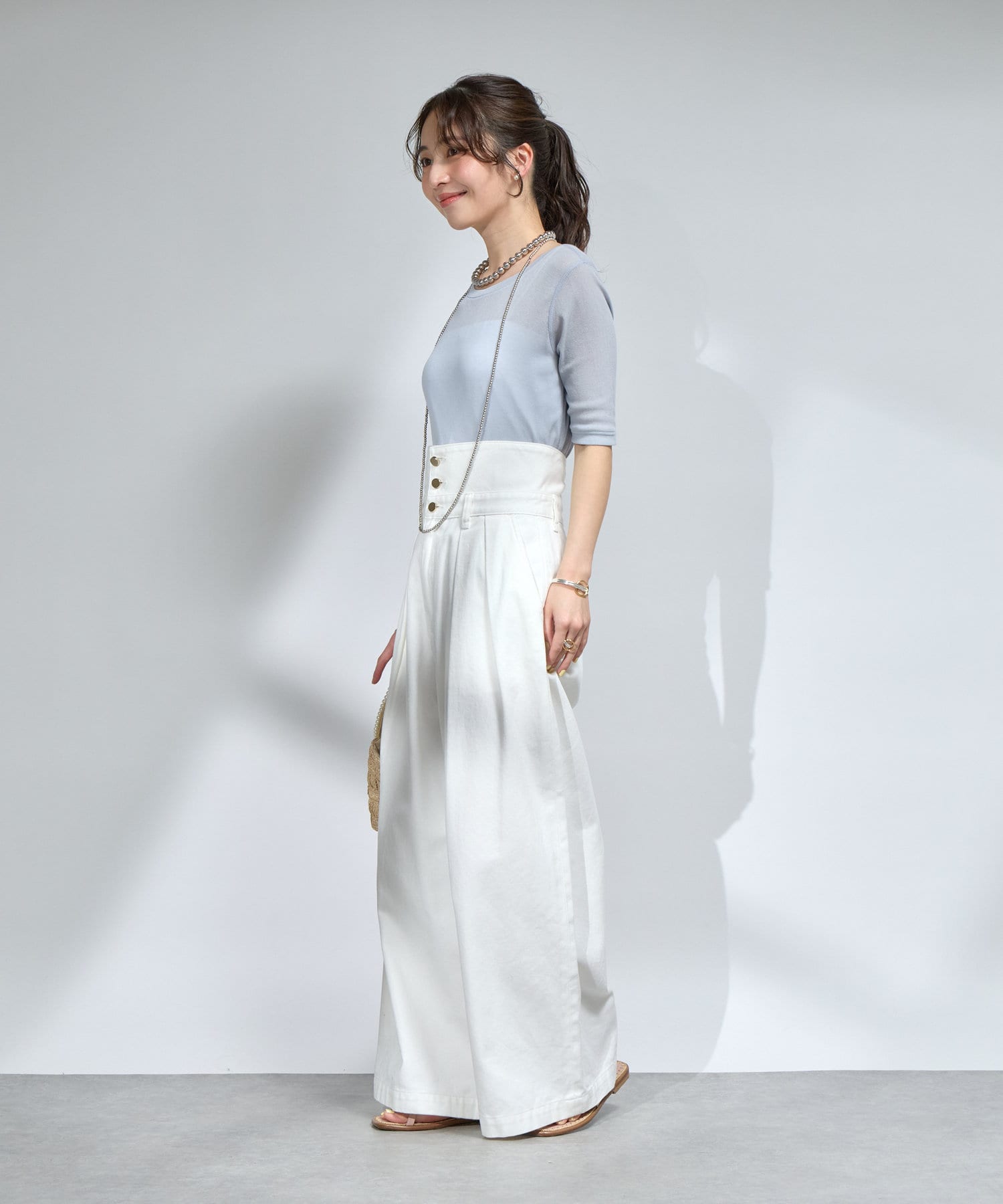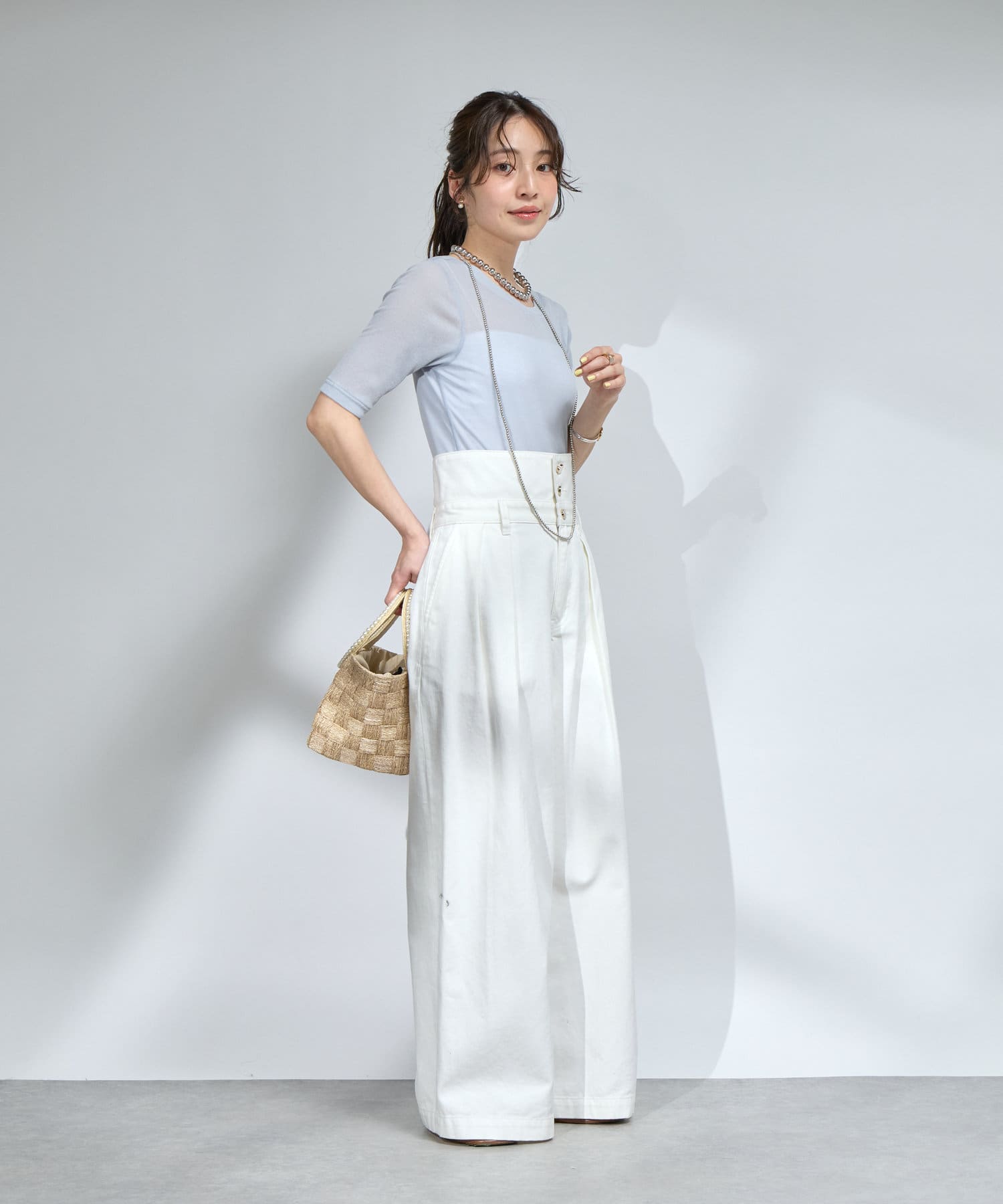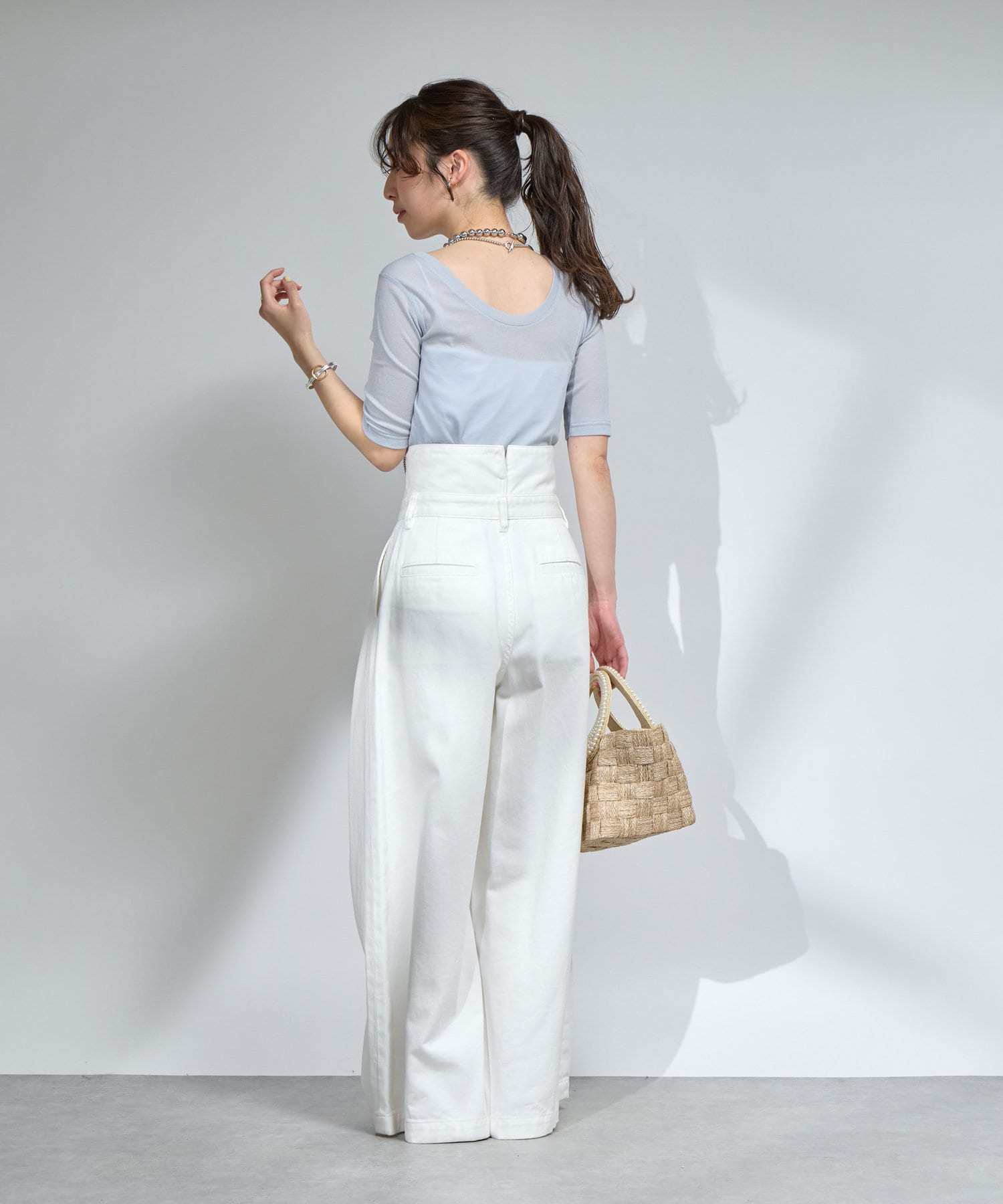 デニムやワイドパンツと合わせたカジュアルスタイルもおすすめ。