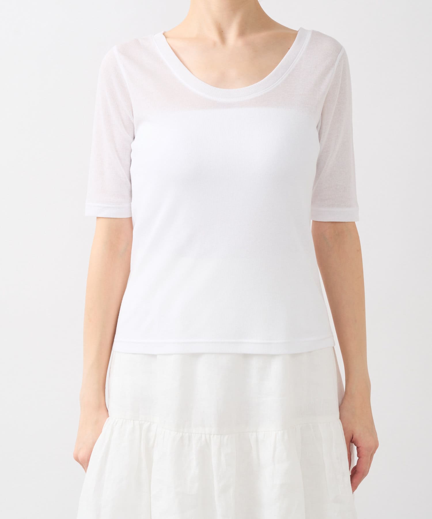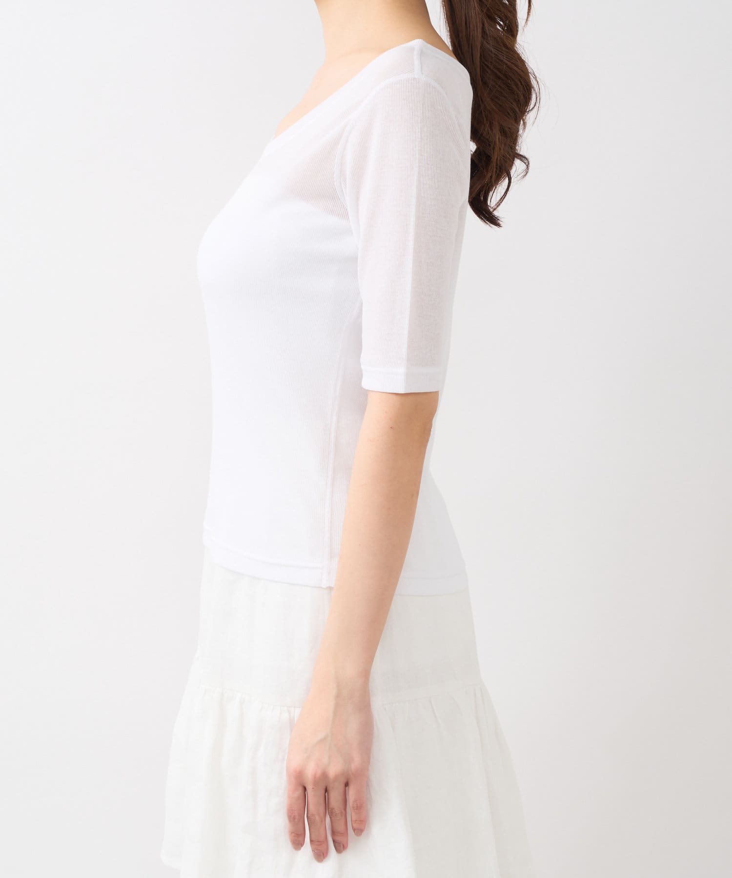 【着回し力抜群】シアーテレコ5分袖前後2WAYカットソー