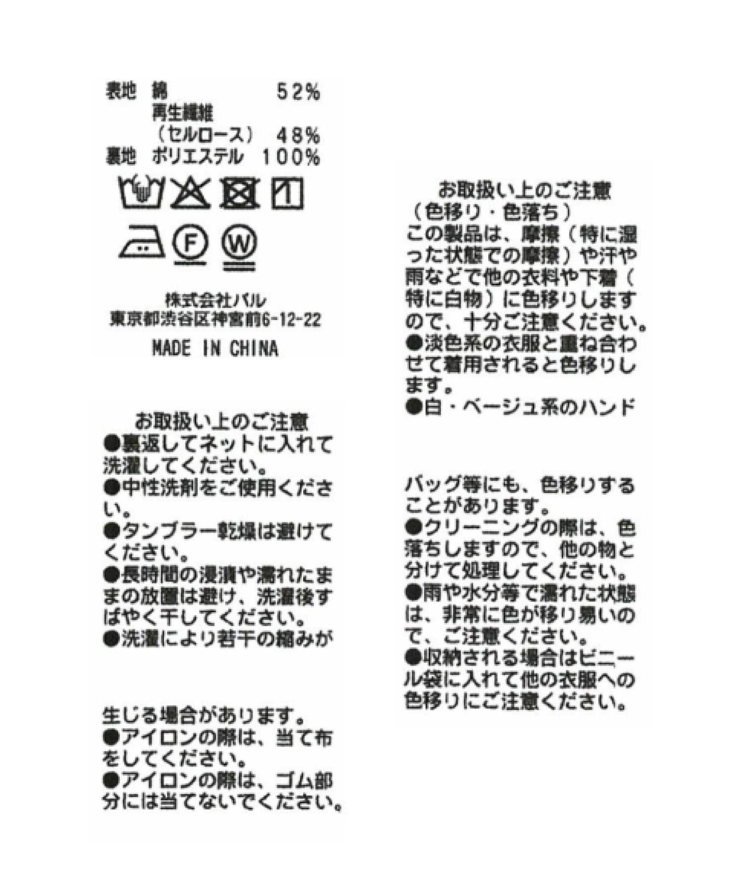 品番 LBZ1051409A0004 素材 表地:綿52% 再生繊維(セルロース)48%