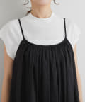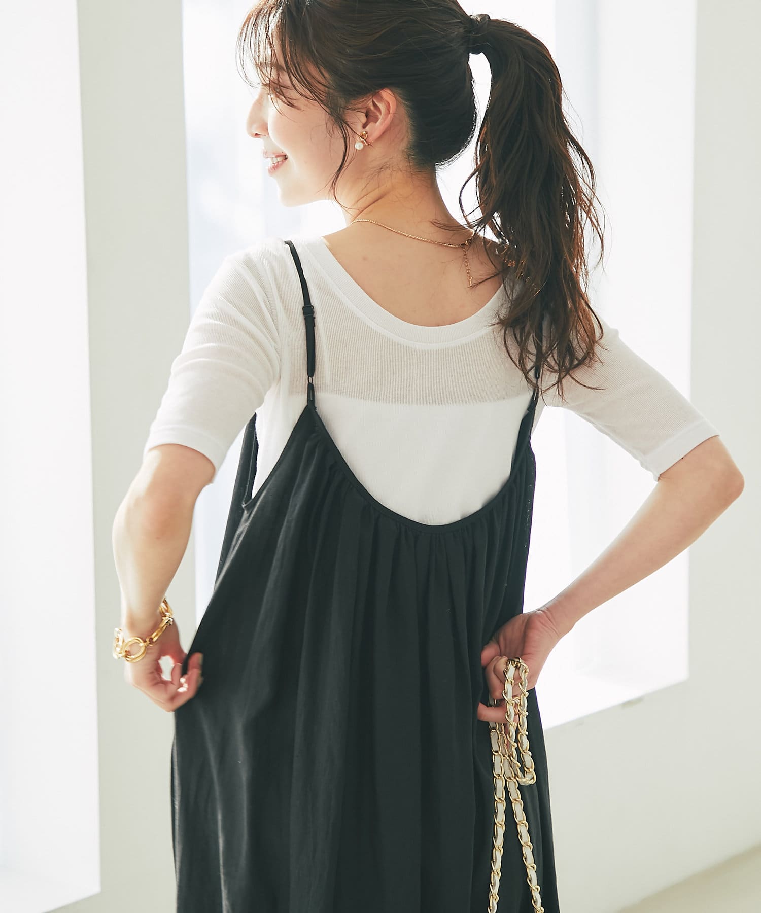 レイヤードスタイルを楽しめるキャミワンピースは今年らしさのある素材をチョイス。