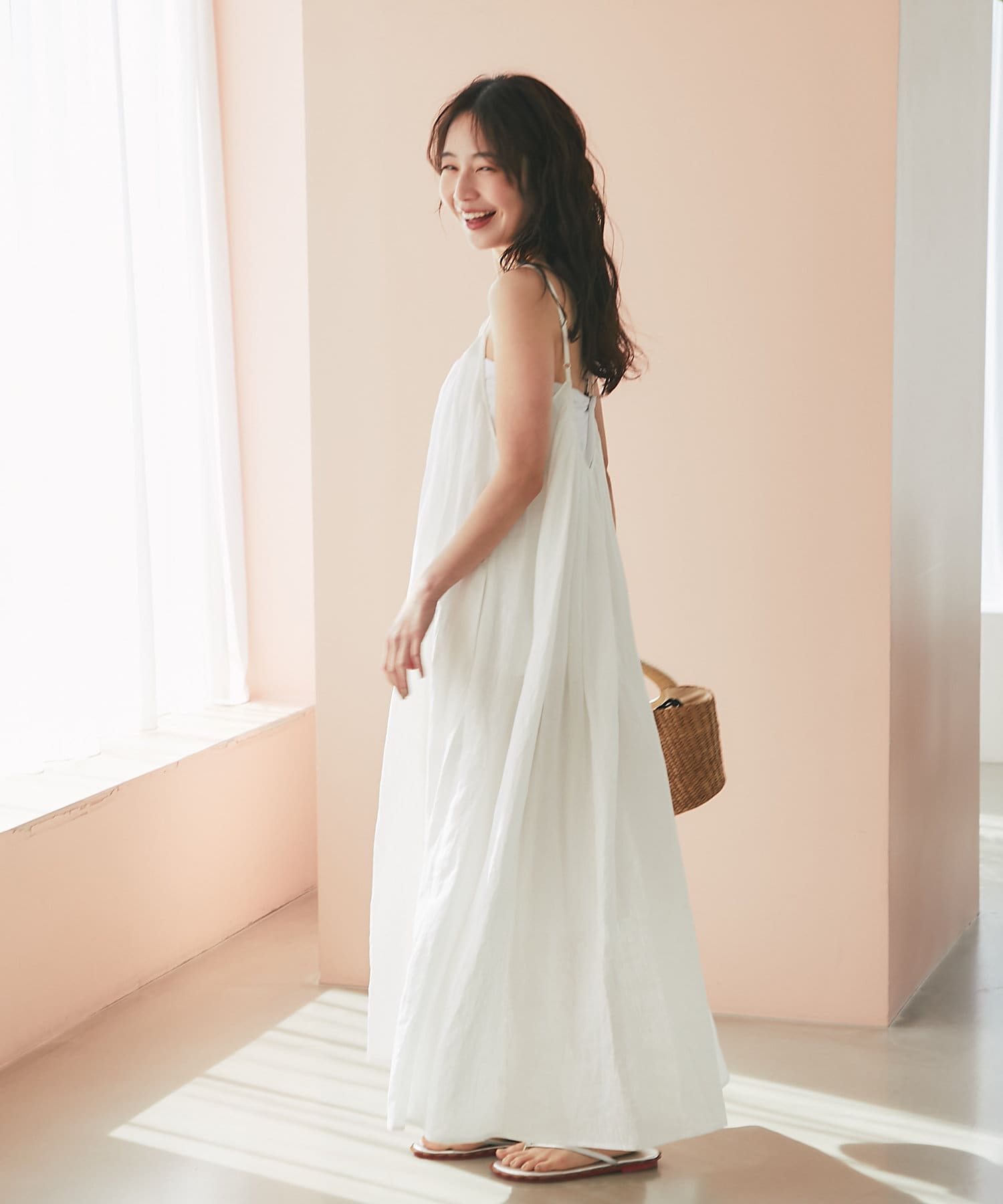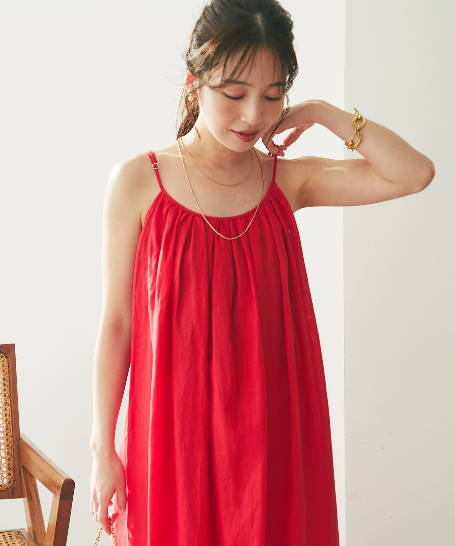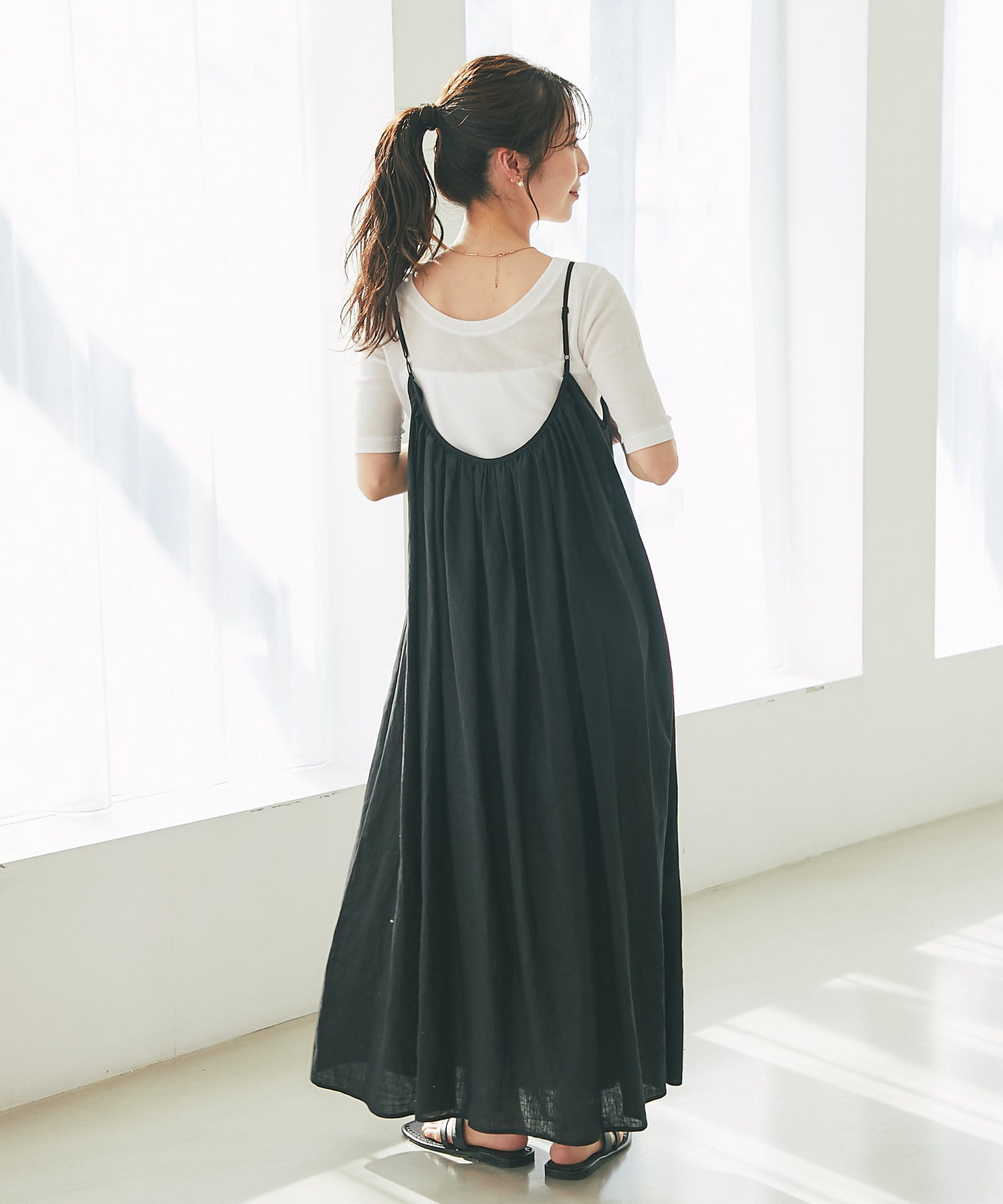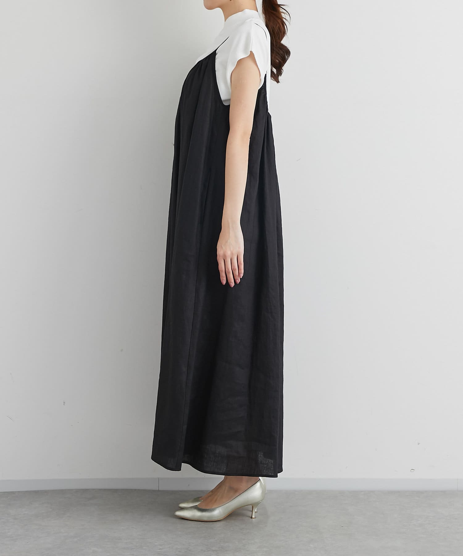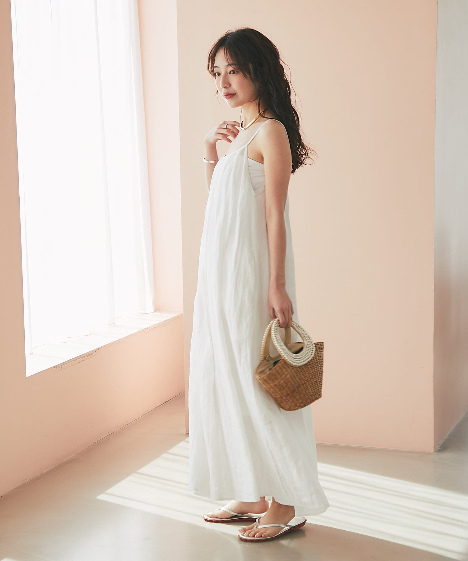 シンプルながらも存在感のあるリネン素材のキャミワンピースです。