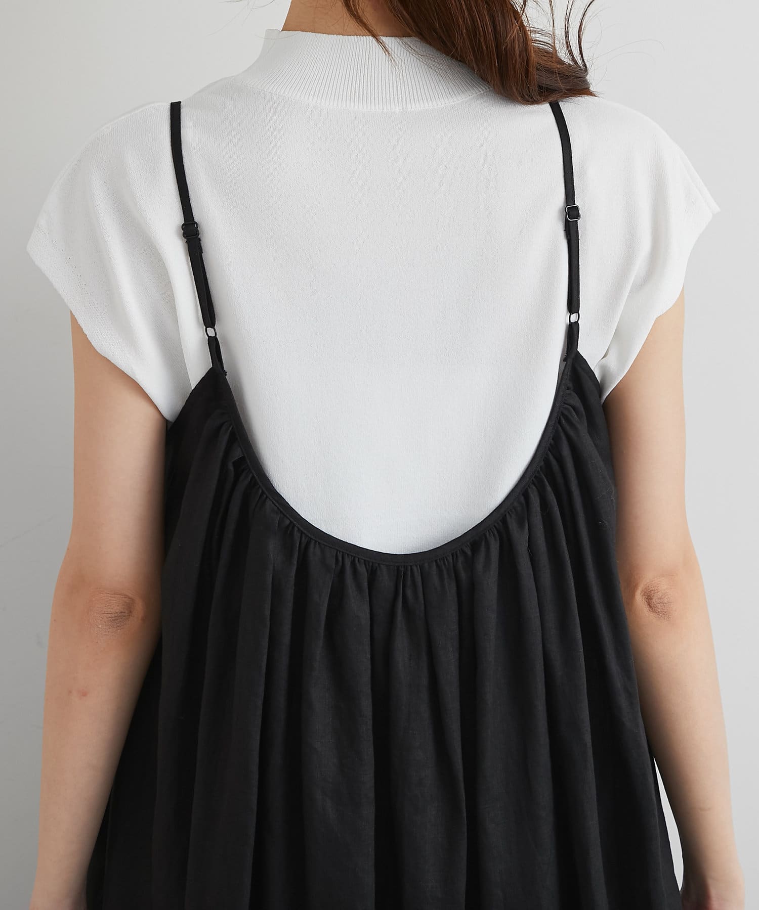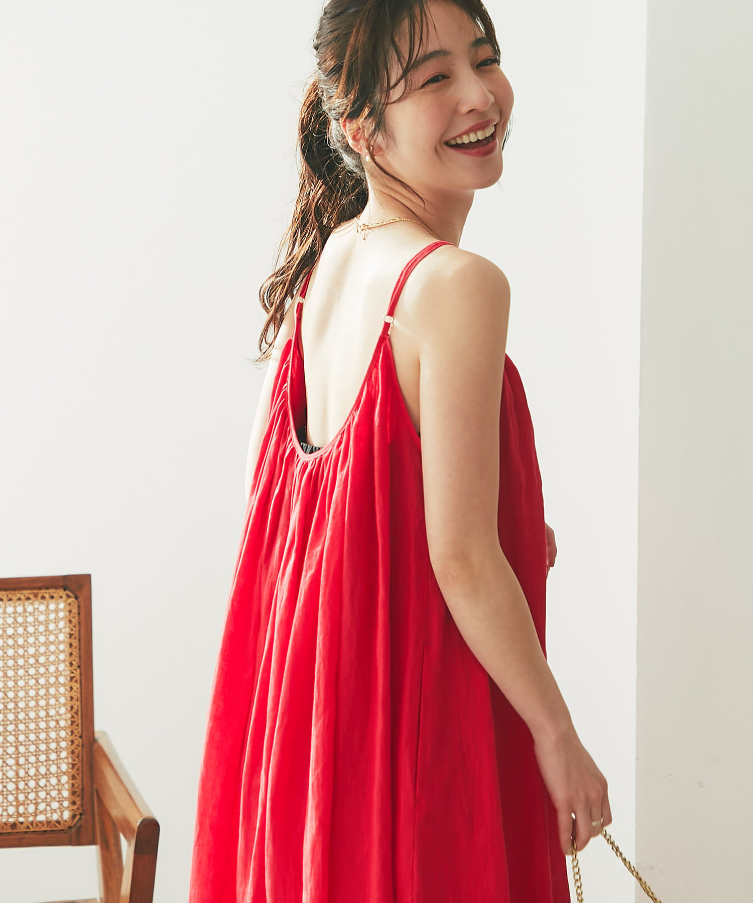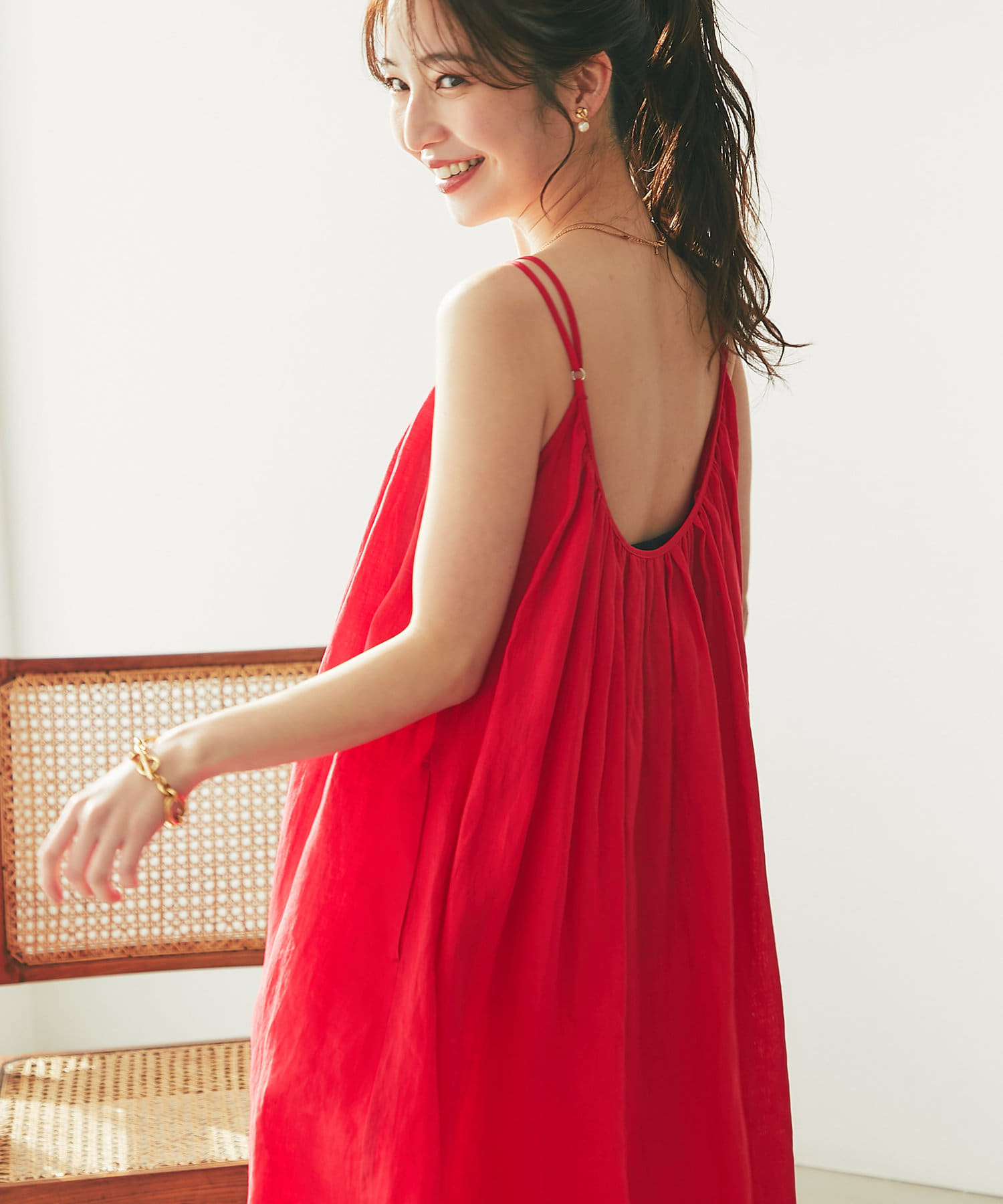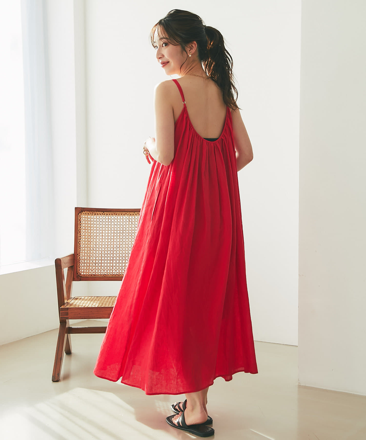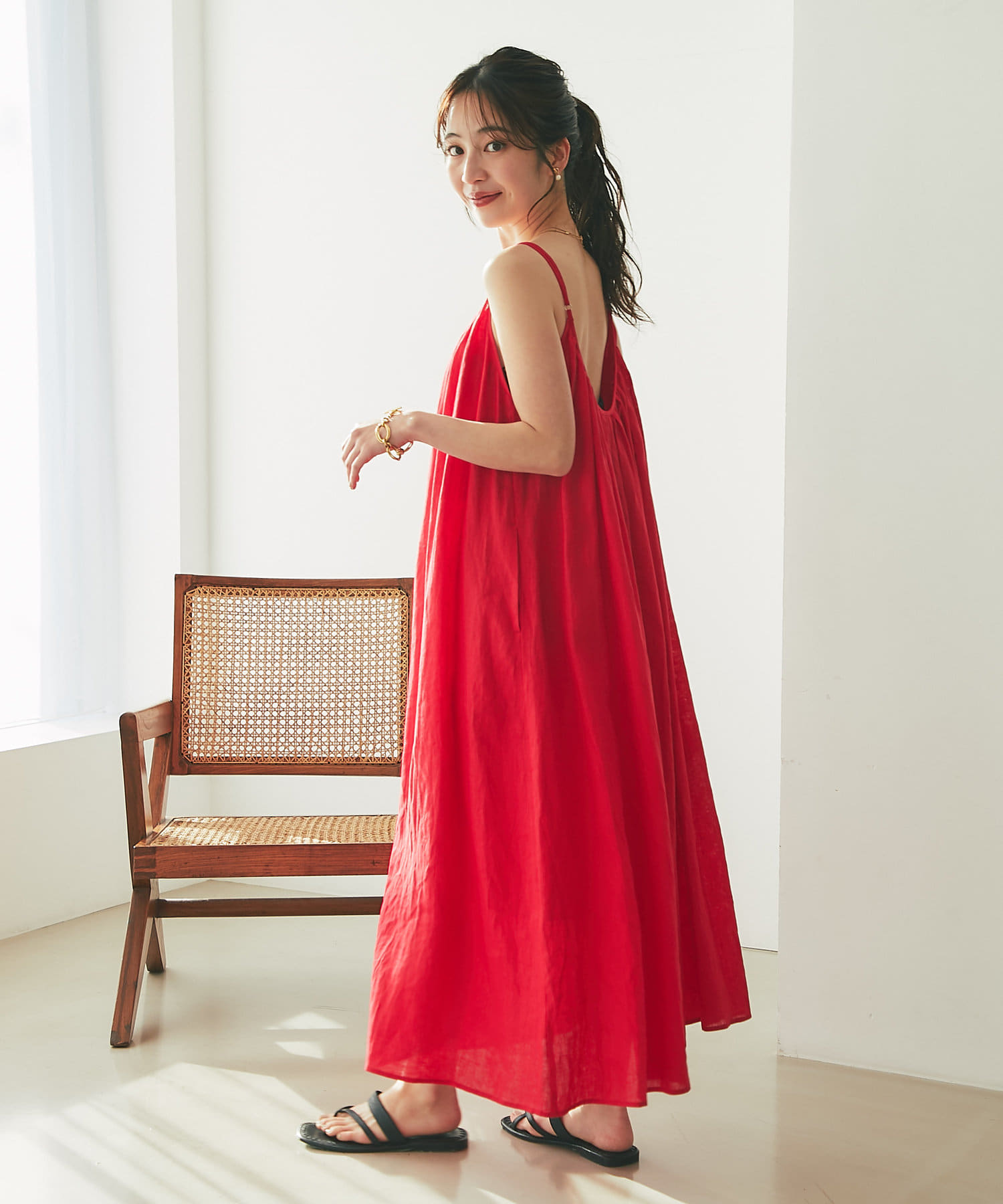 シンプルながらも存在感のあるリネン素材のキャミワンピースです。